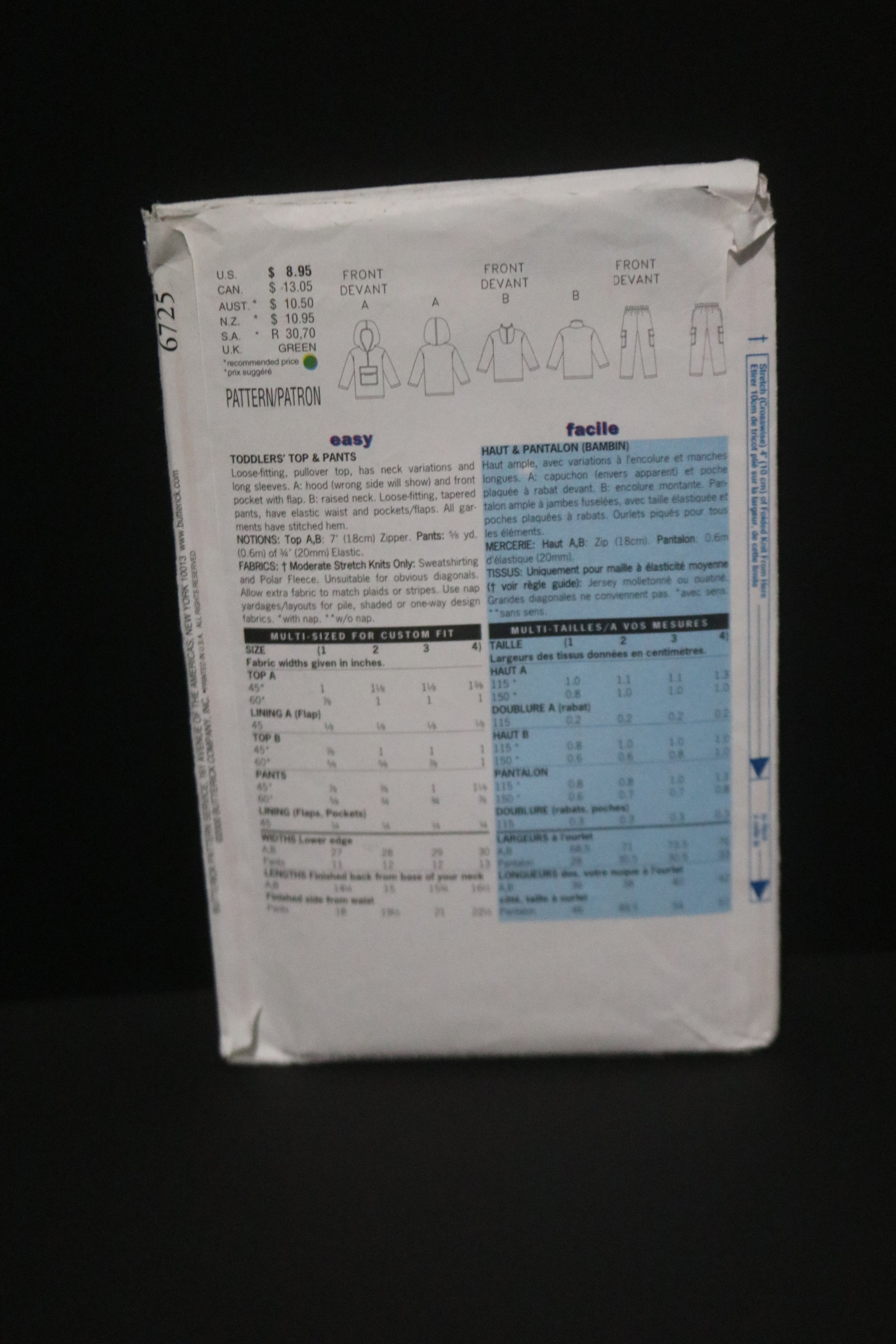 Butterick 6725 Toddlers Top and Pants Sewing Pattern - UNCUT - Size 1 2 3 4
