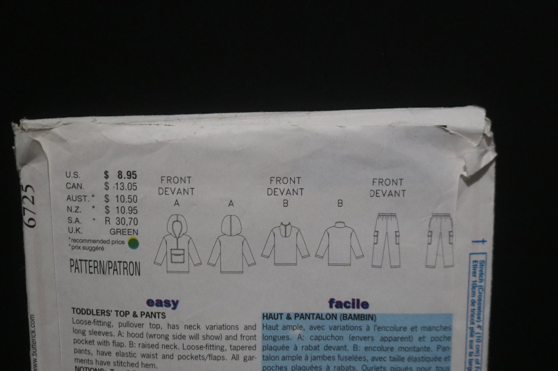 Butterick 6725 Toddlers Top and Pants Sewing Pattern