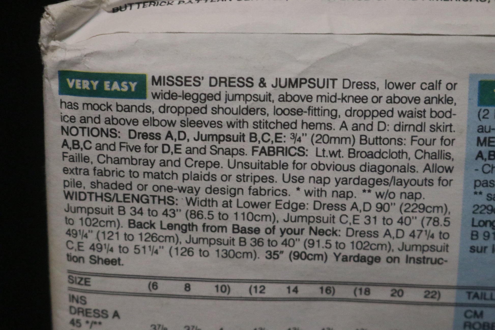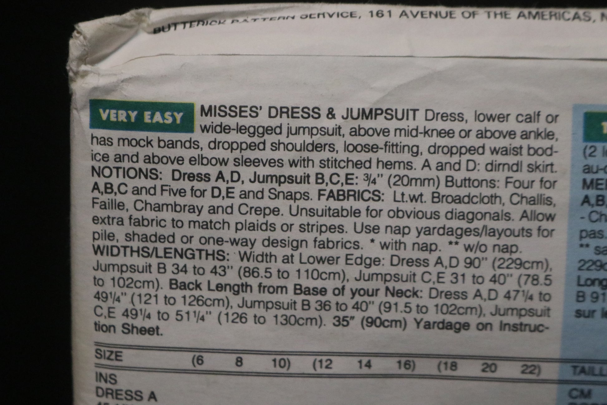 Butterick 6781 Misses Dress and Jumpsuit Sewing Pattern