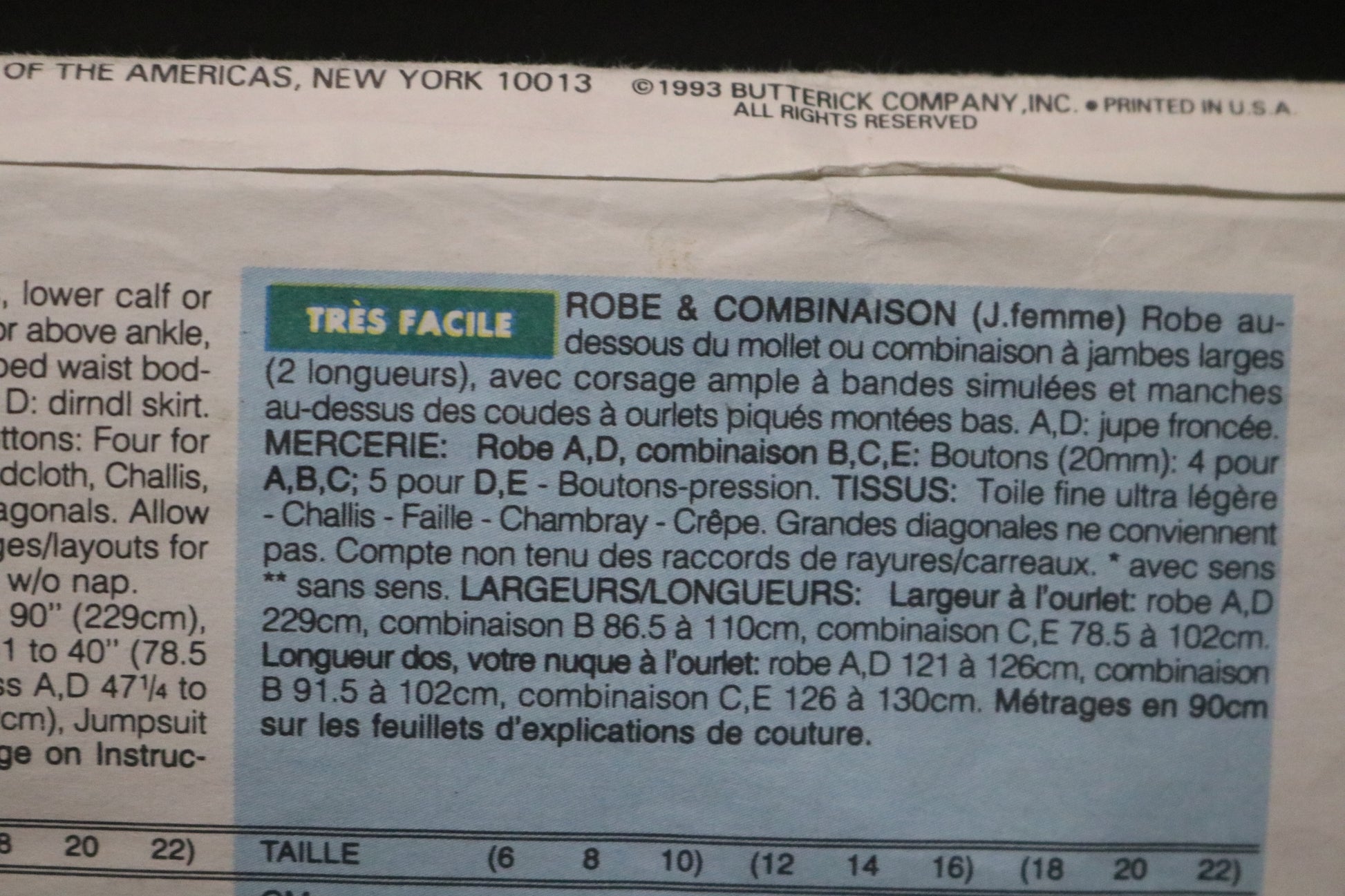 Butterick 6781 Misses Dress and Jumpsuit Sewing Pattern UNCUT Size 18 20 22
