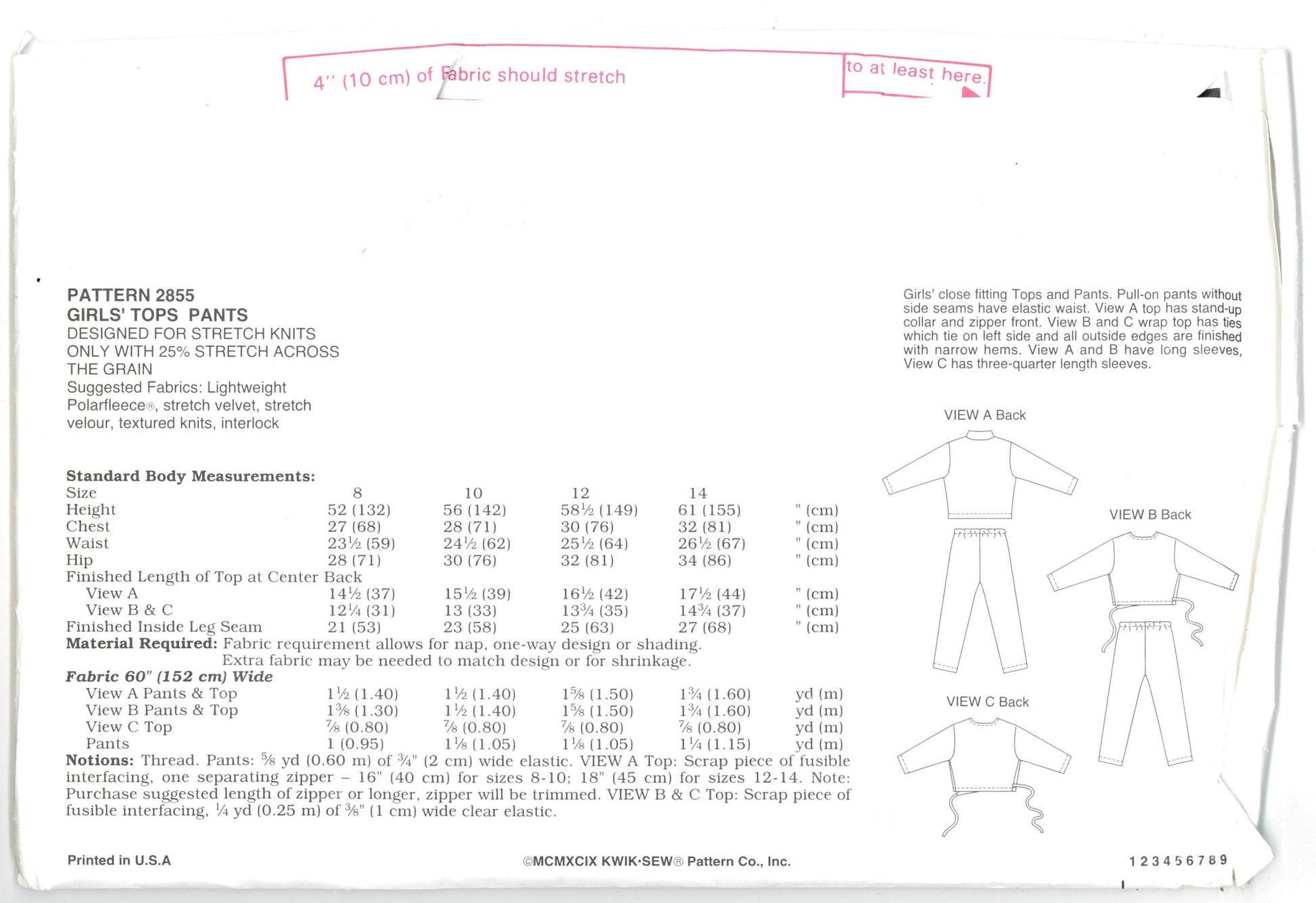Kwik Sew 2855 Girls Top and Pants Sewing Pattern - UNCUT - Size 8 10 12 14