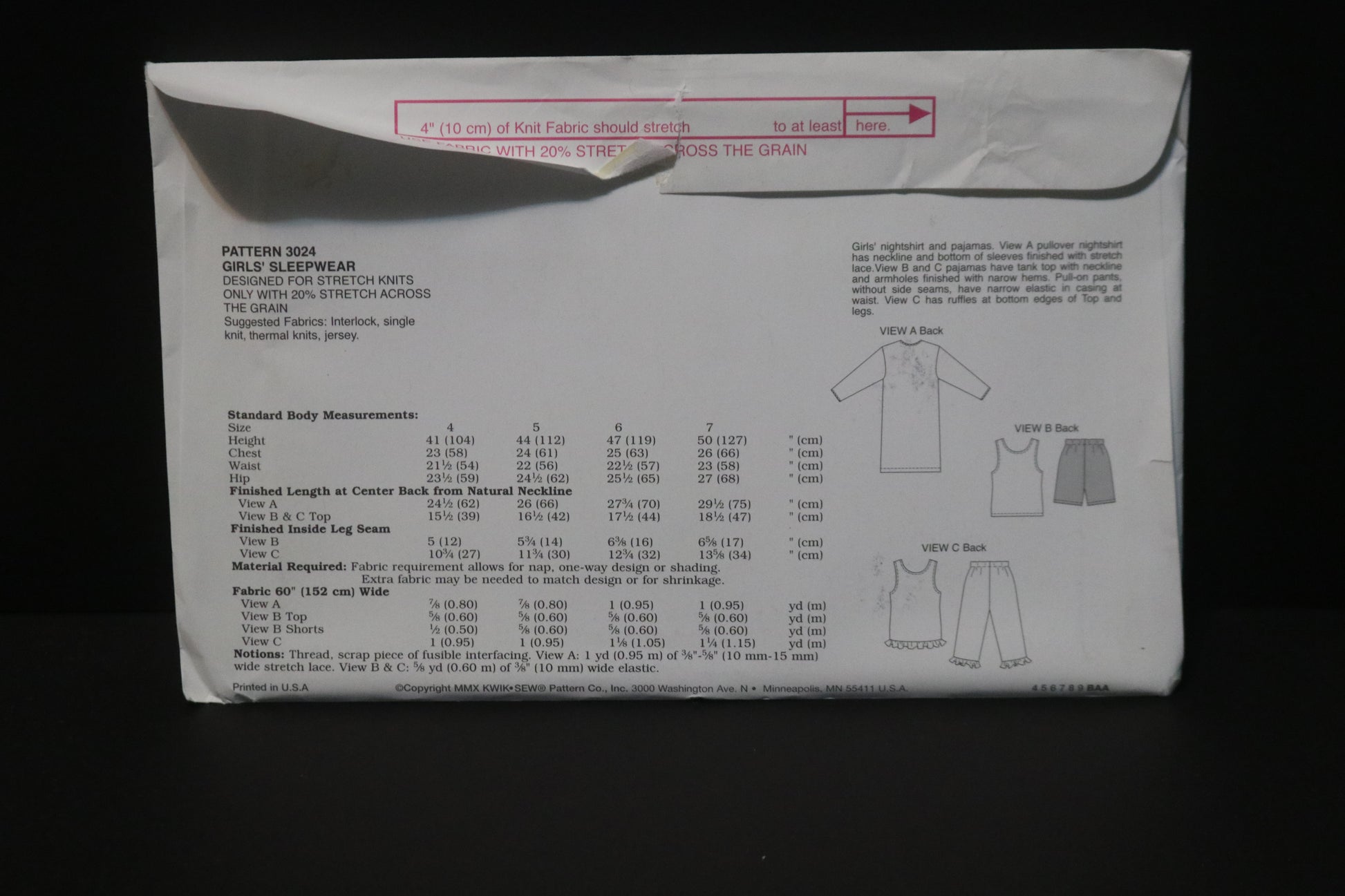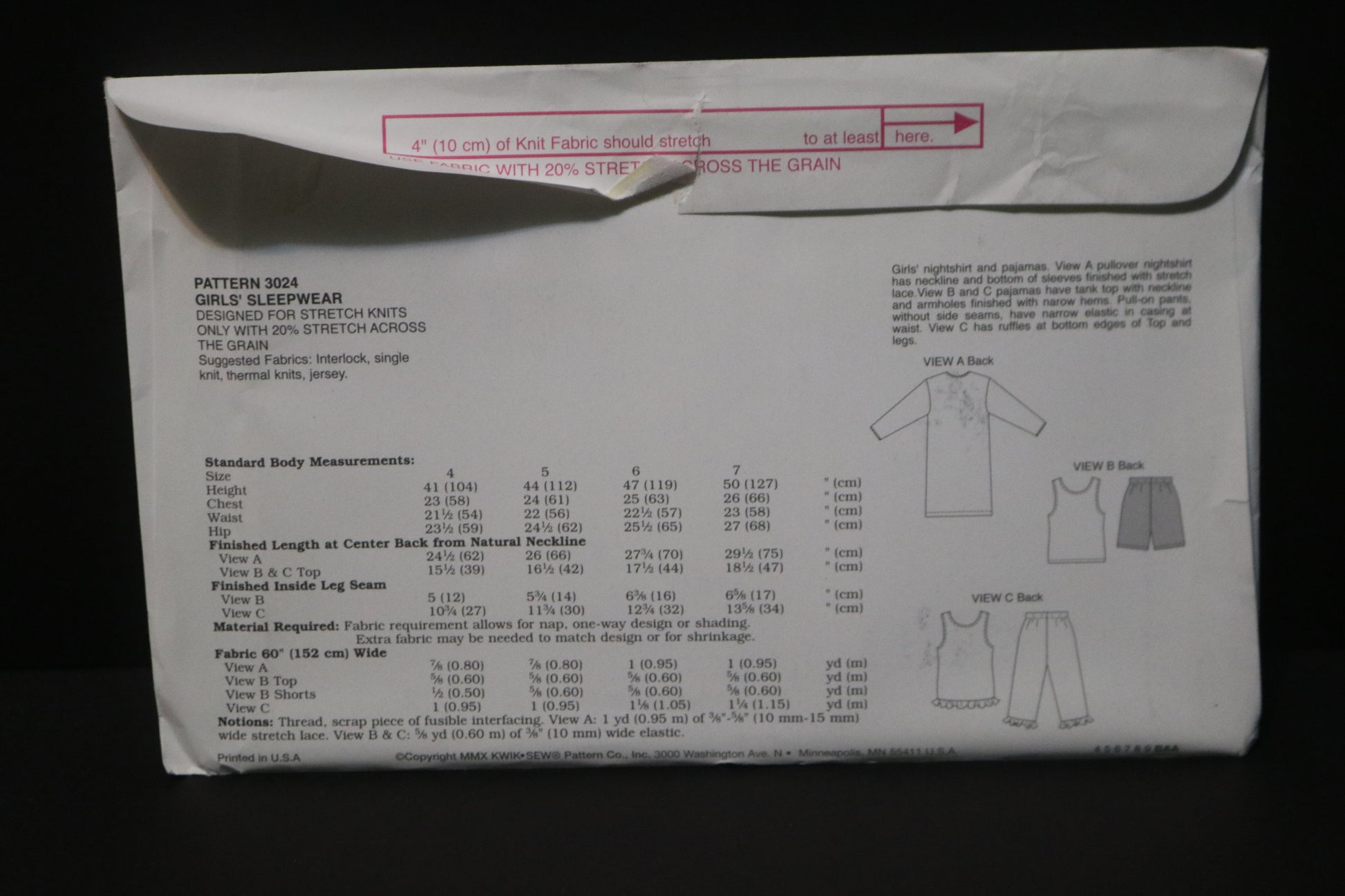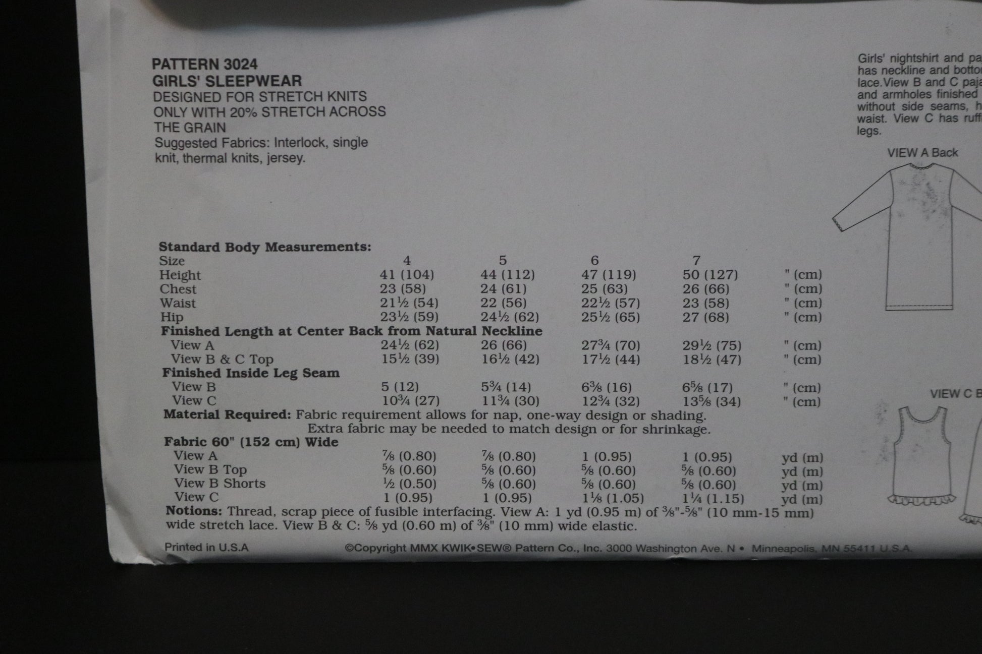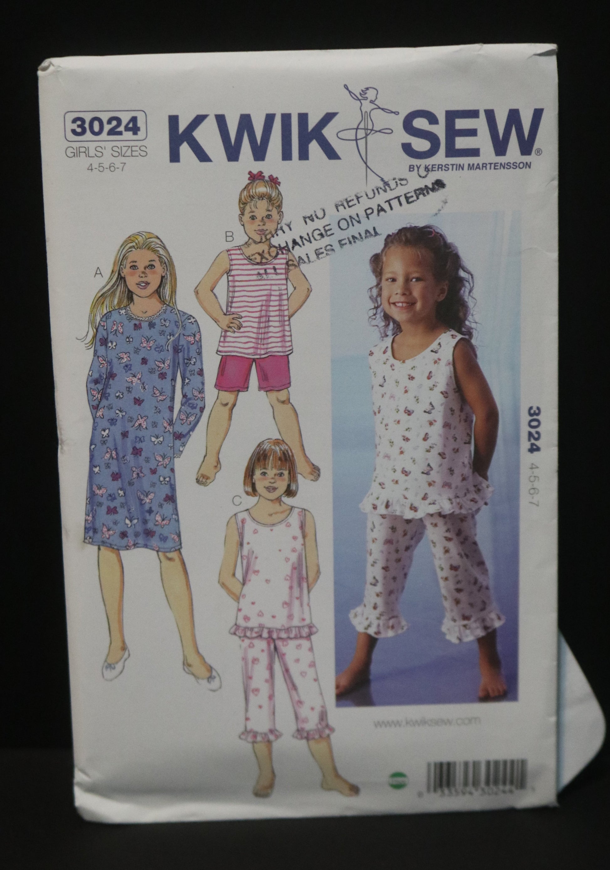 Kwik Sew 3024 Girls Sleepwear Sewing Pattern