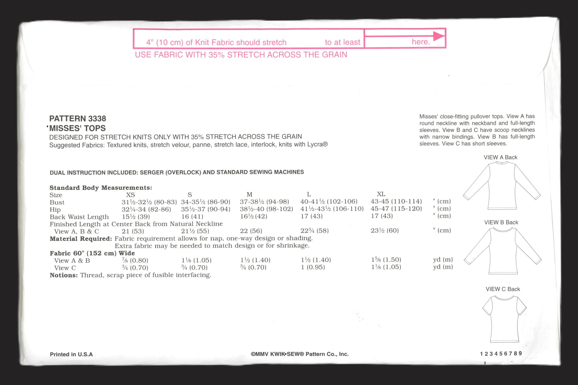 Kwik Sew 3338 Misses Tops Sewing Pattern