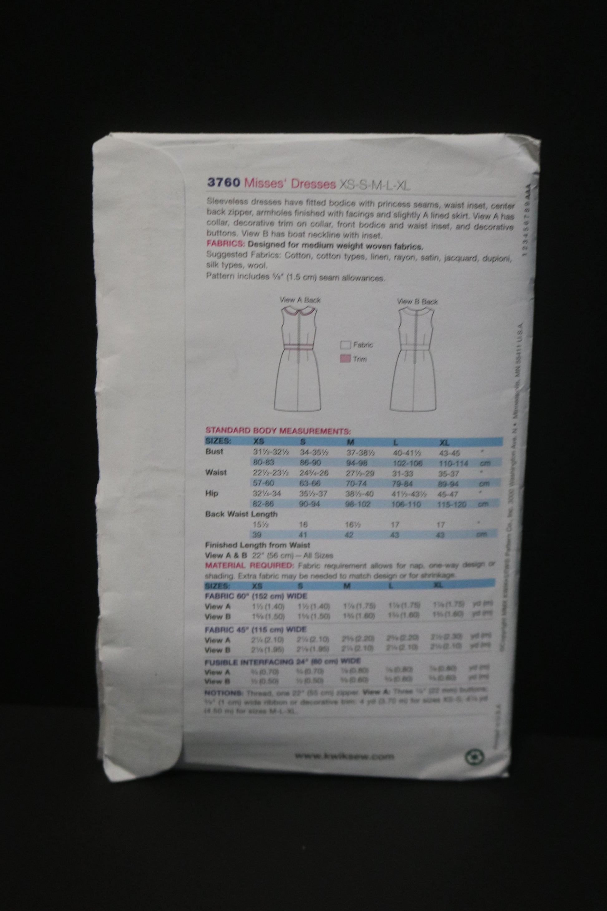 Kwik Sew 3760 Misses Dresses Sewing Pattern