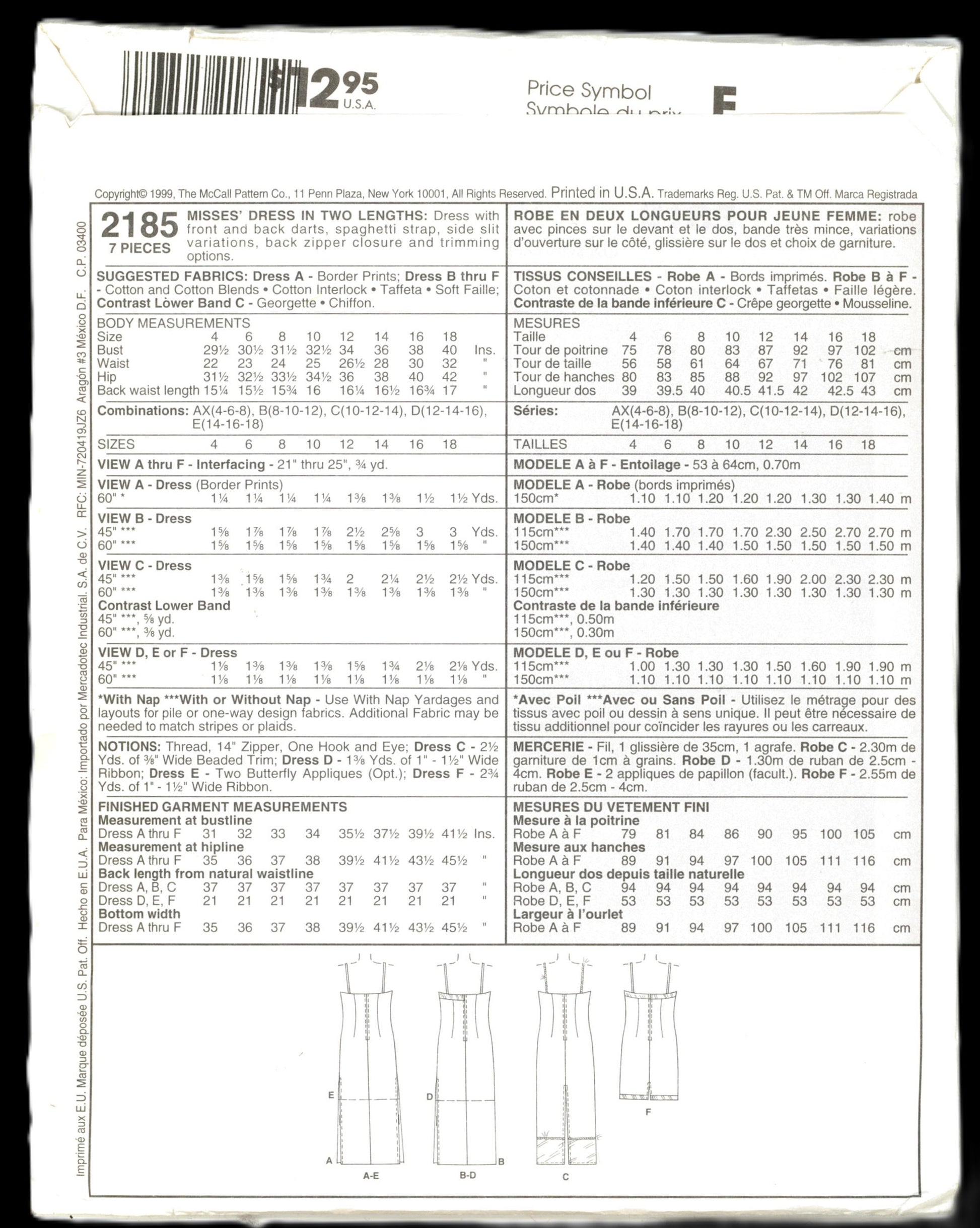McCalls 2185 Misses Dress in Two Lengths Sewing Pattern