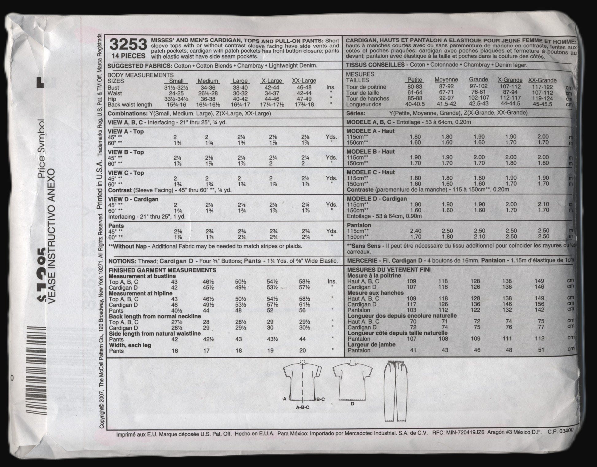 McCall's 3253 Misses and Men's Cardigan Tops and Pull on Pants Sewing Pattern