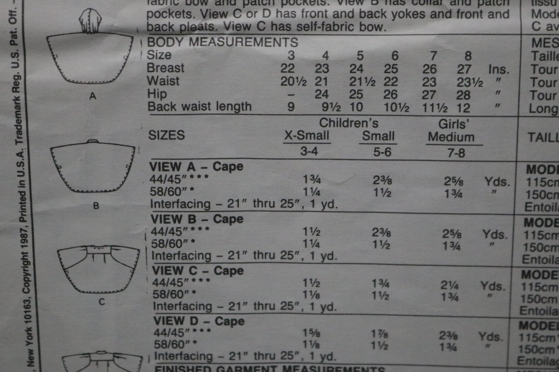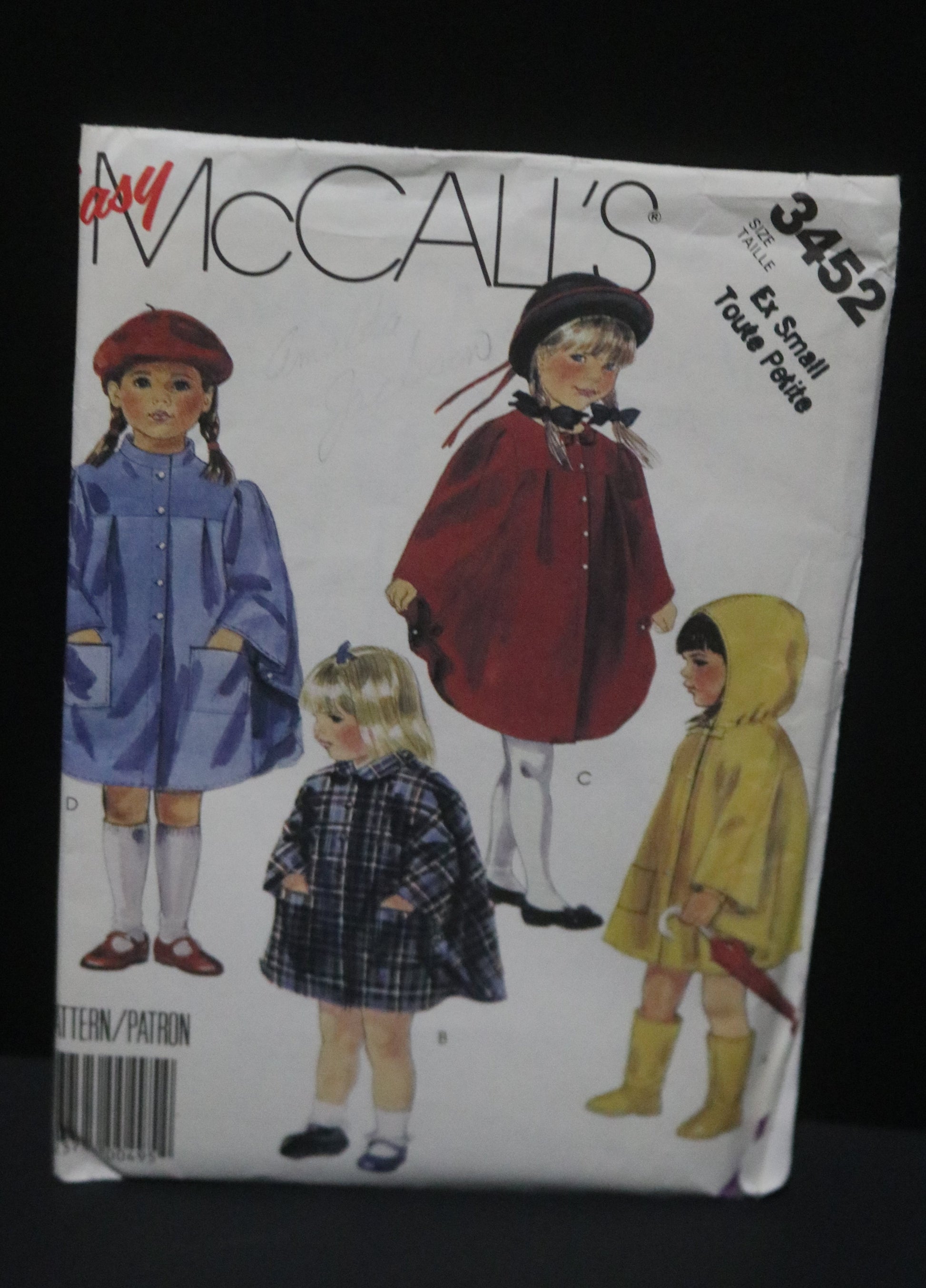 McCalls 3452 Children's or Girls Unlined Capes Sewing Pattern UNCUT Size Ex Small