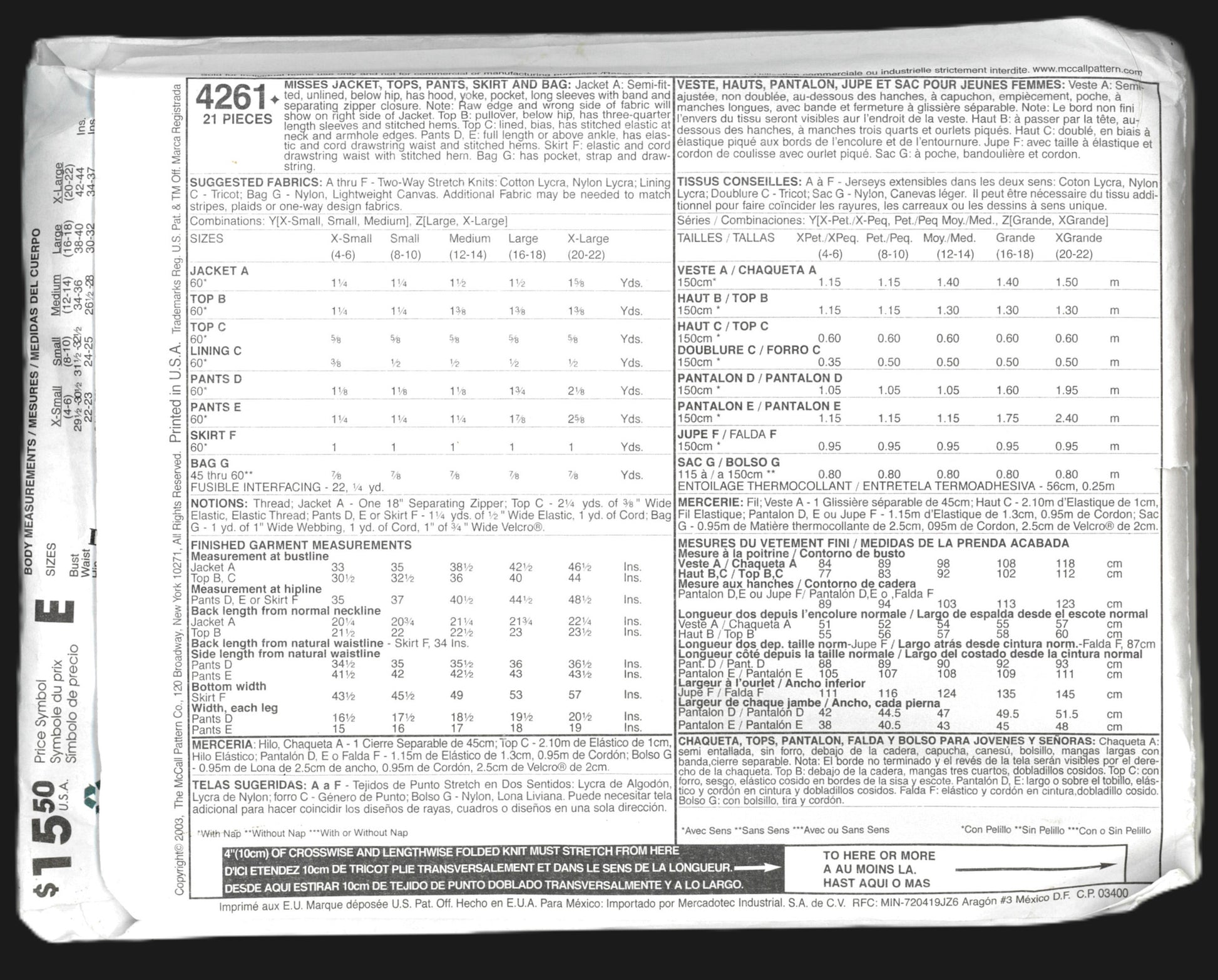 McCalls 4261 Misses Jacket Tops Pants Skirt and Bag Sewing Pattern
