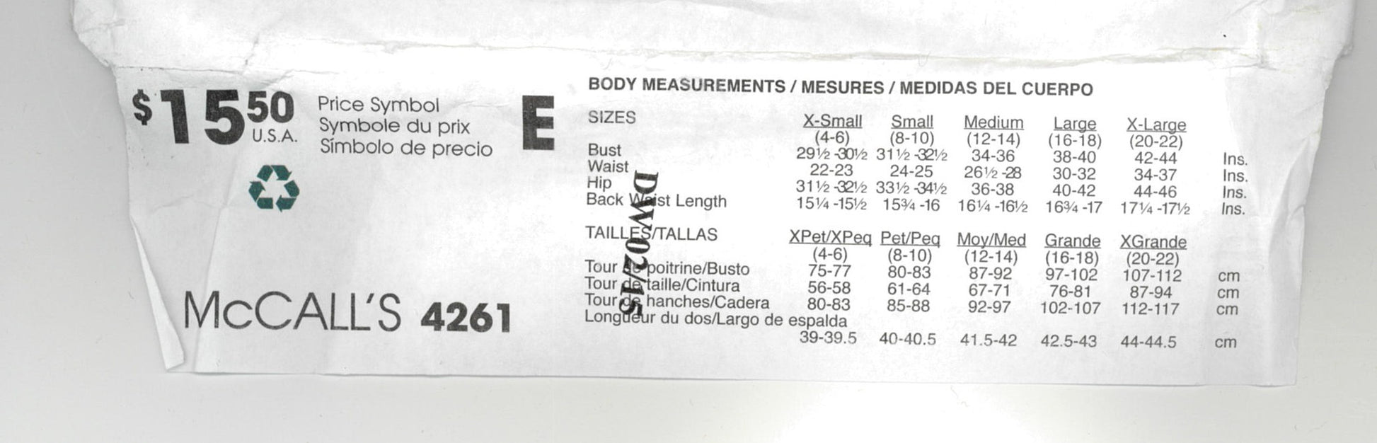 McCalls 4261 Misses Jacket Tops Pants Skirt and Bag Sewing Pattern - UNCUT - Size Lrg, Xlg