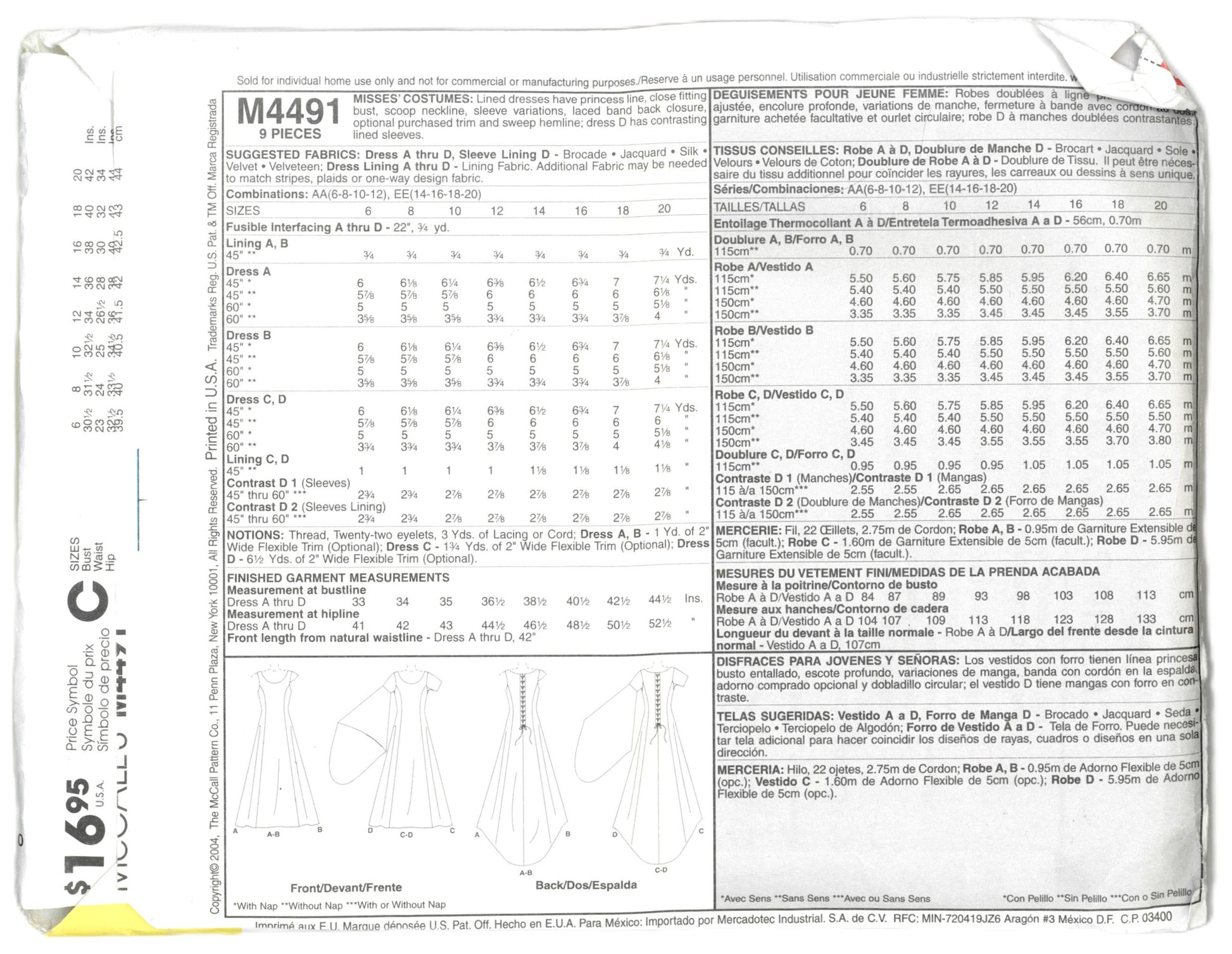 McCalls 4491 Misses Renaissance Dress Costume Sewing Pattern