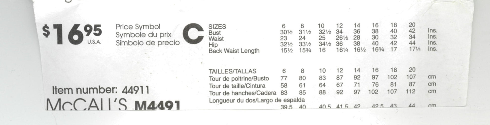 McCalls 4491 Misses Renaissance Dress Costume Sewing Pattern - UNCUT - Size 6 8 10 12