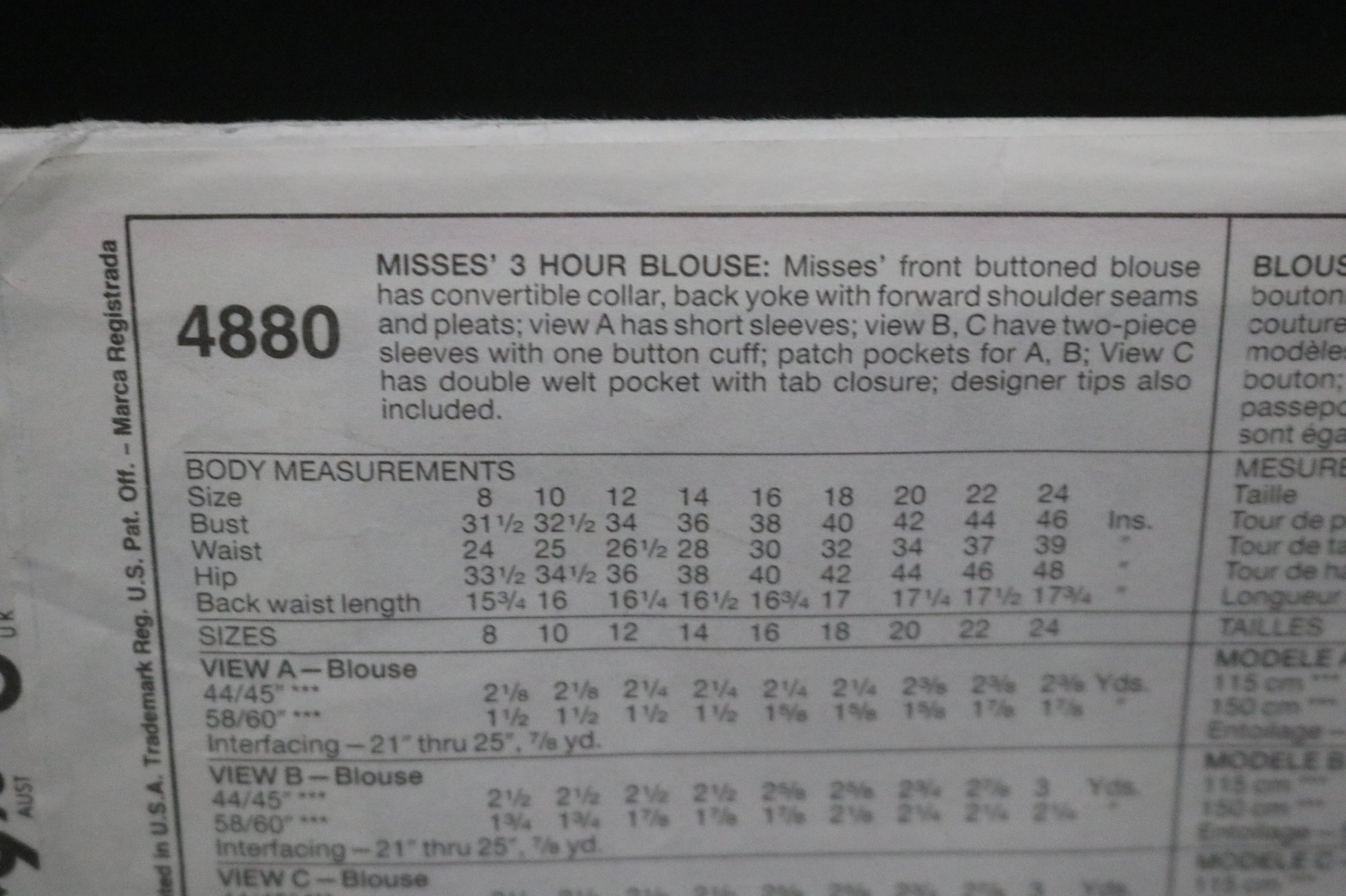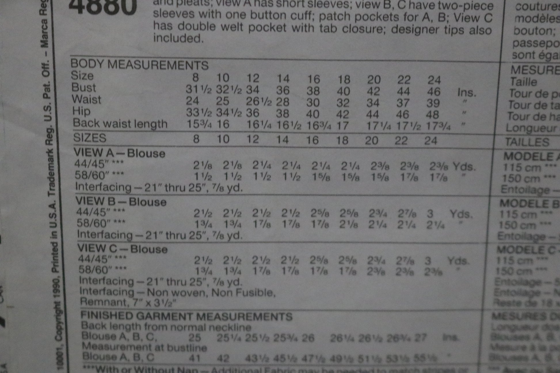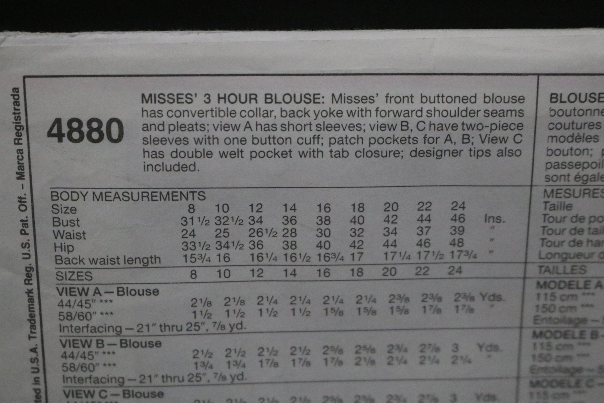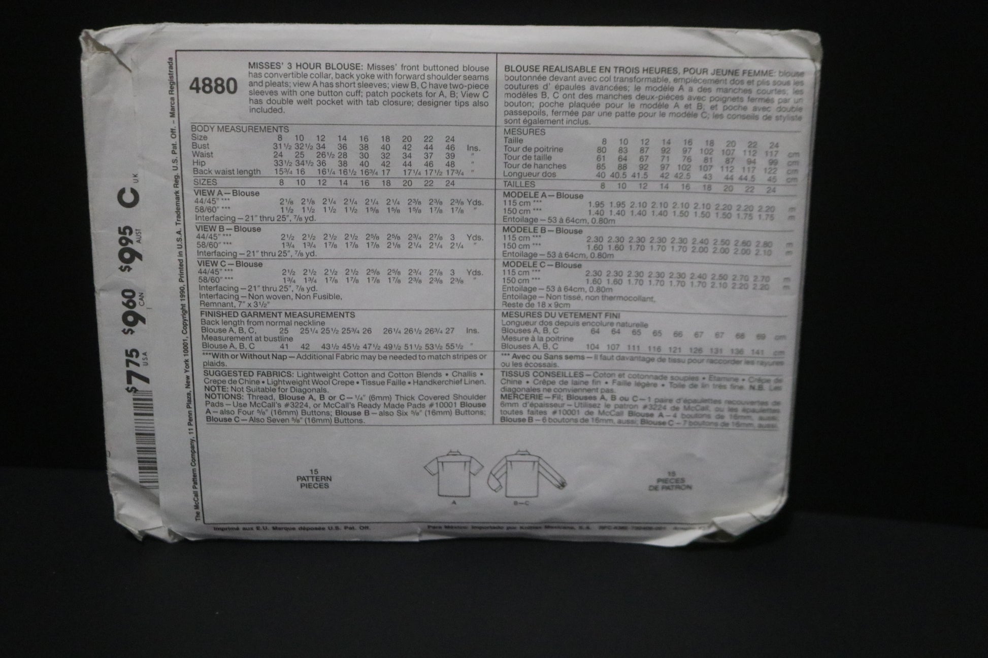 McCalls 4880 Palmer Pletsch Misses Blouses Sewing Pattern
