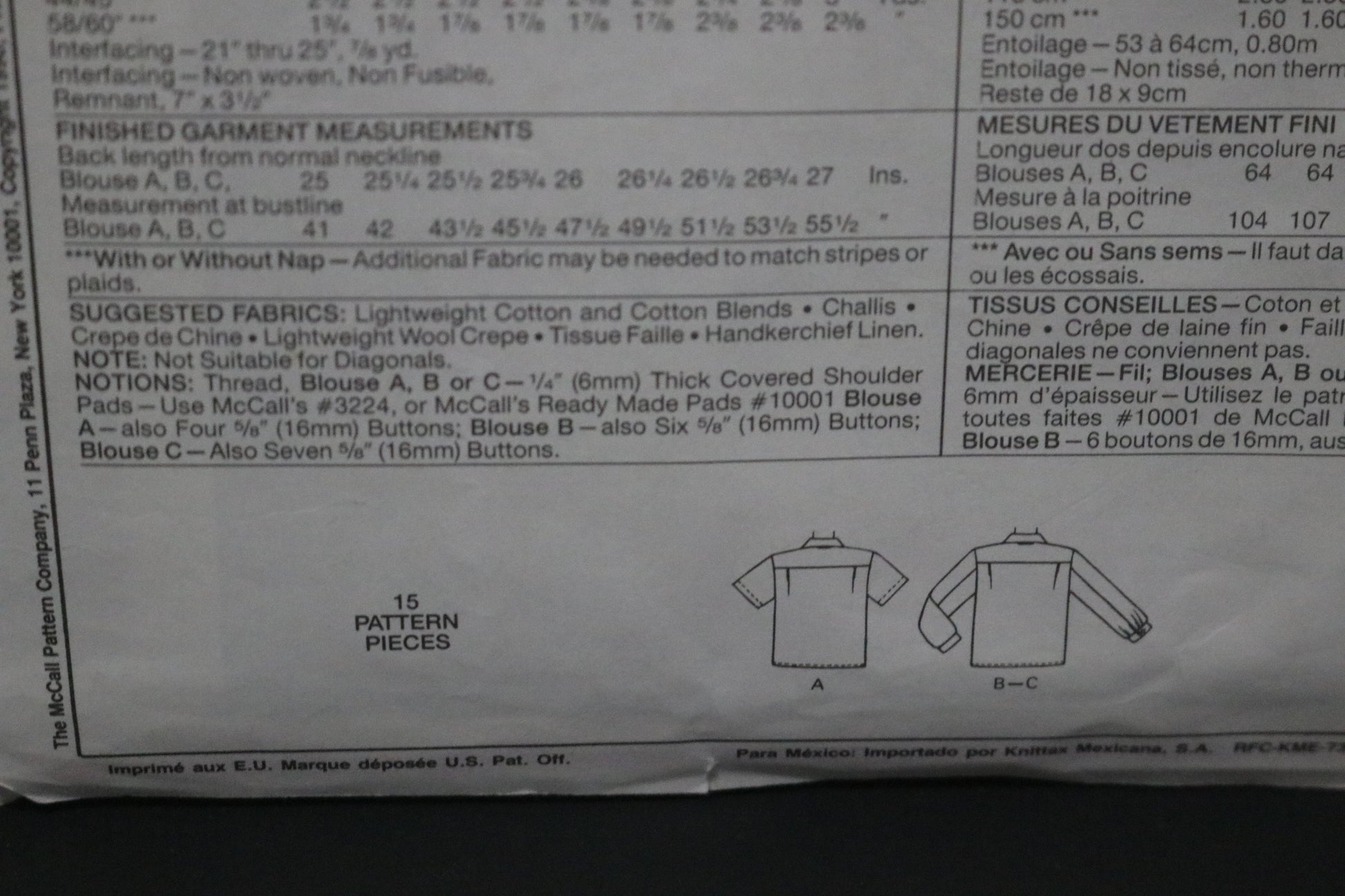McCalls 4880 Palmer Pletsch Misses Blouses Sewing Pattern UNCUT - Size 10