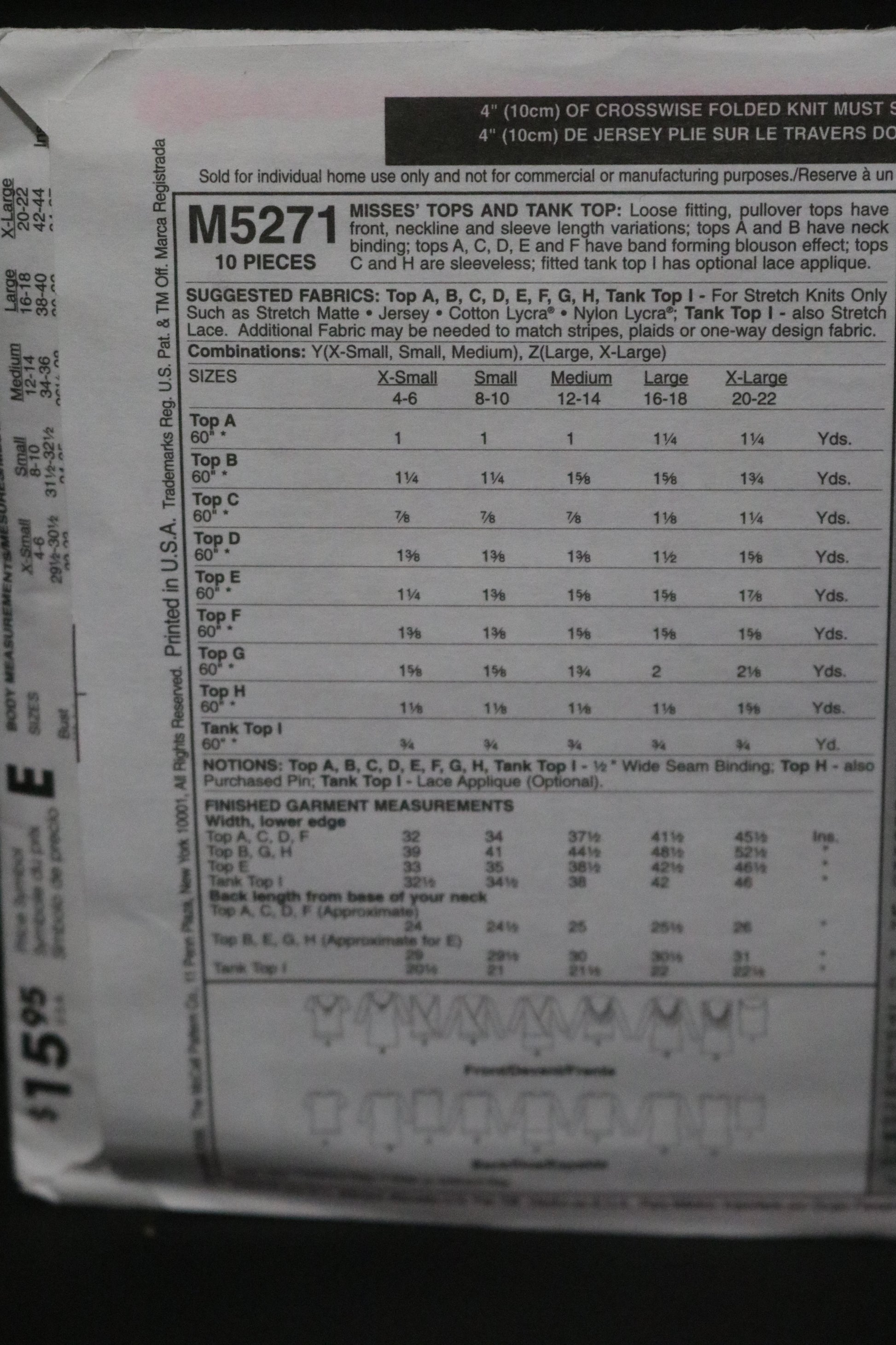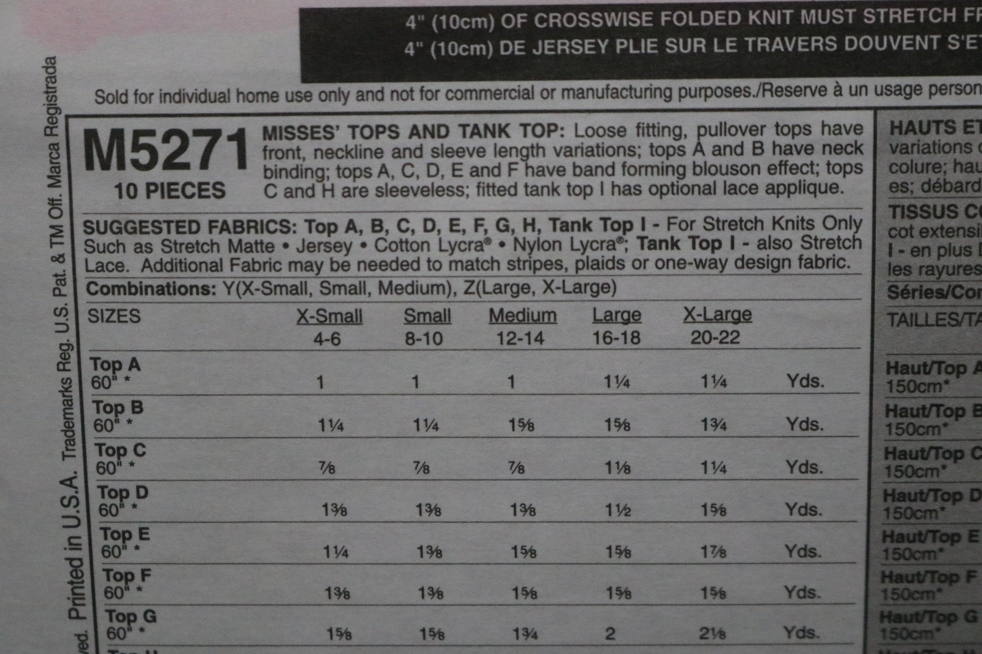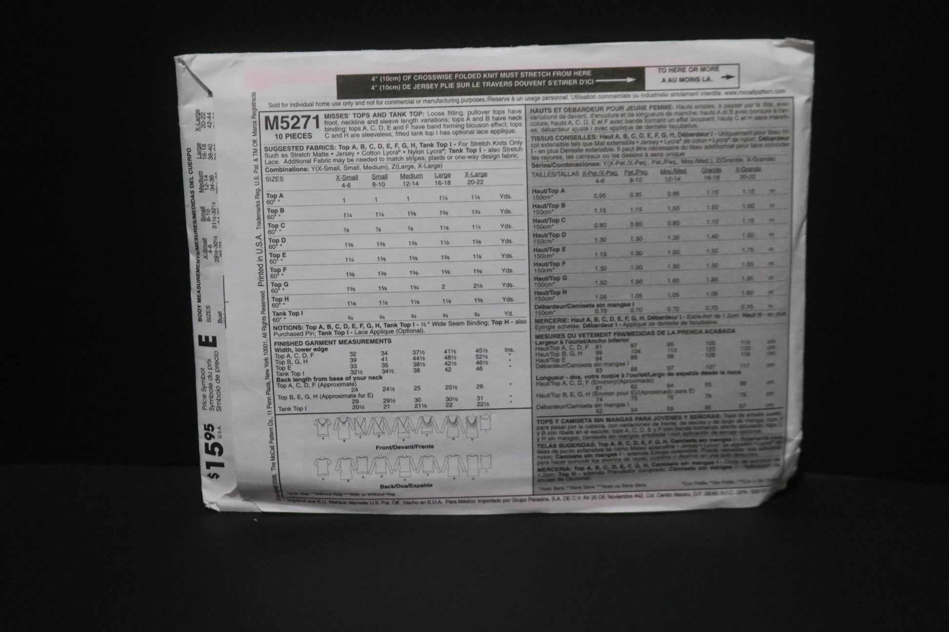 McCalls 5271 Misses Tops and Tank Top Sewing Pattern