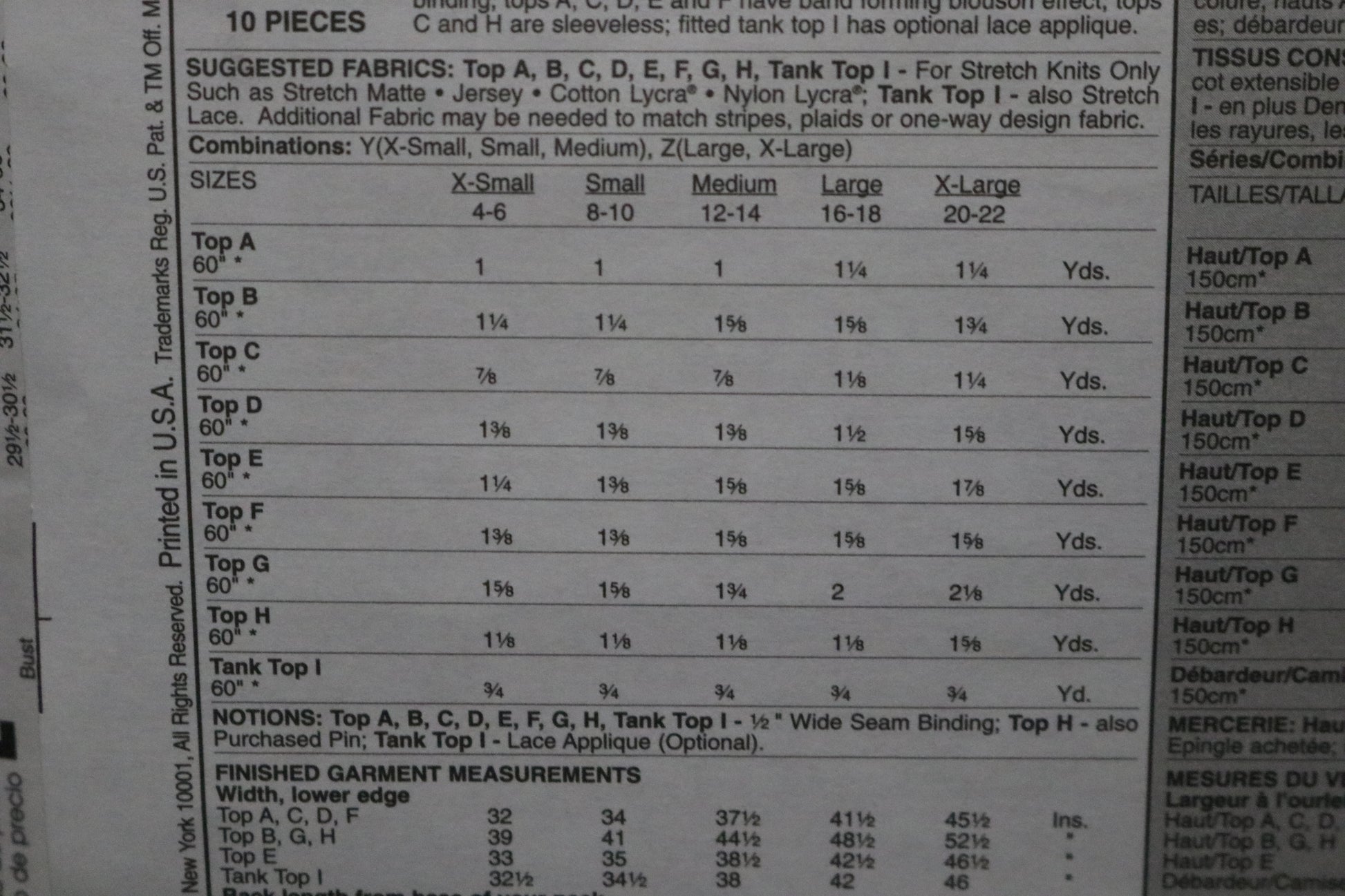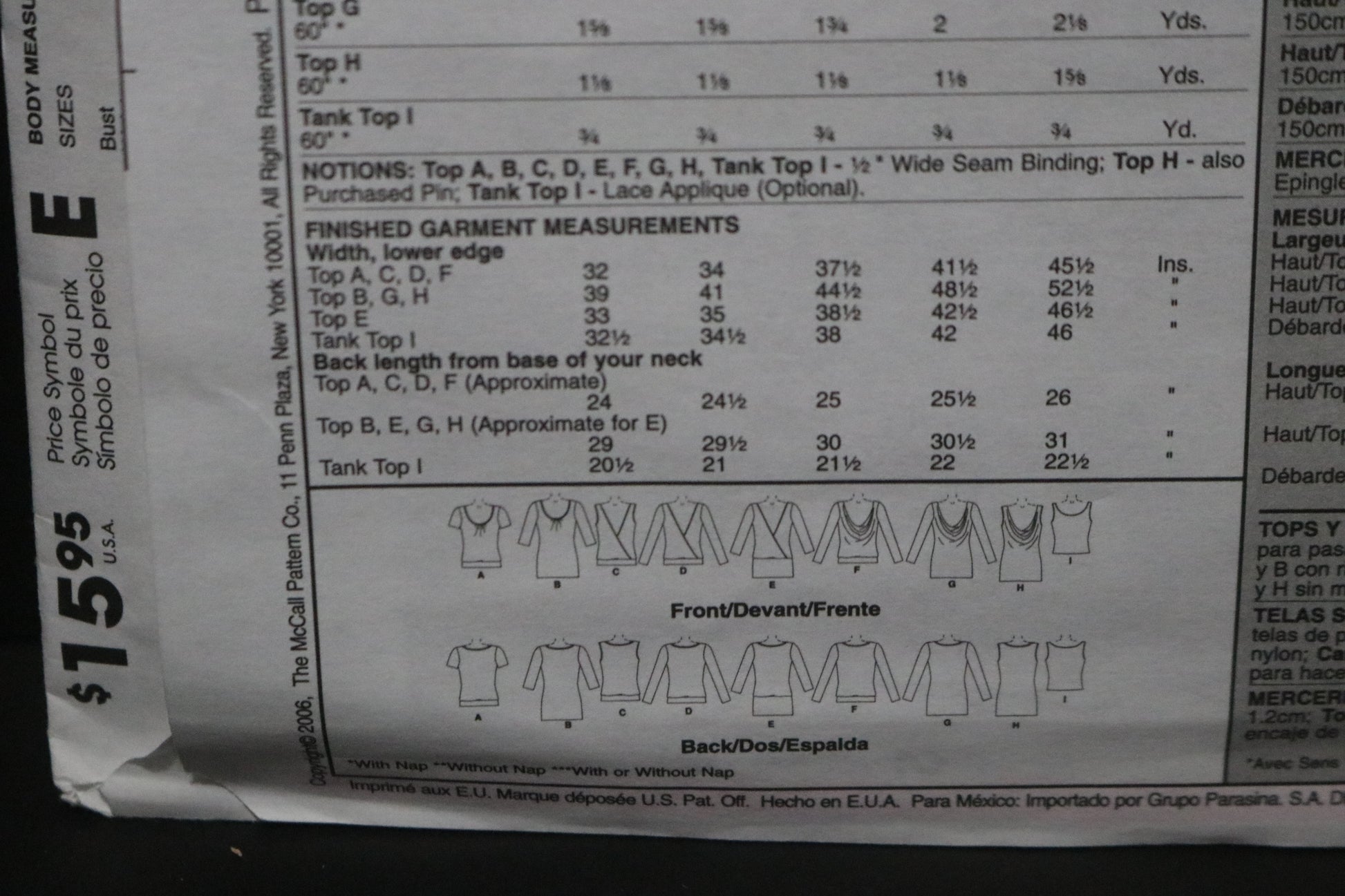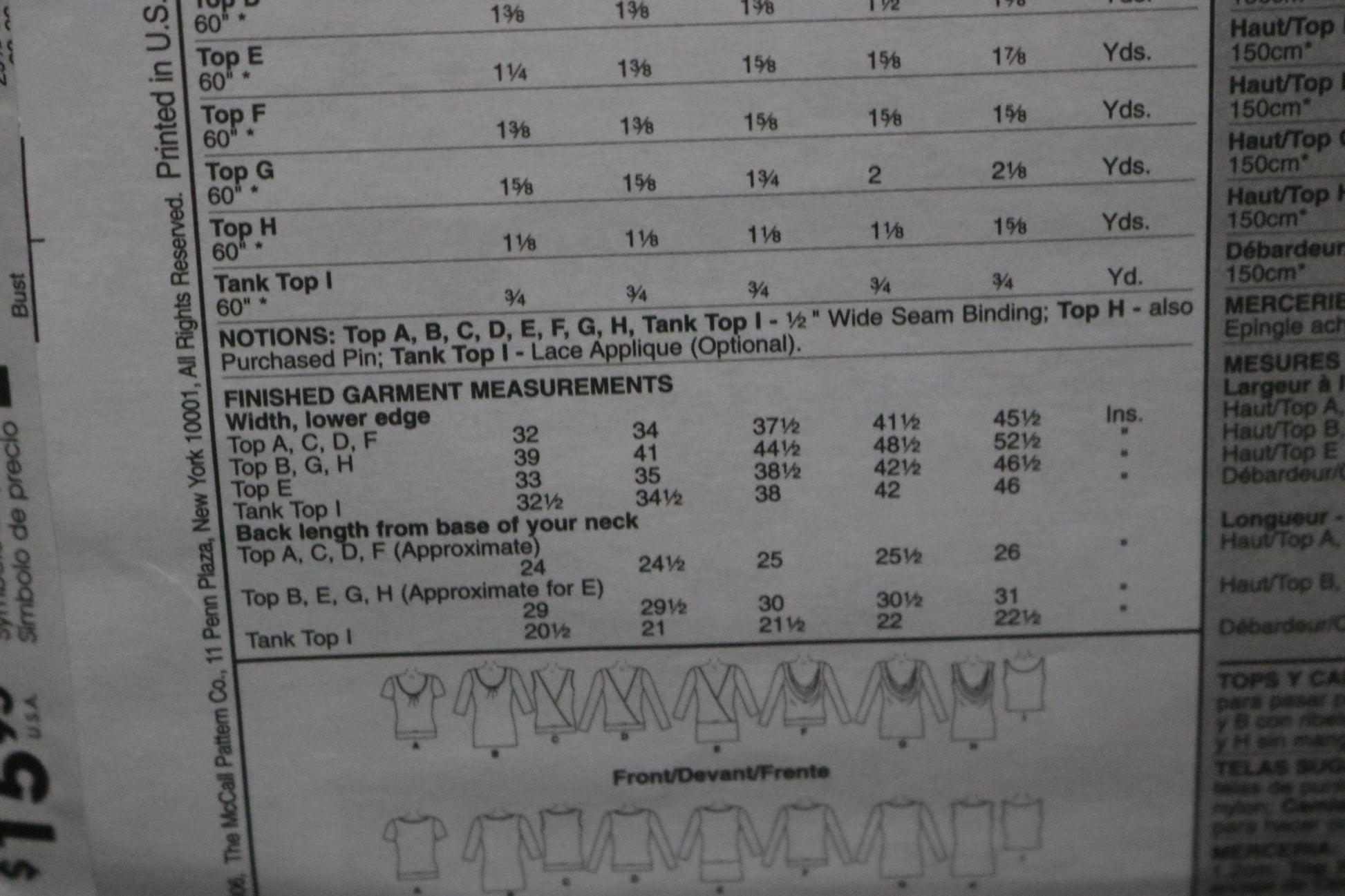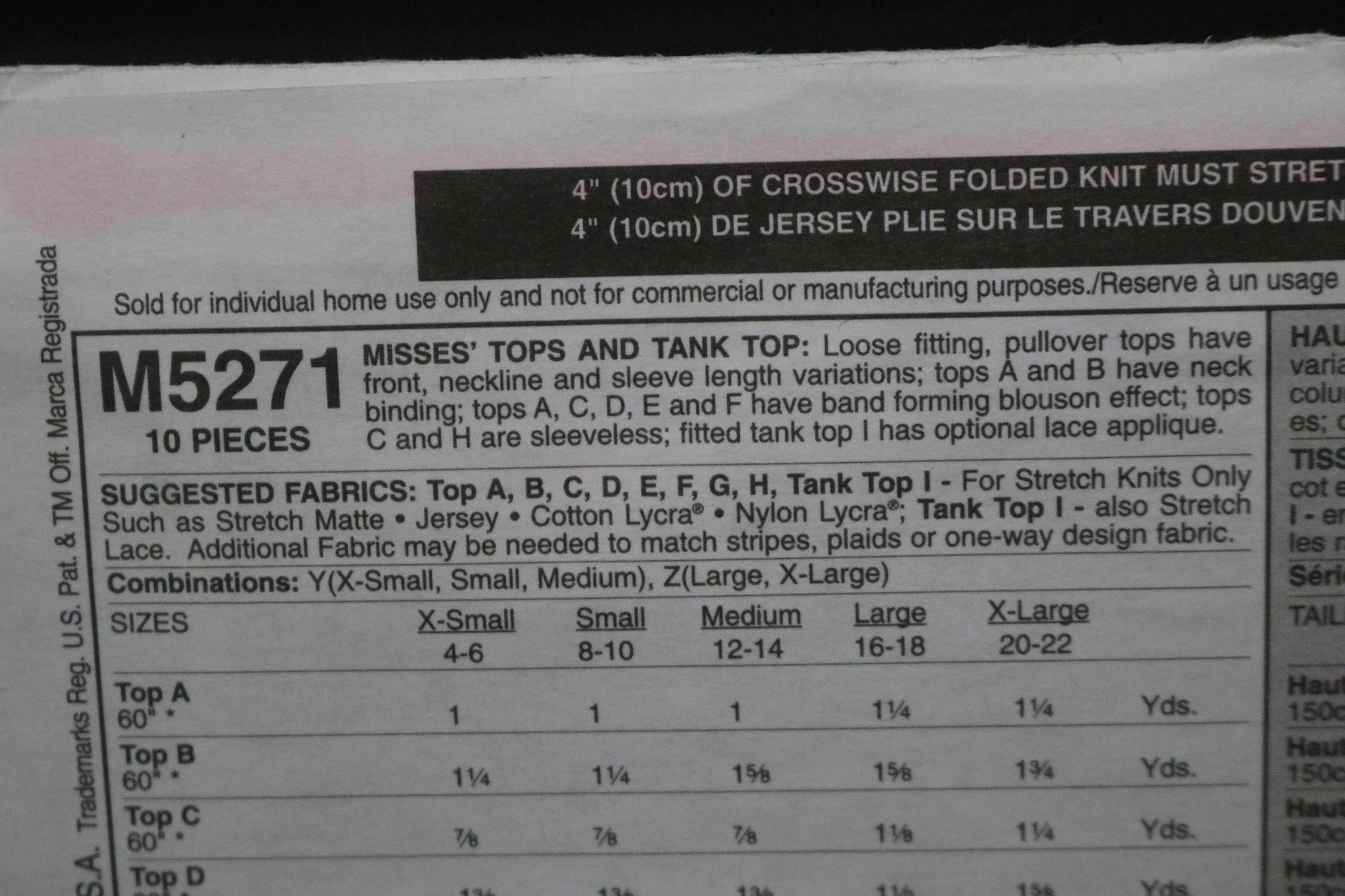McCalls 5271 Misses Tops and Tank Top Sewing Pattern