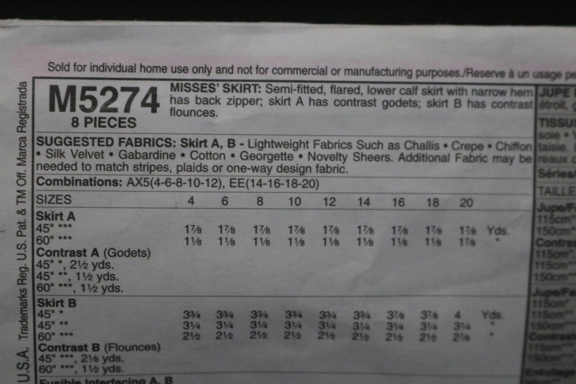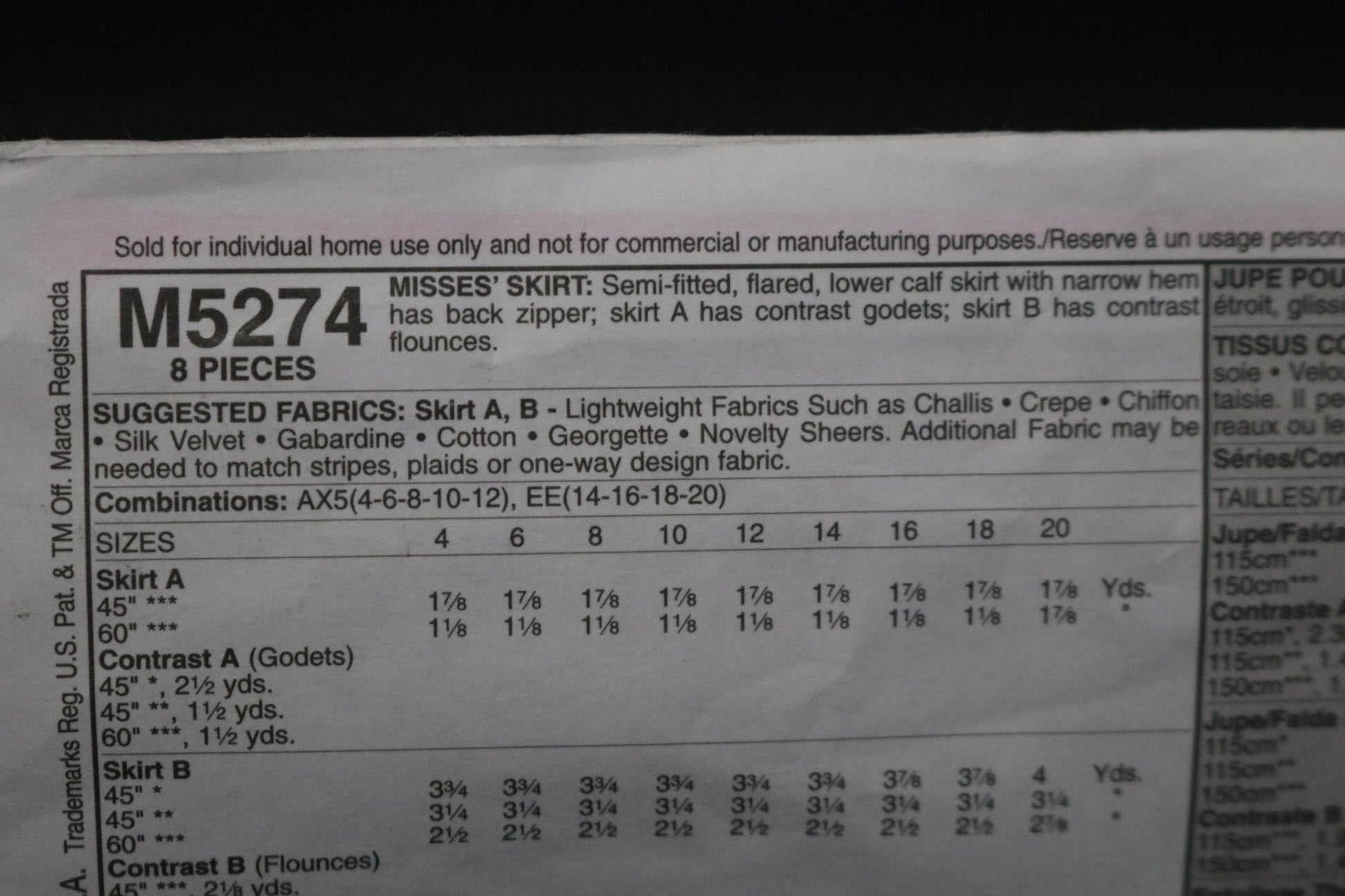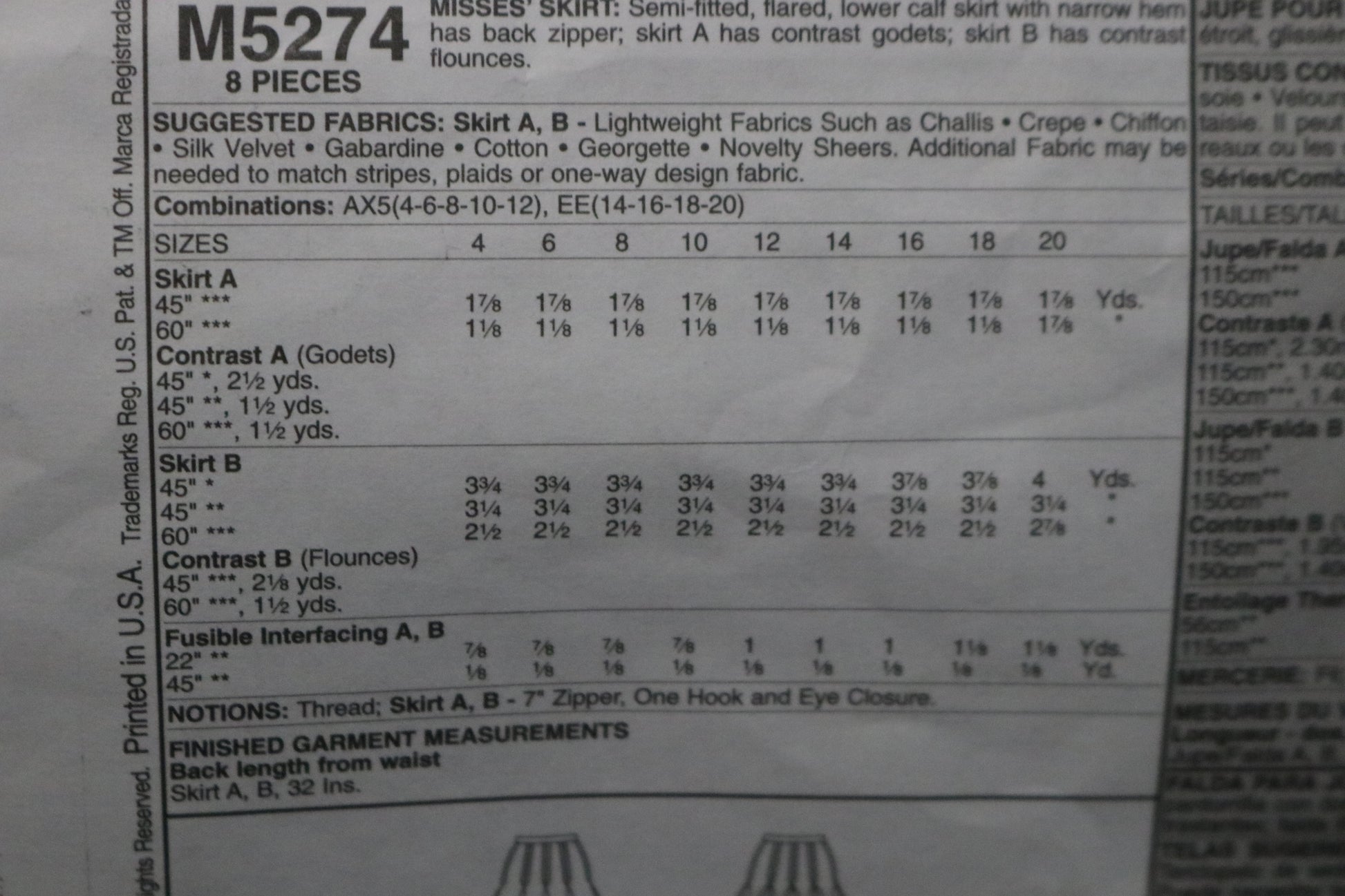 McCalls 5274 Misses Skirts Sewing Pattern UNCUT Size 14 16 18 20