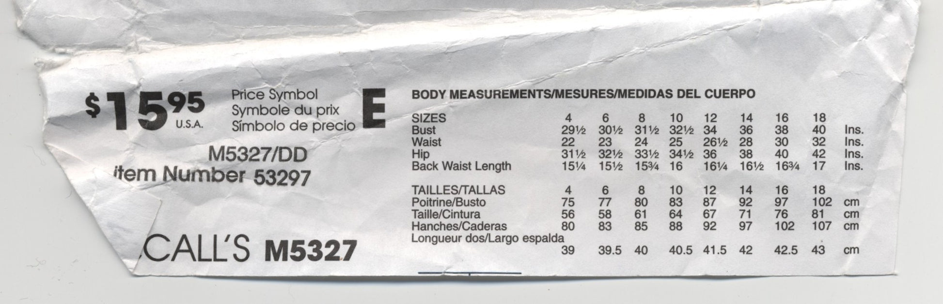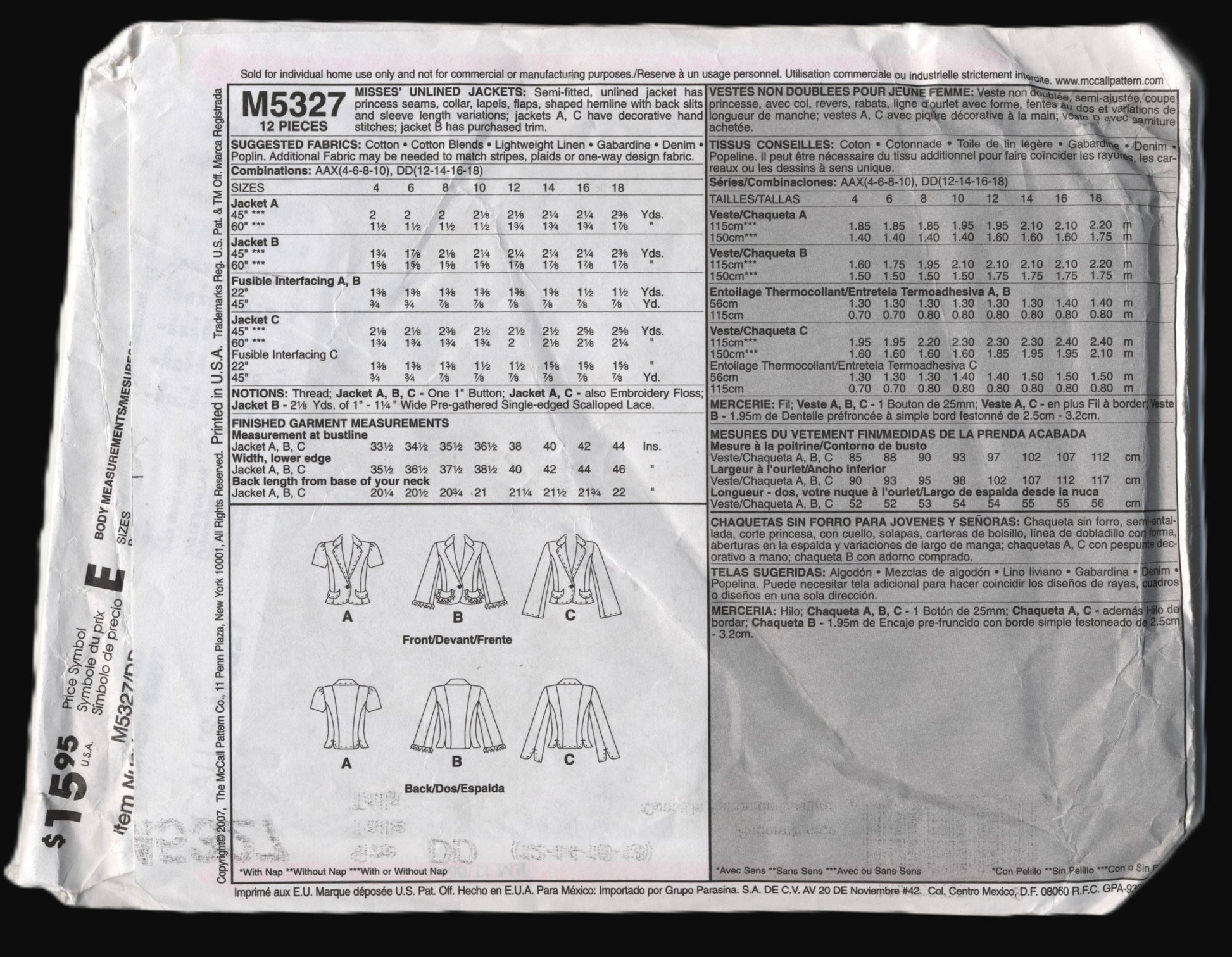 McCalls 5327 Misses Unlined jacket Sewing Pattern