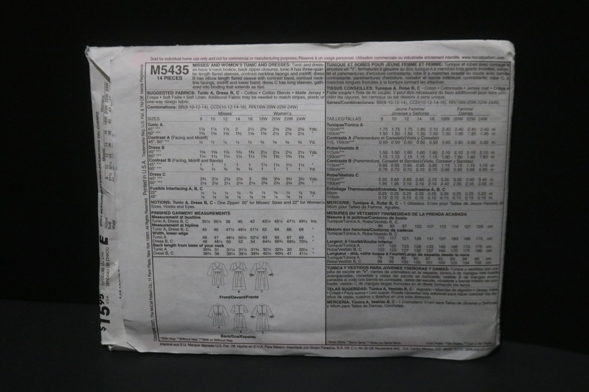 McCalls 5435 Misses Tunic and Dresses Sewing Pattern - UNCUT - Size 10 12 14 16
