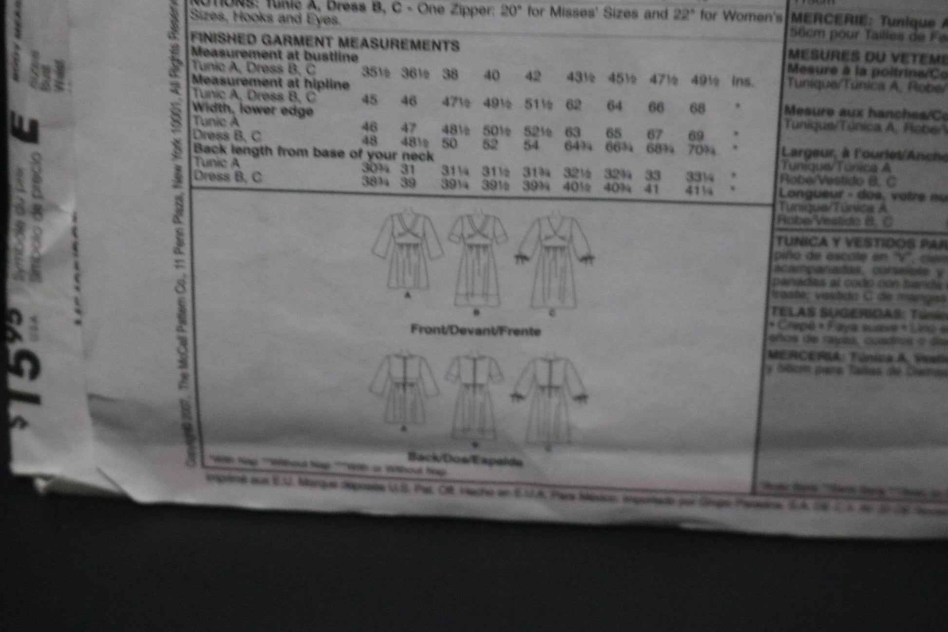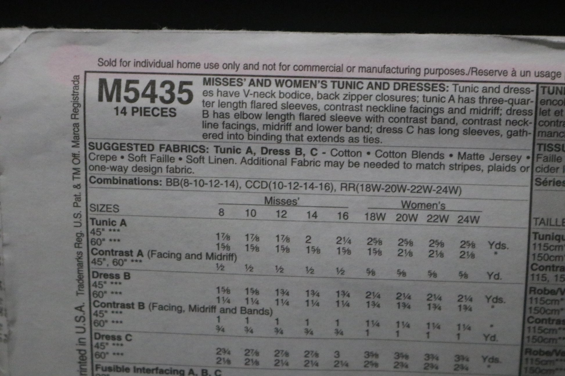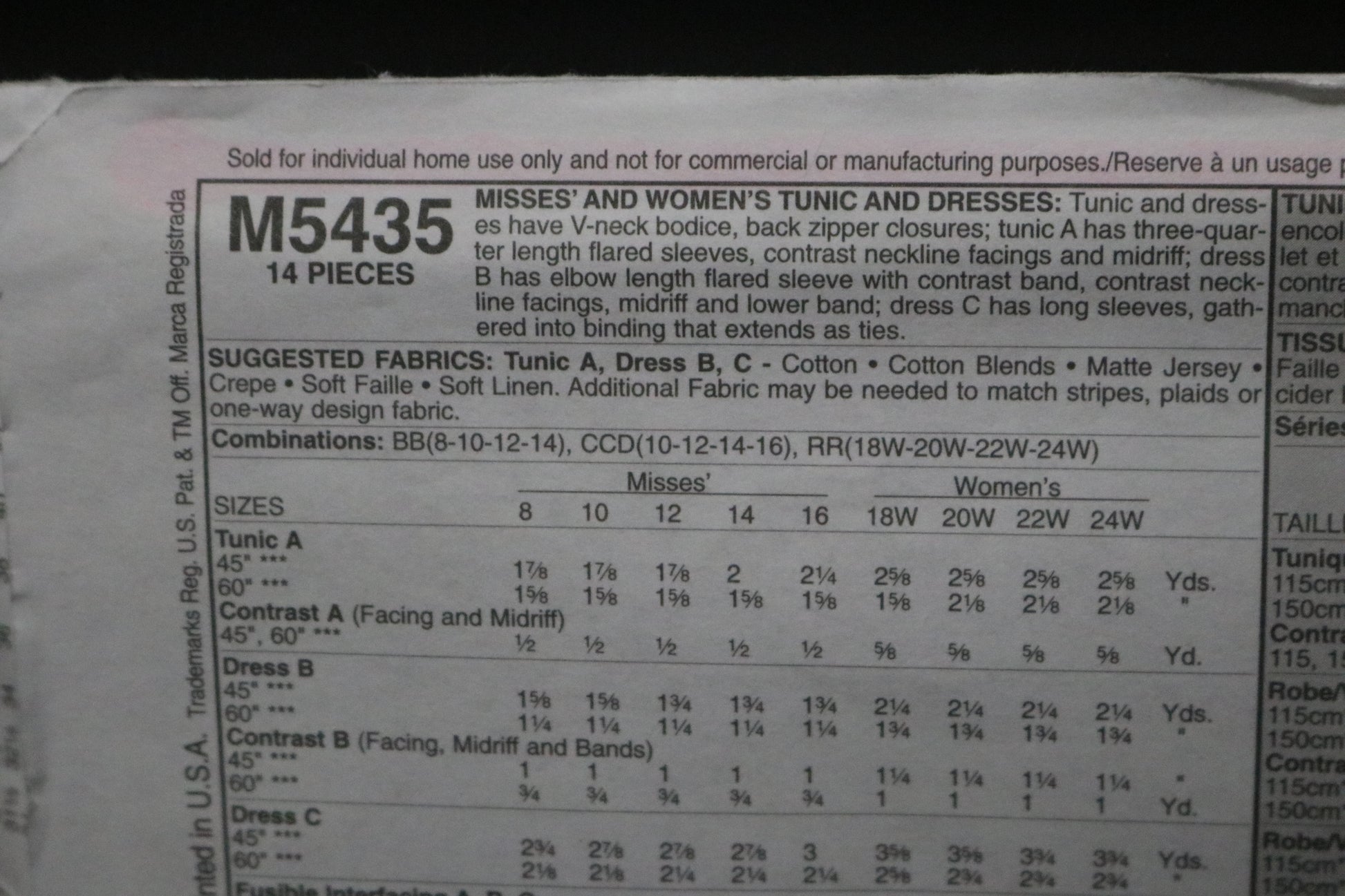 McCalls 5435 Misses Tunic and Dresses Sewing Pattern
