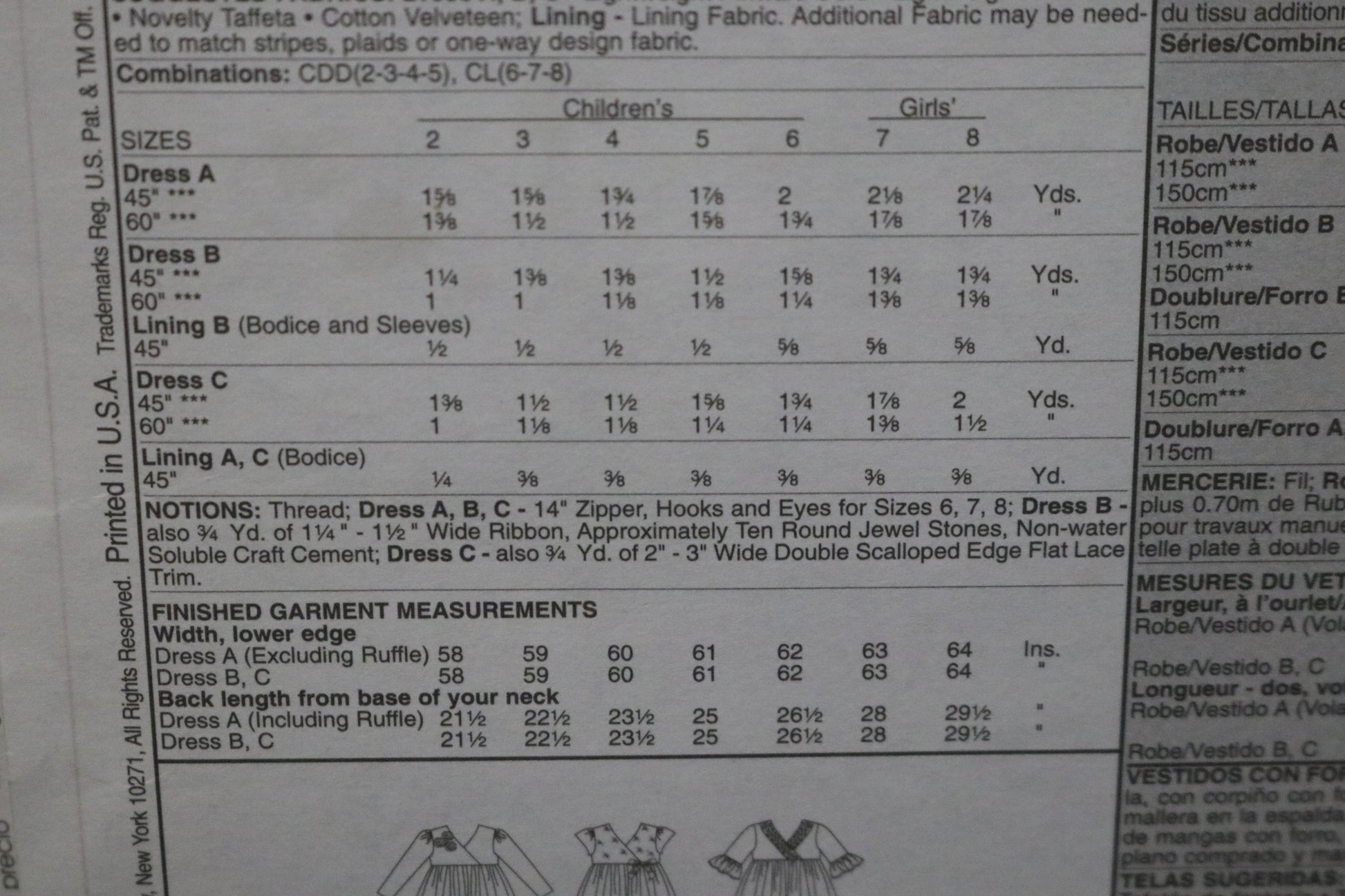 McCalls 5966 Children's Girls Lined Dresses Sewing Pattern UNCUT Size 6 7 8