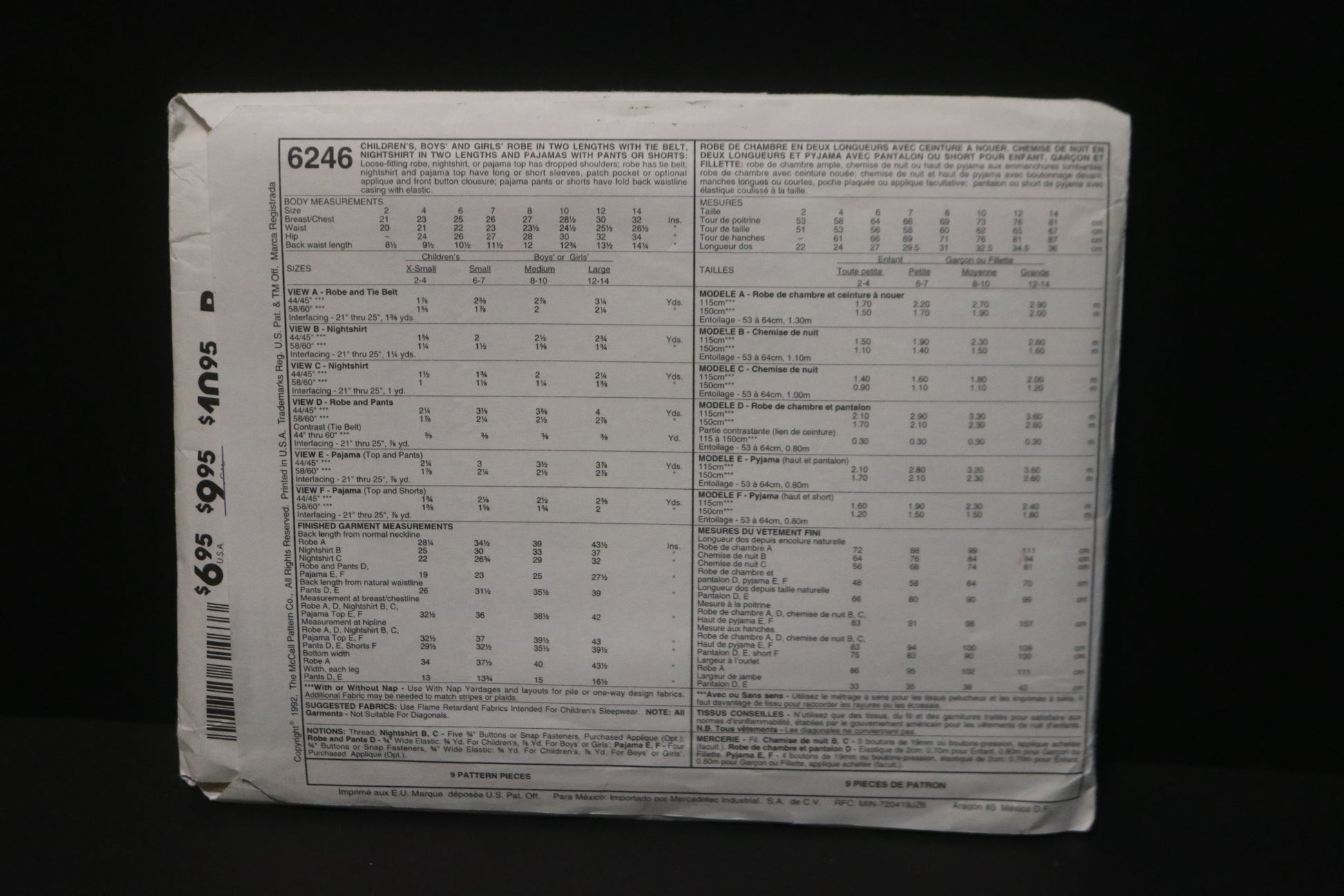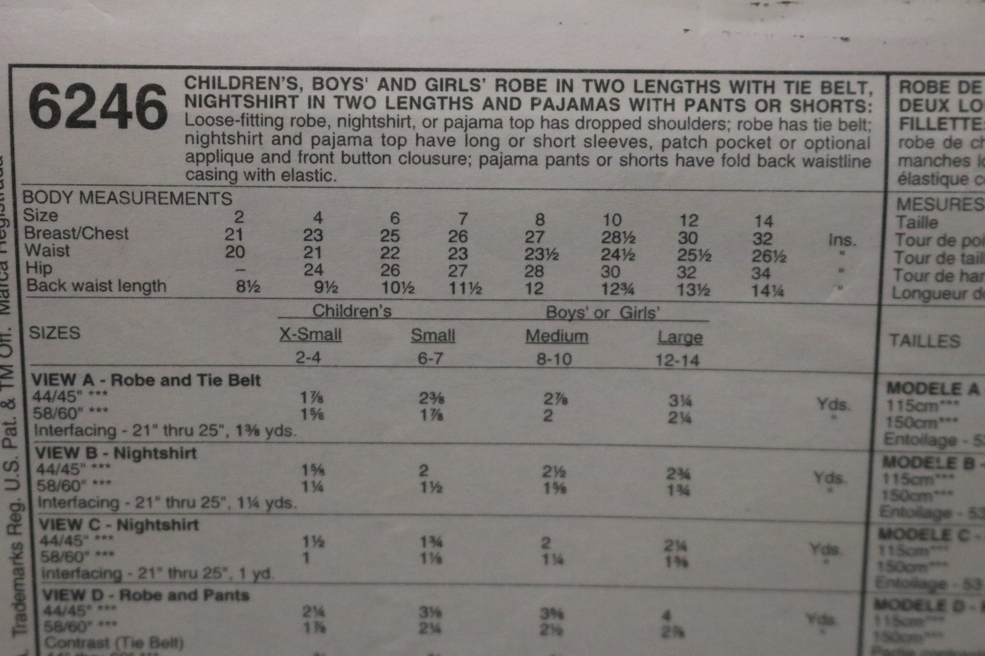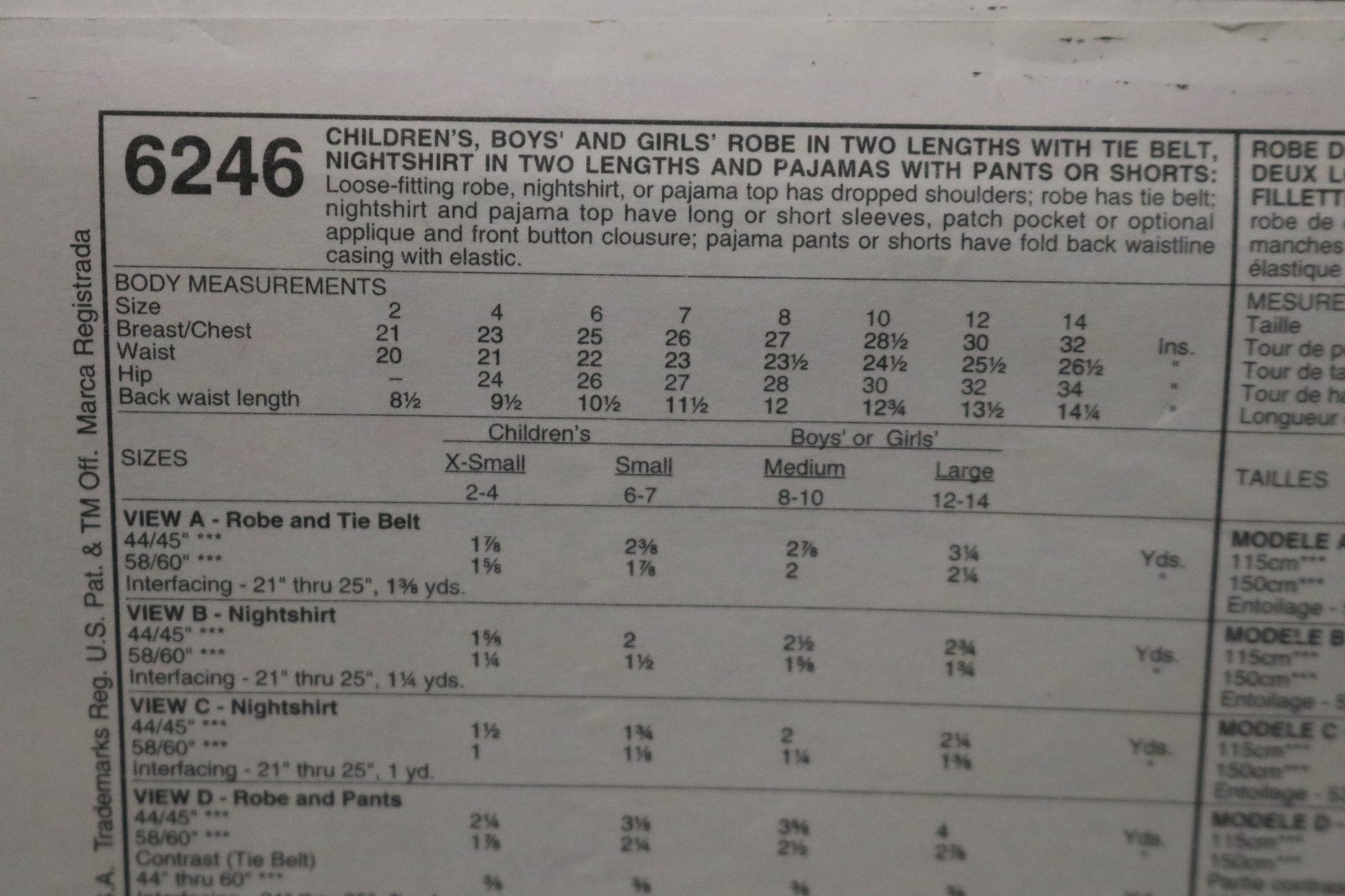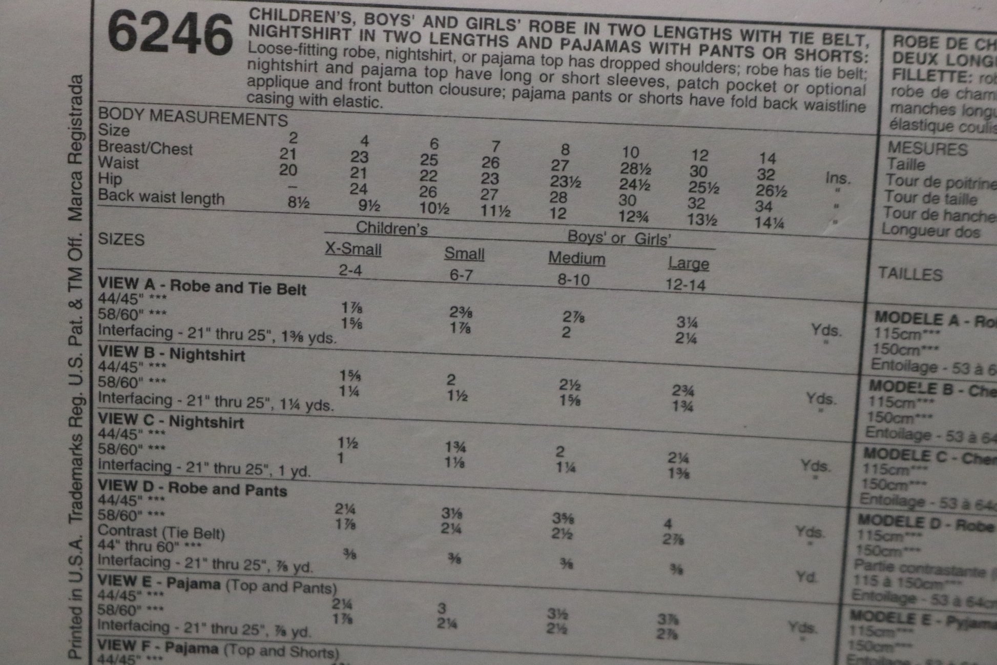 McCalls 6246 Children's Boys and Girls Robe in Two Lengths with Tie Belt, Nightshirt in Two Lengths and Pajamas or Shorts Sewing Pattern