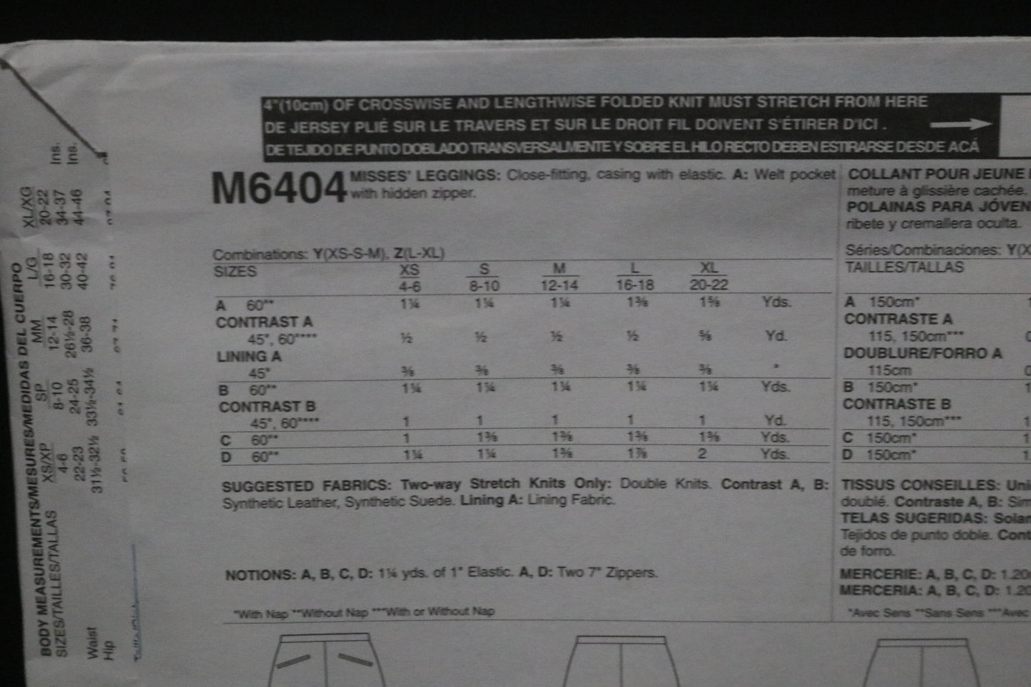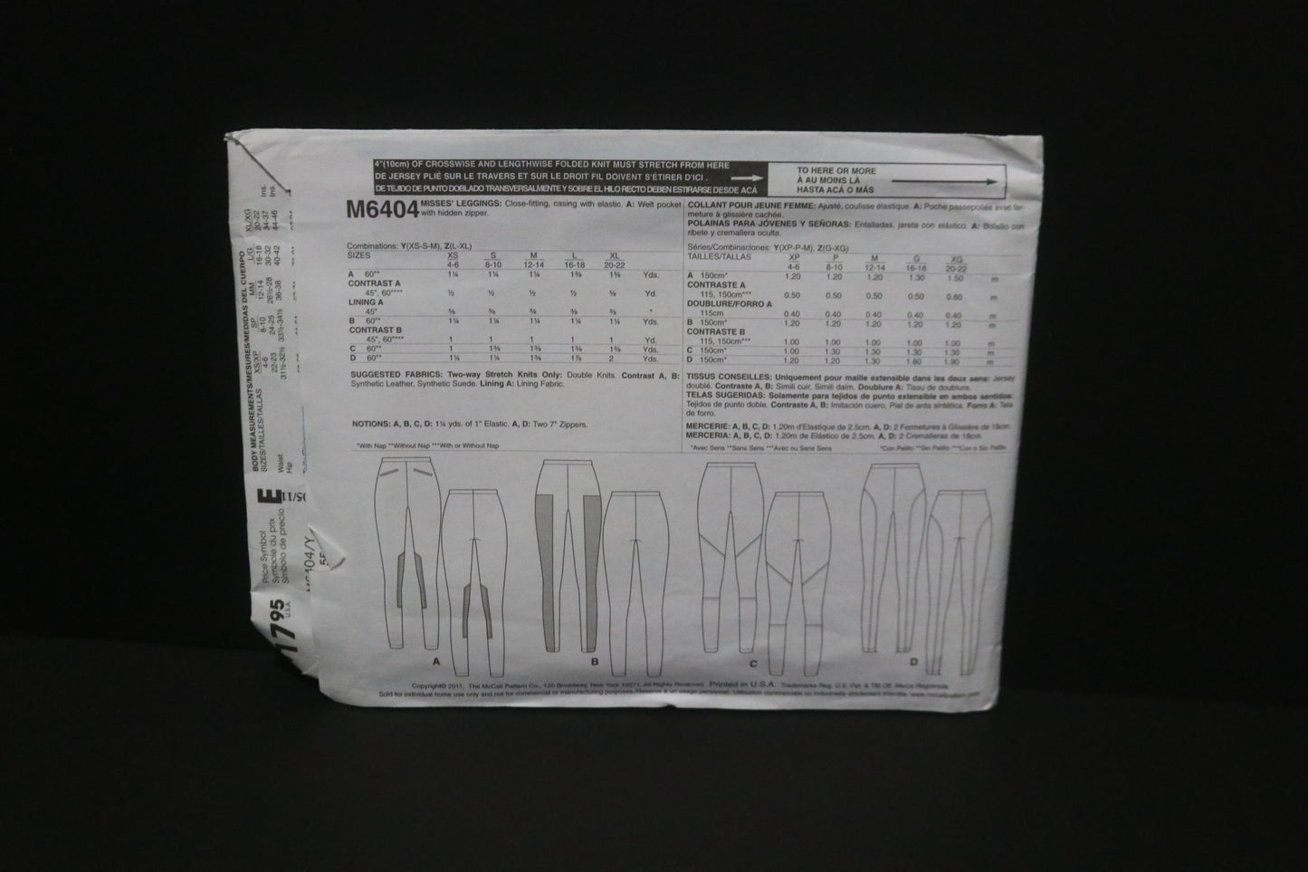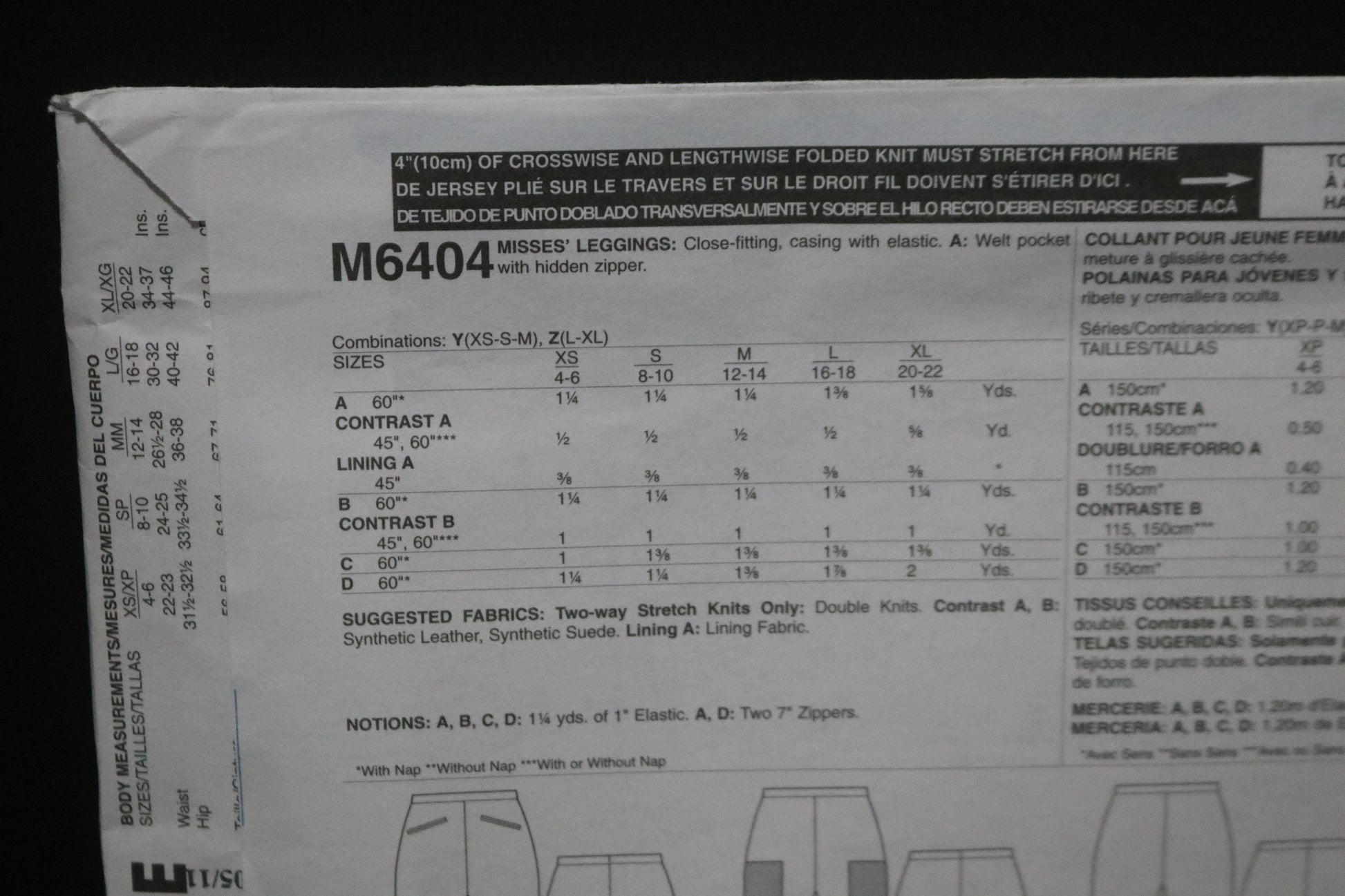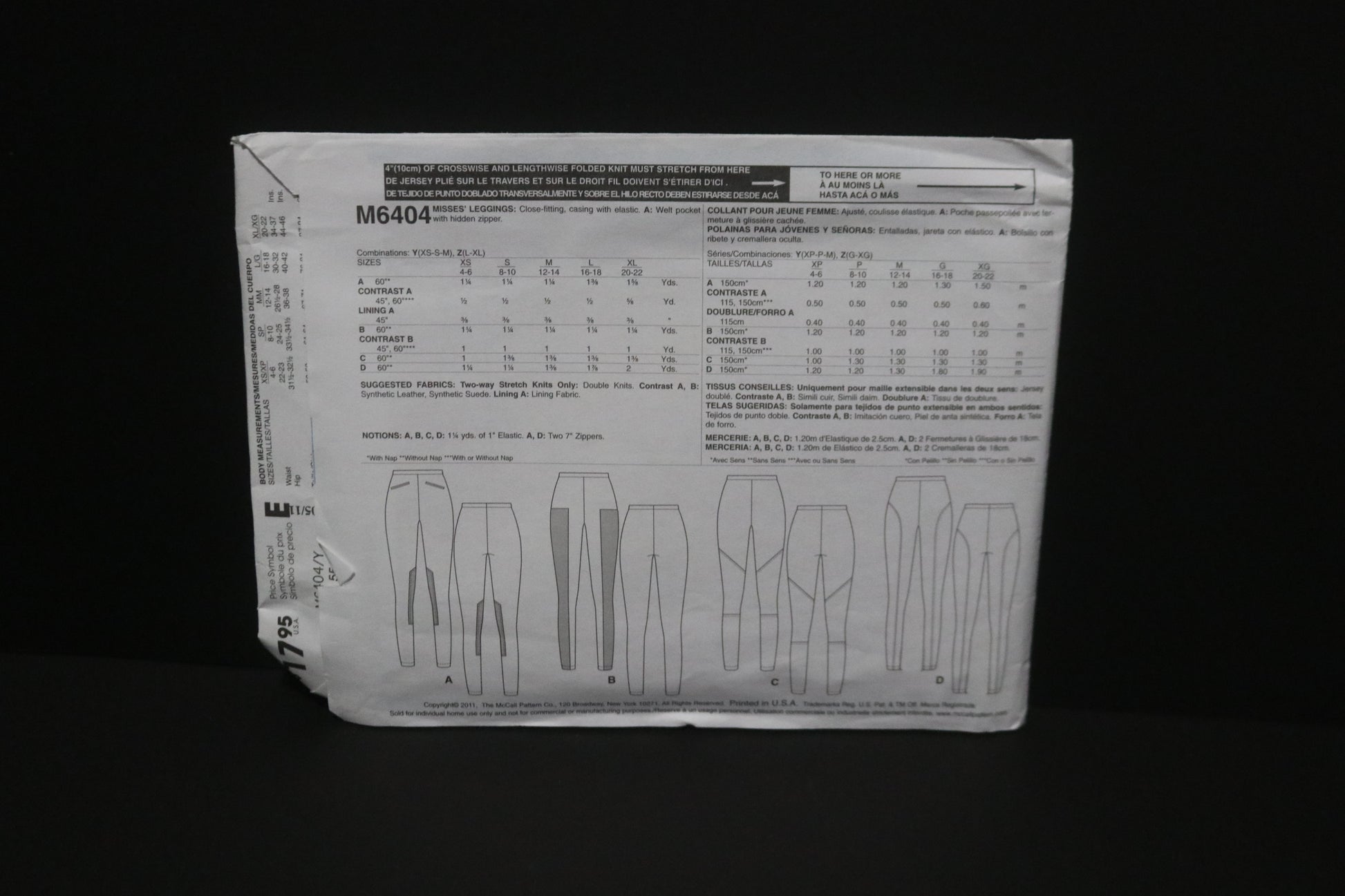 McCalls 6404 Misses Leggings Sewing Pattern UNCUT Size Xsm Sml Med