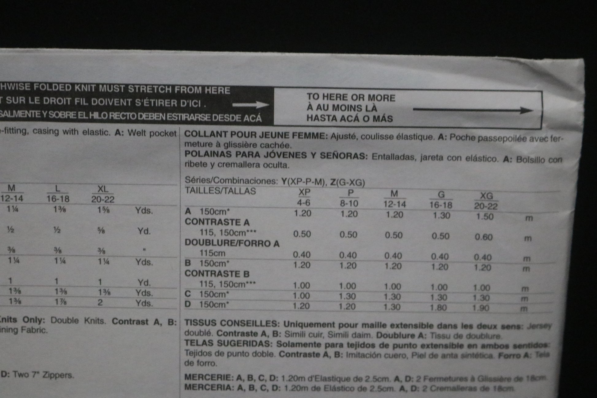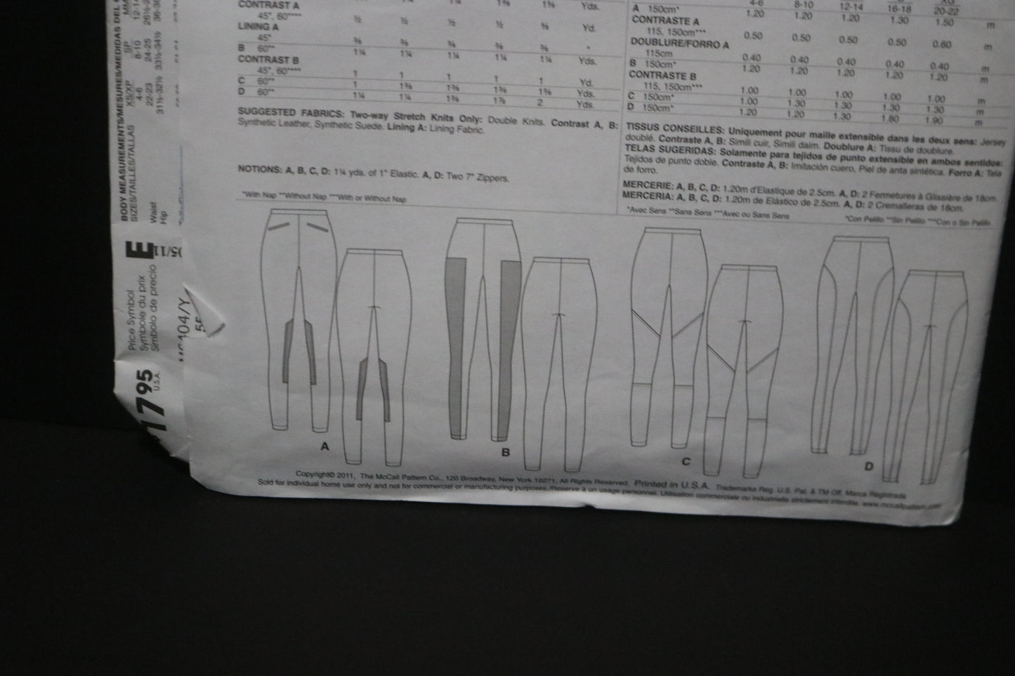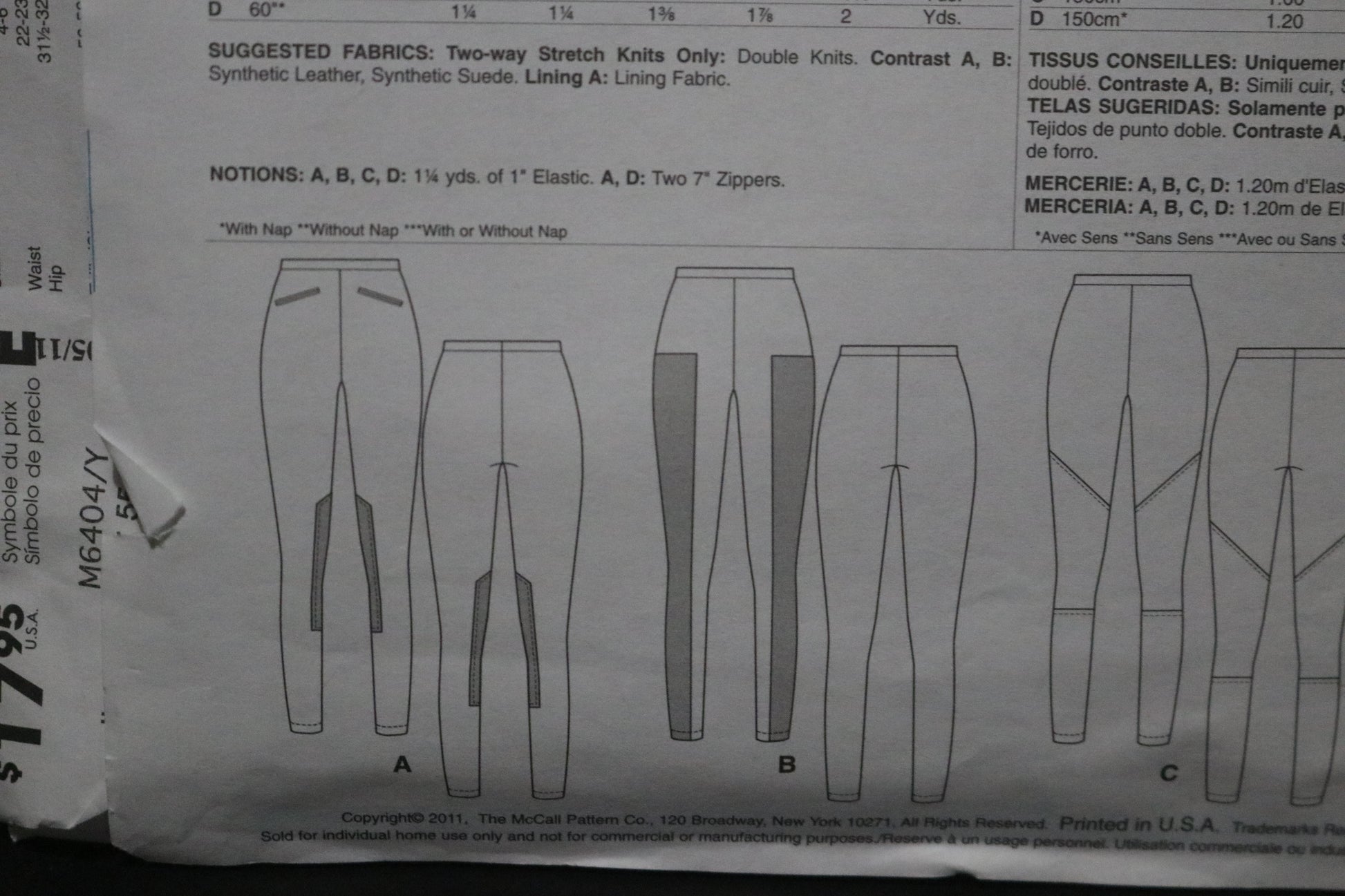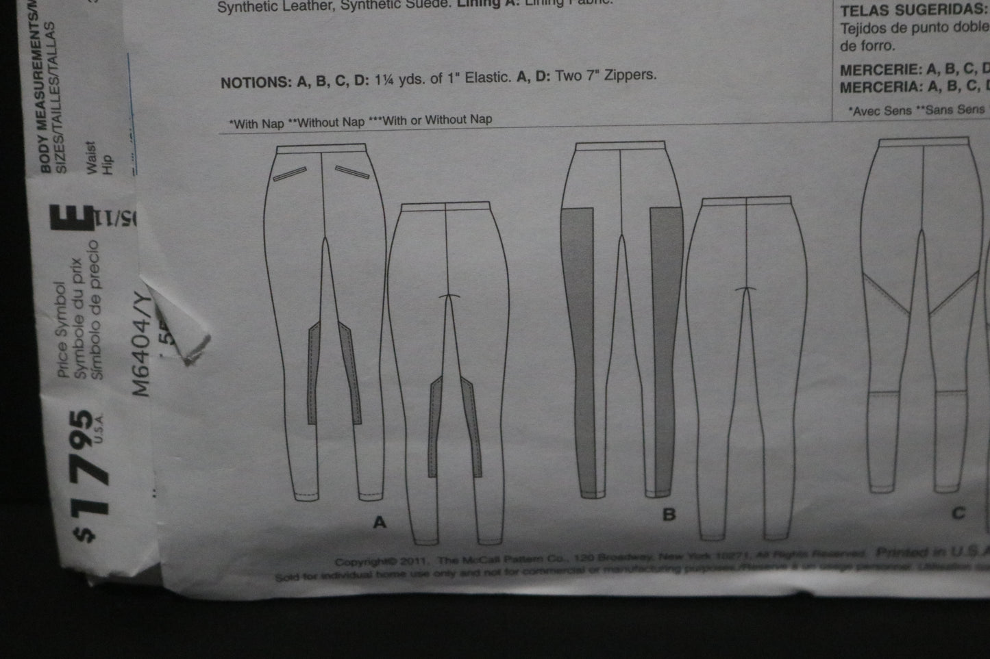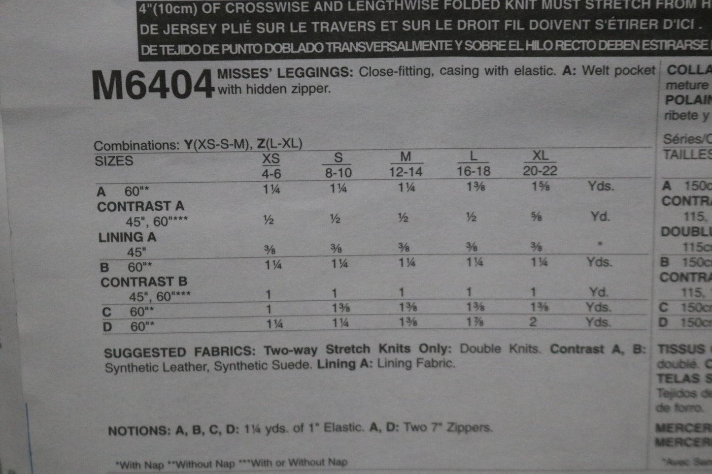 McCalls 6404 Misses Leggings Sewing Pattern UNCUT Size Xsm Sml Med