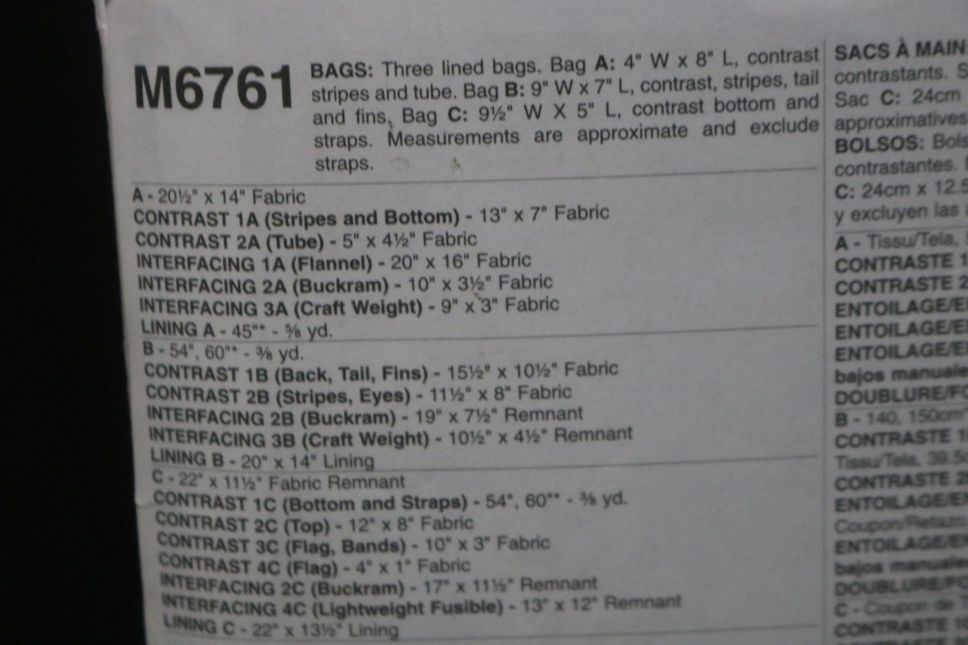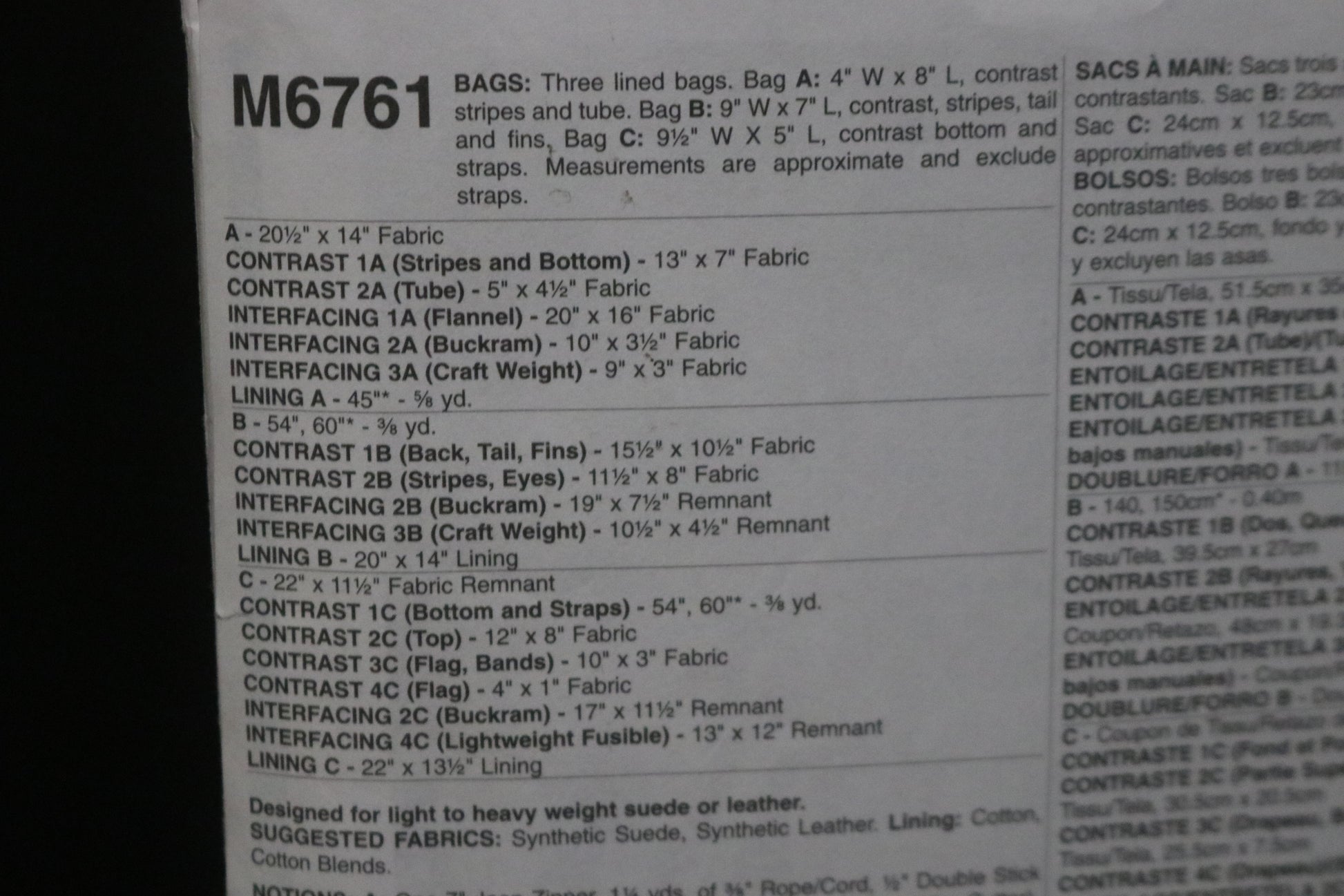 McCalls 6761 Bags Sewing Pattern UNCUT