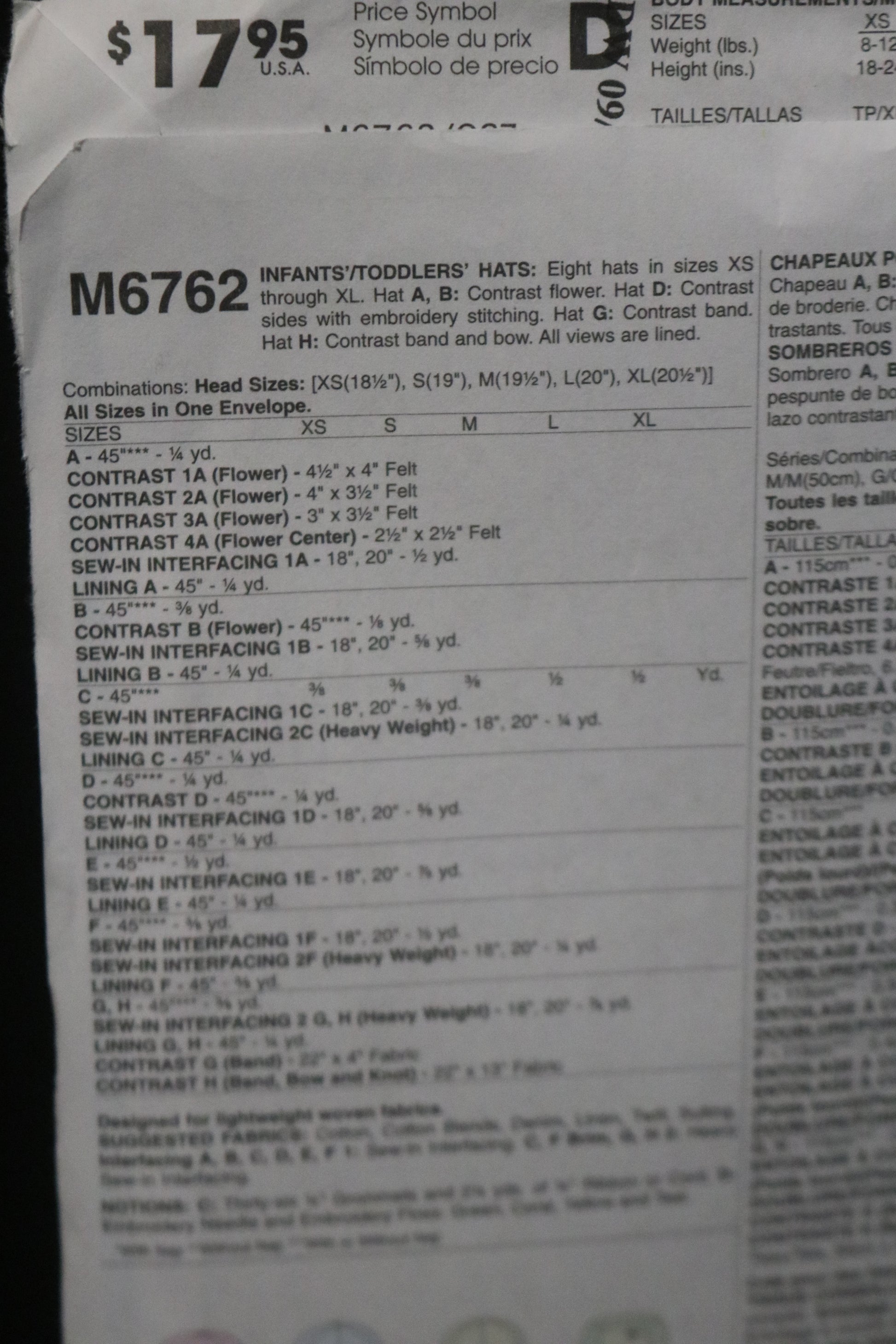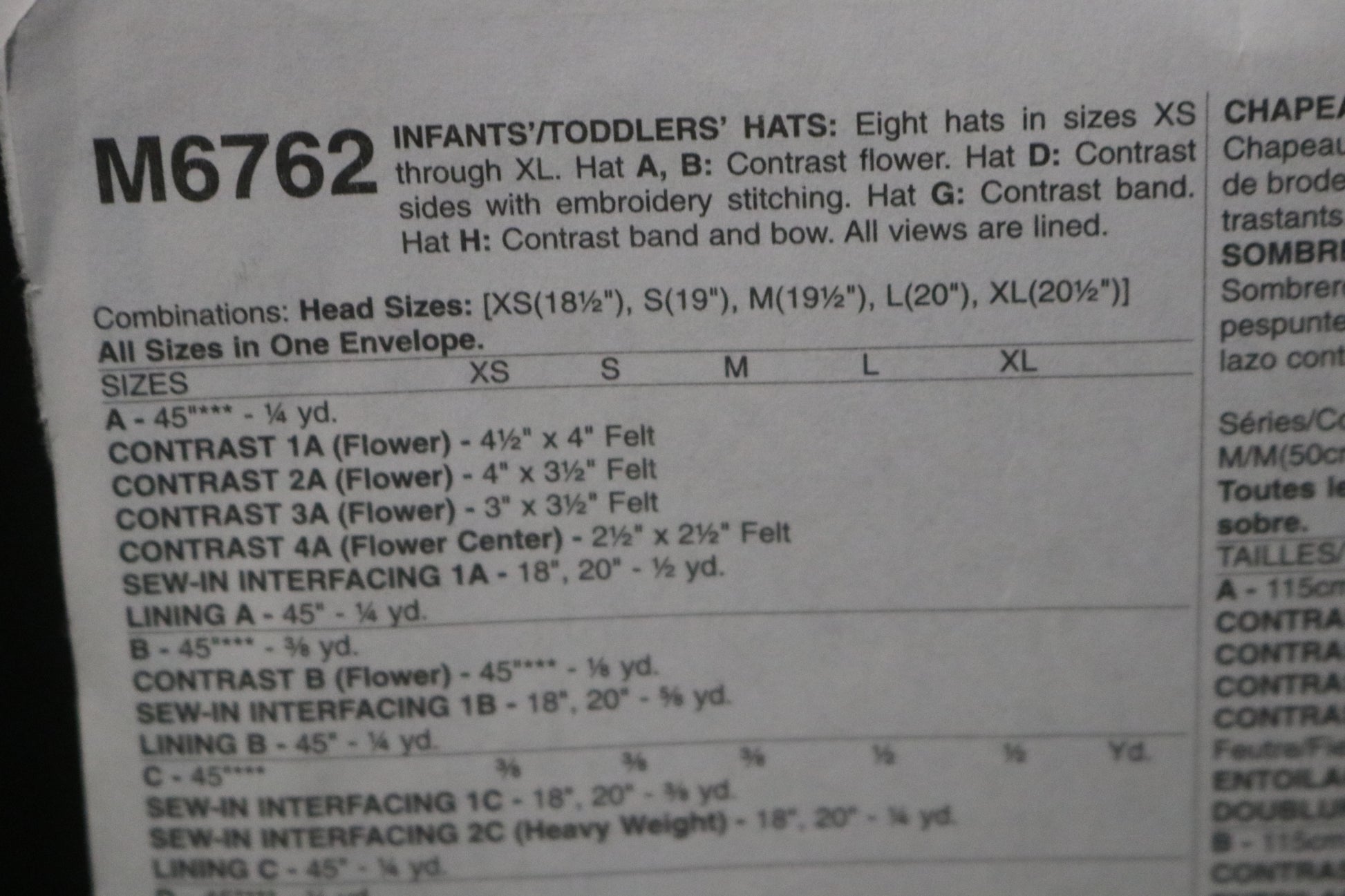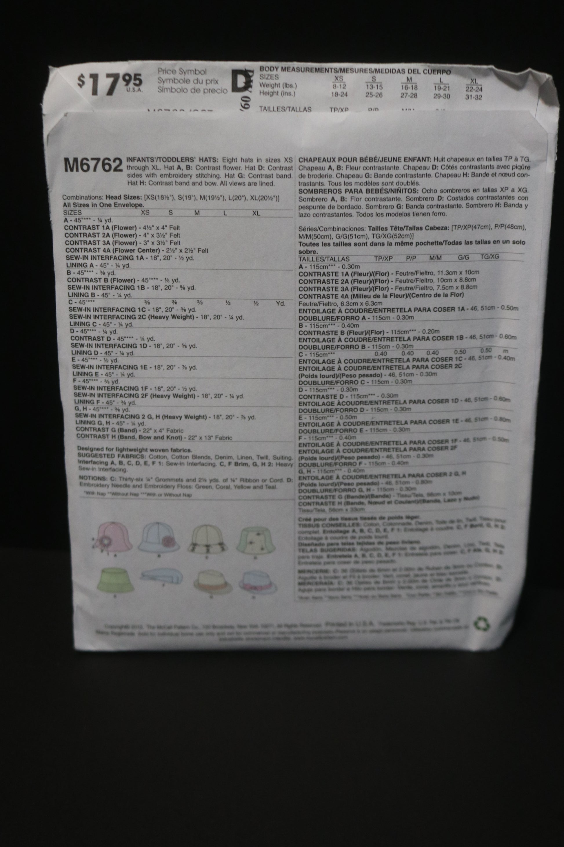 McCalls 6762 Infants / Toddlers Hats Sewing Pattern