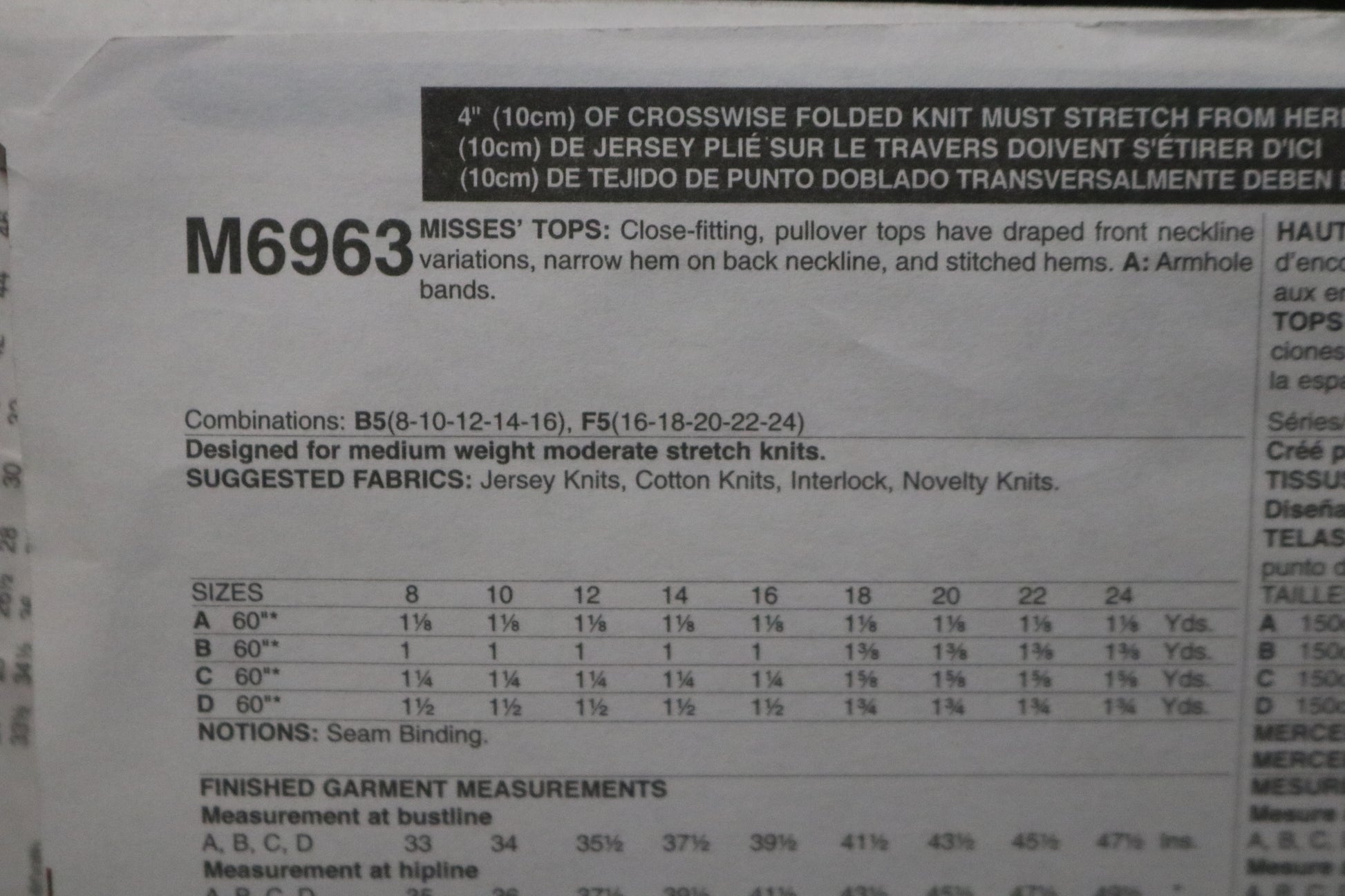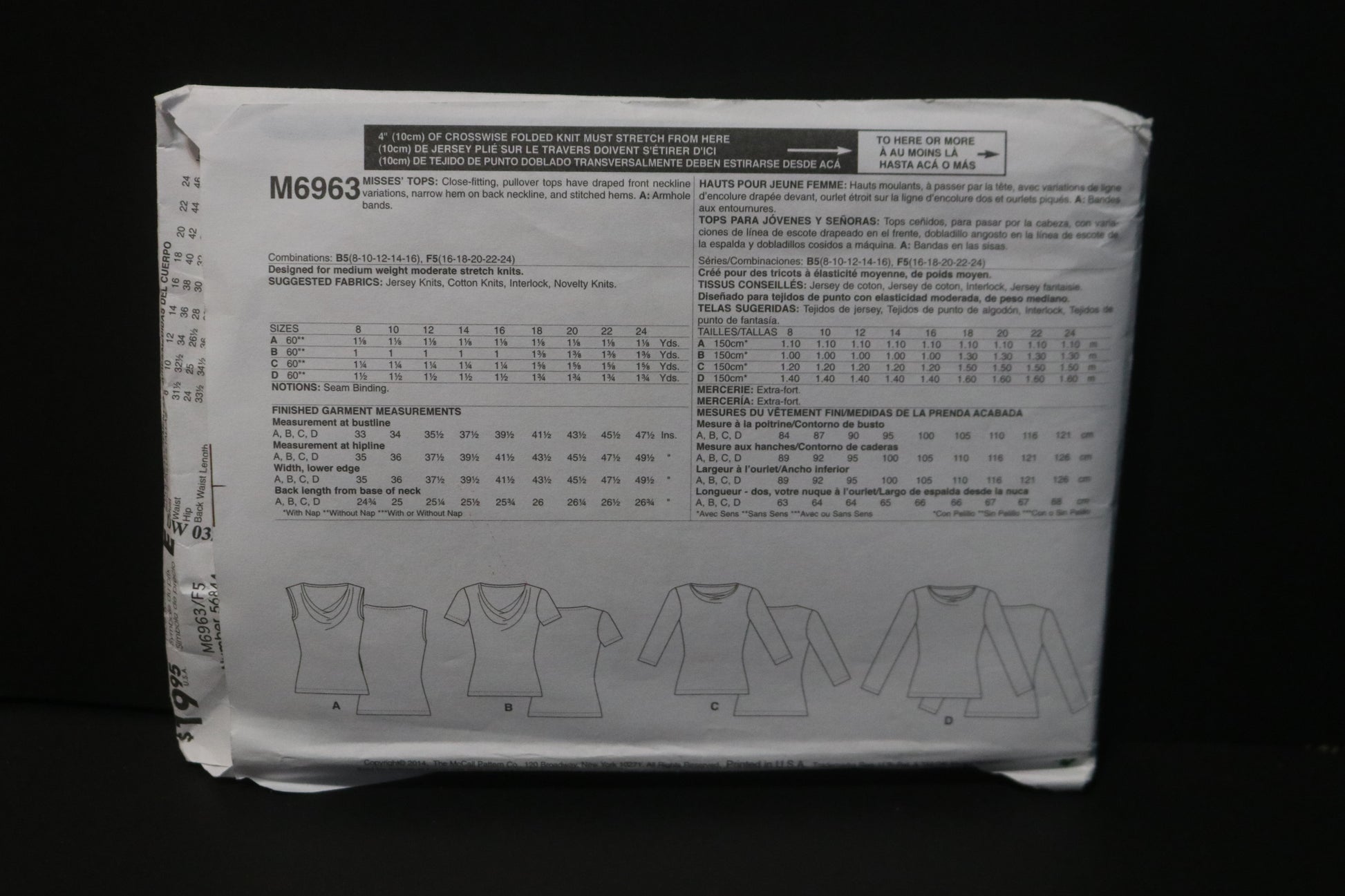 McCalls 6963 Palmer / Pletsch Misses Tops Sewing Pattern