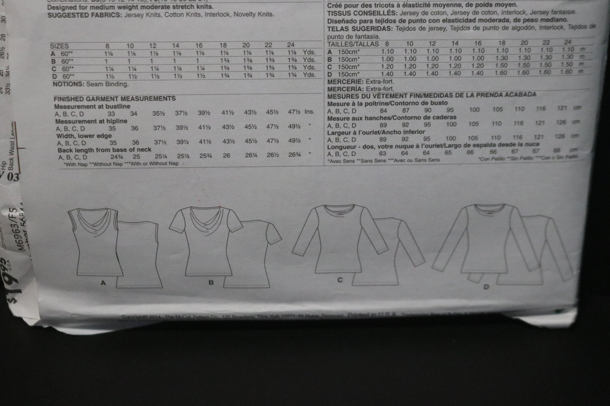 McCalls 6963 Palmer / pletsch Misses Tops Sewing Pattern - UNCUT - Size 16 18 20 22 24