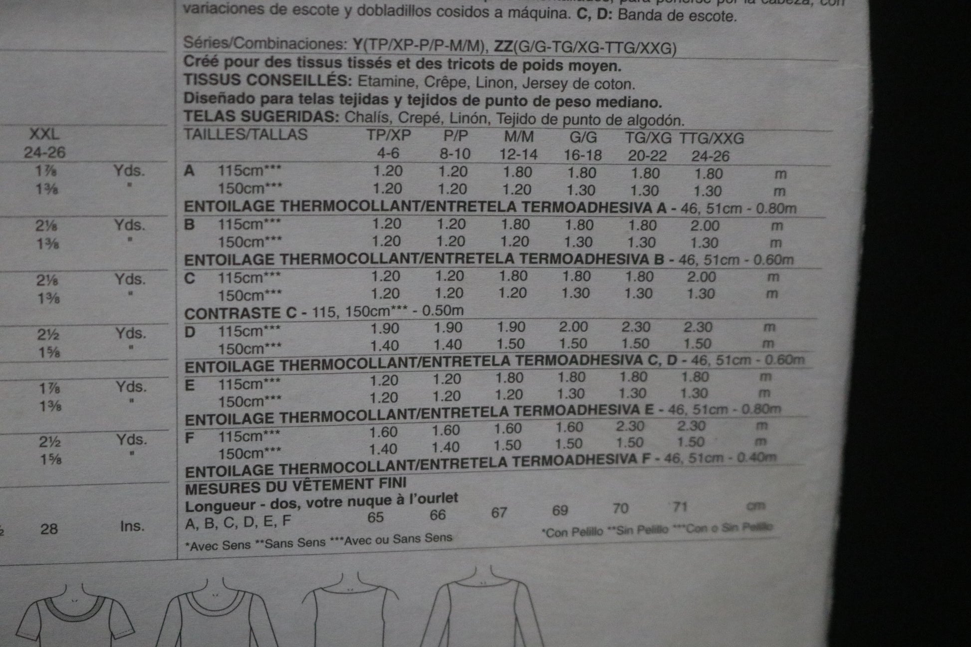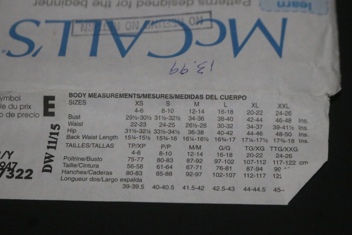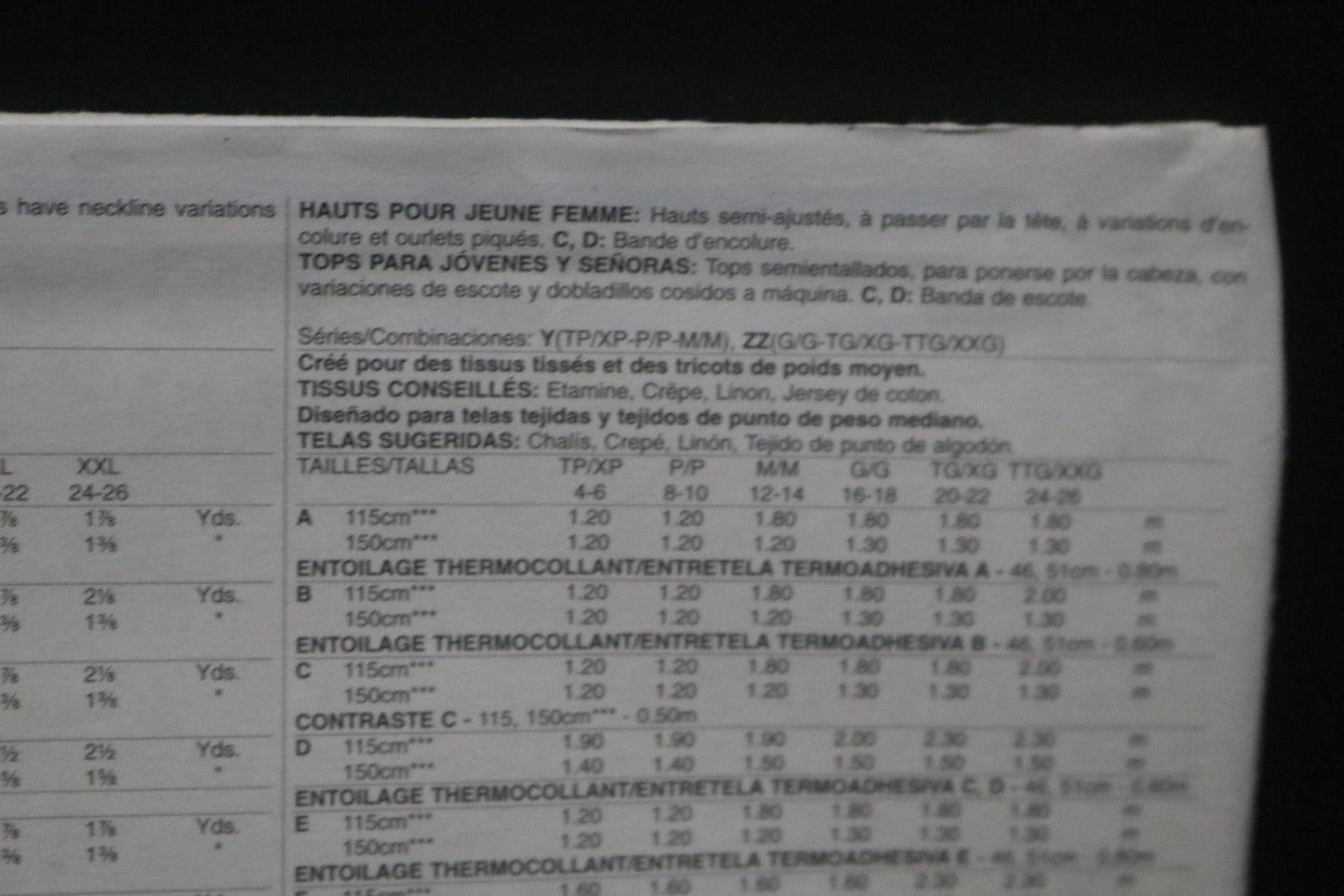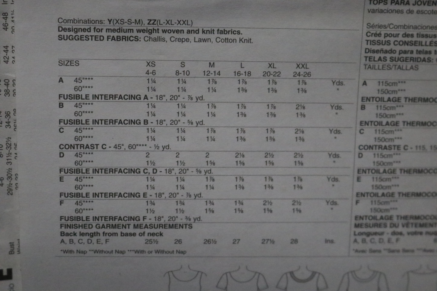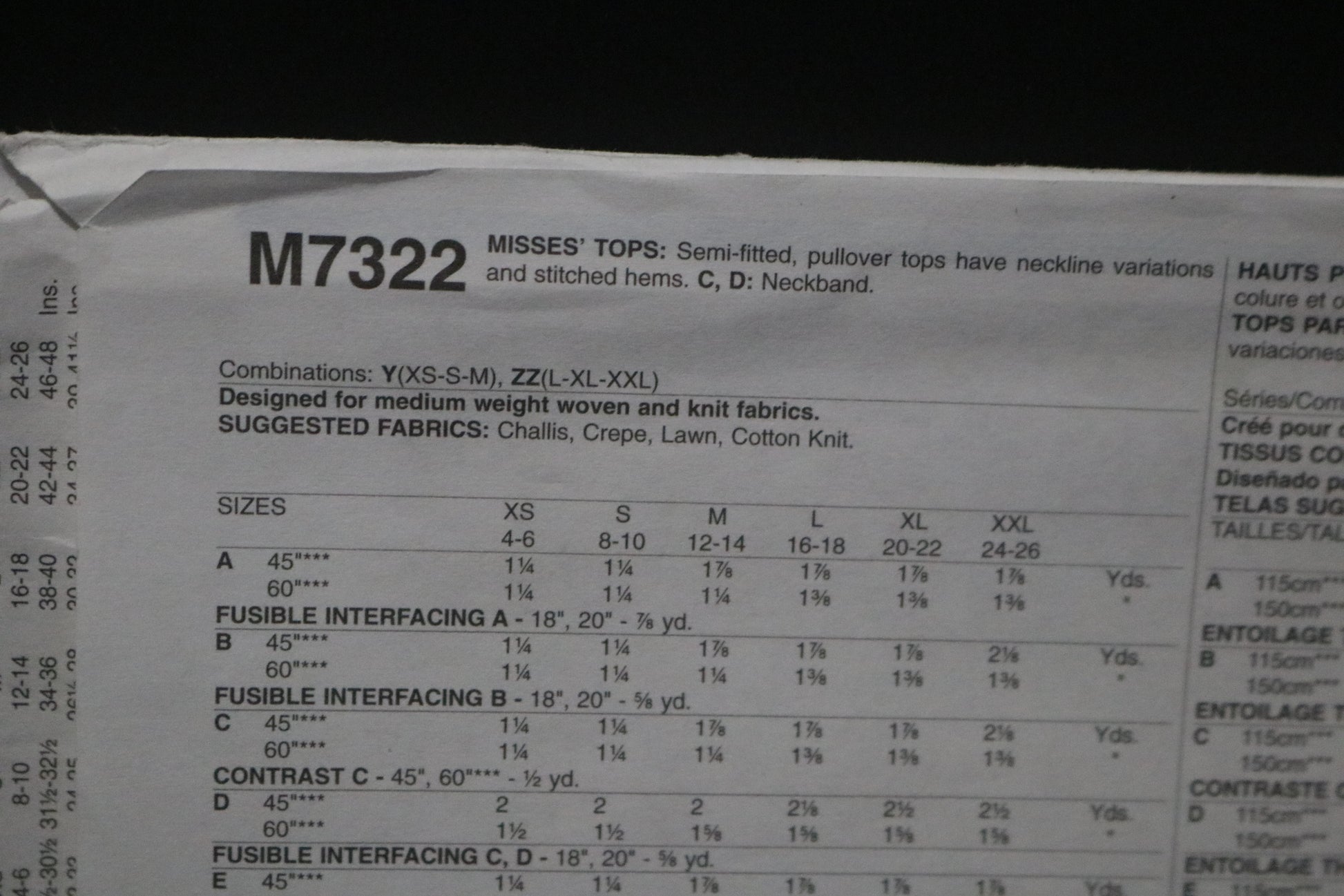 McCalls 7322 Misses Tops Sewing Pattern - UNCUT - Size Xsm Sml Med