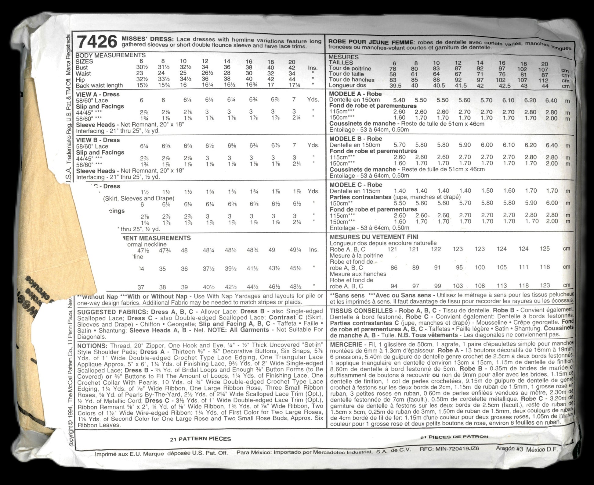 McCalls 7426 Alicyn Misses Dress Sewing Pattern