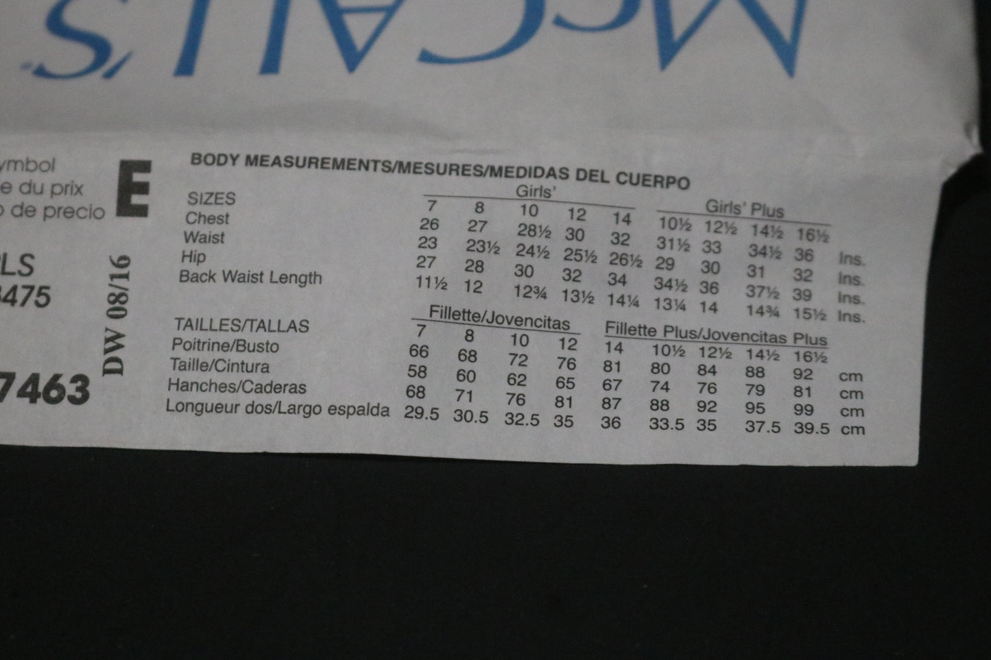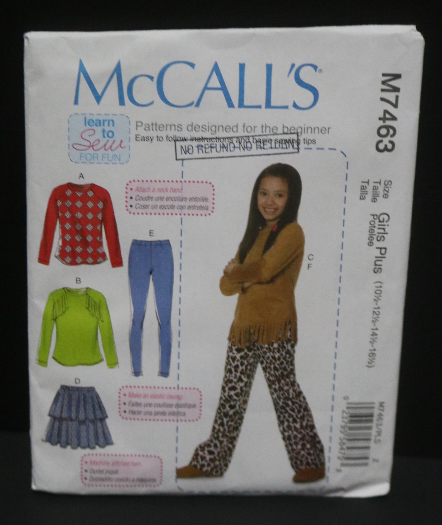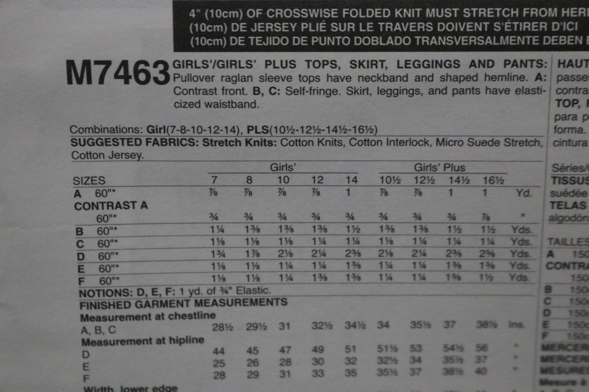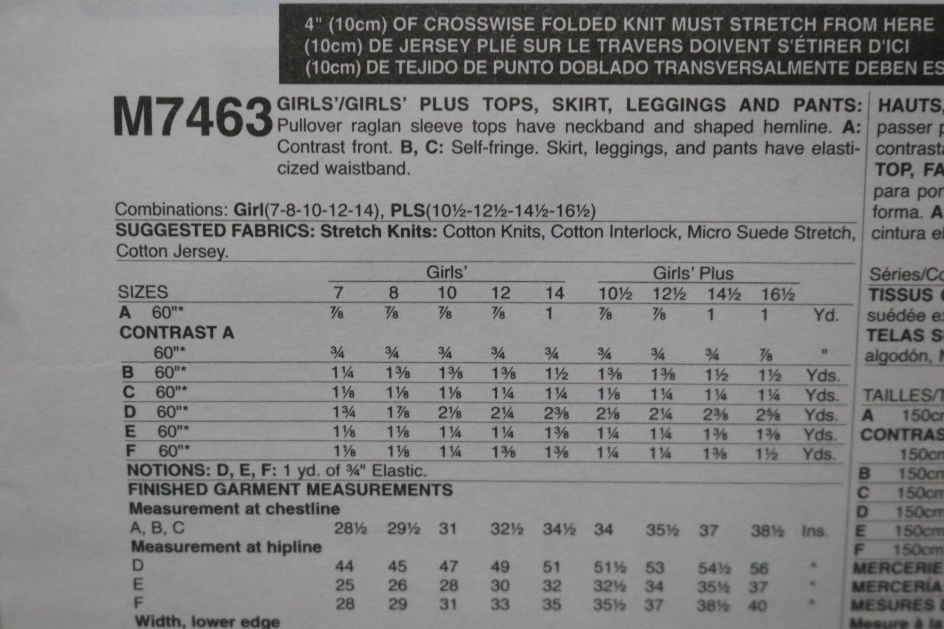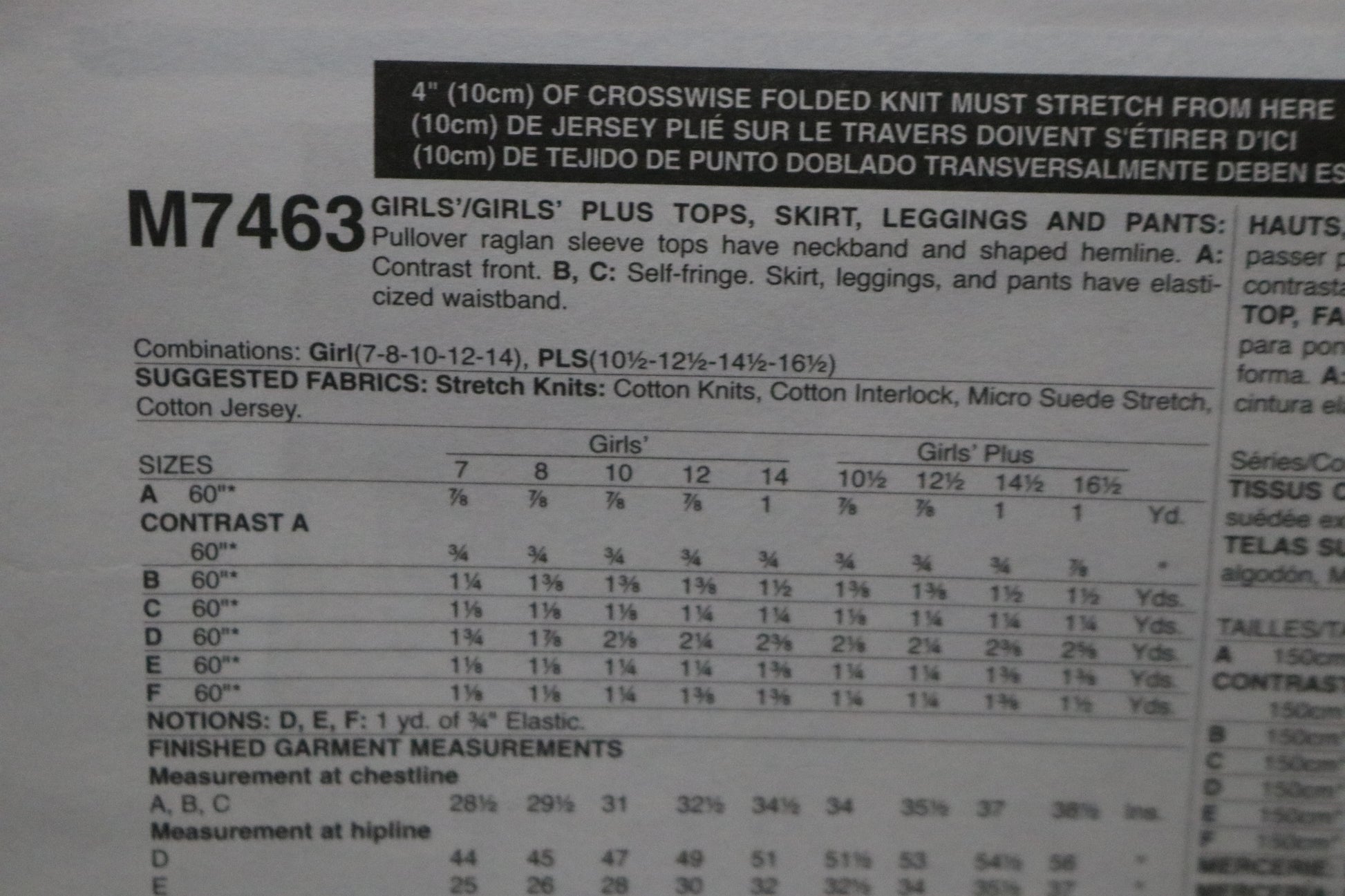 McCalls 7463 Girls Plus Tops Skirt Leggings and Pants Sewing Pattern UNCUT Size 10 1/2 12 1/2 14 1/2 16 1/2