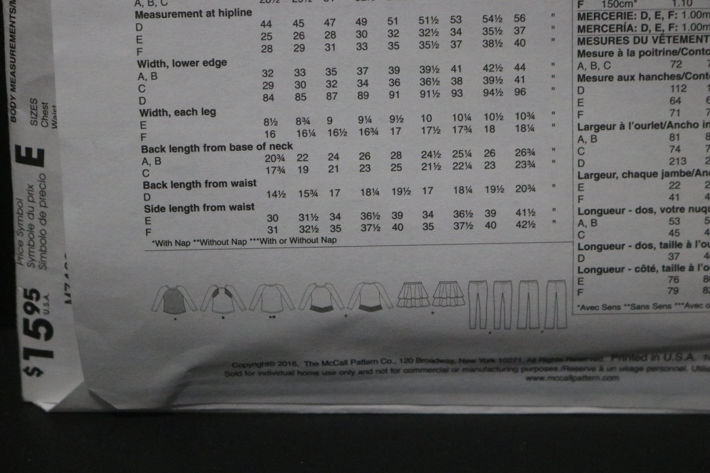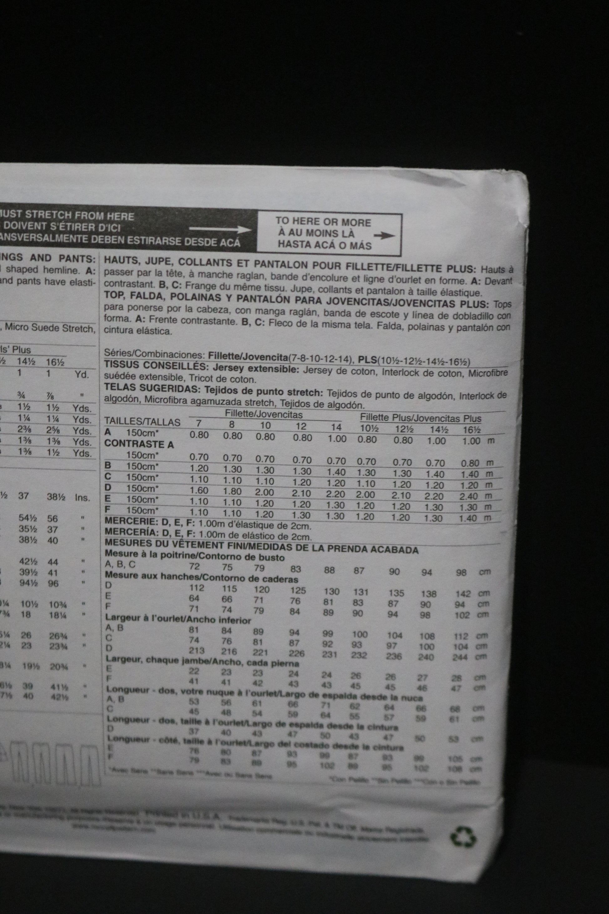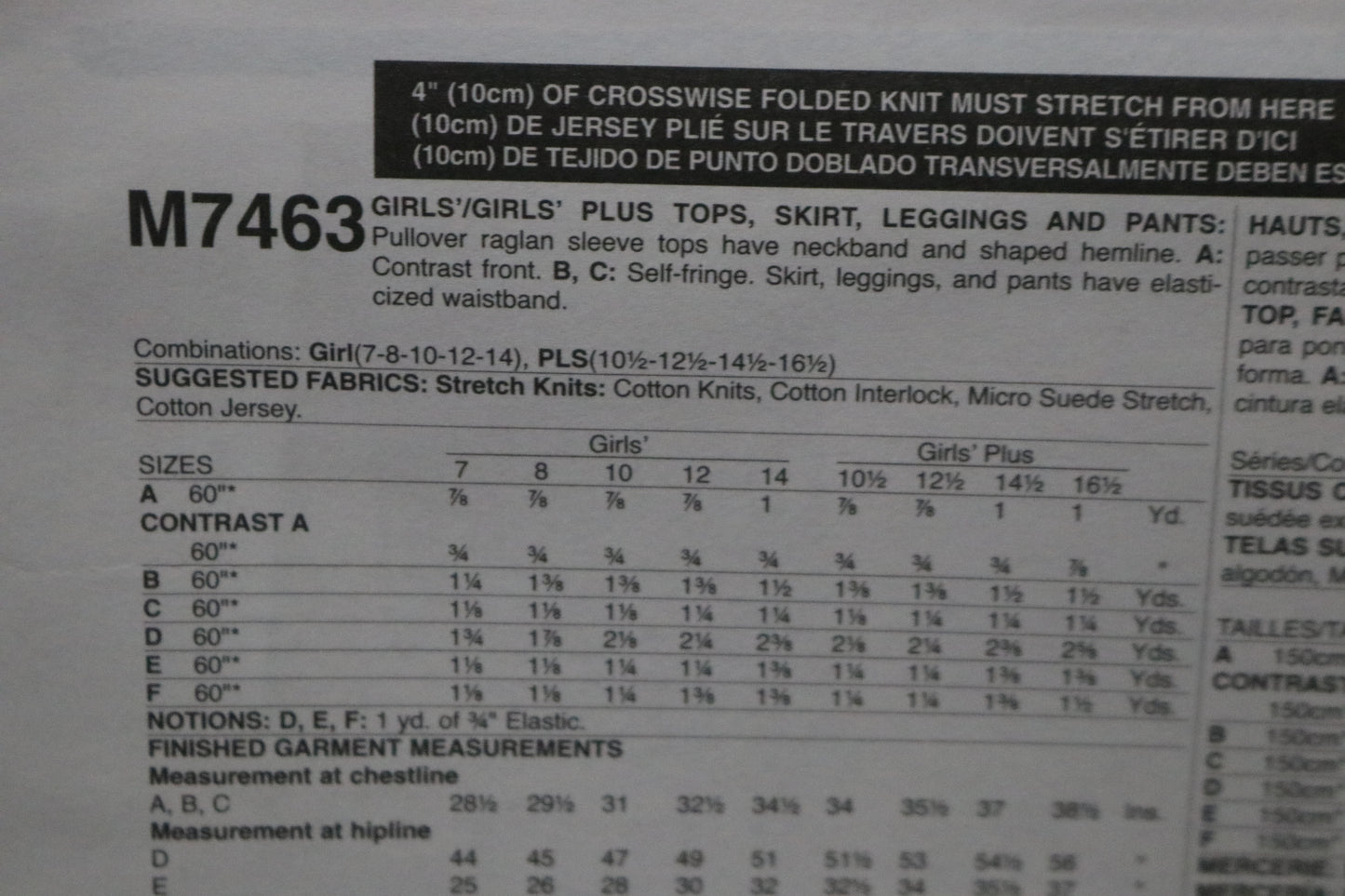 McCalls 7463 Girls Plus Tops Skirt Leggings and Pants Sewing Pattern