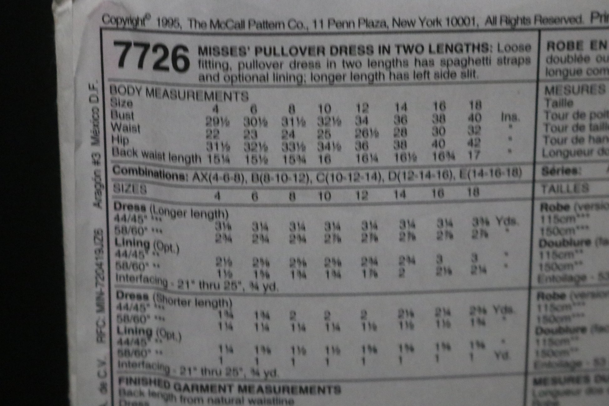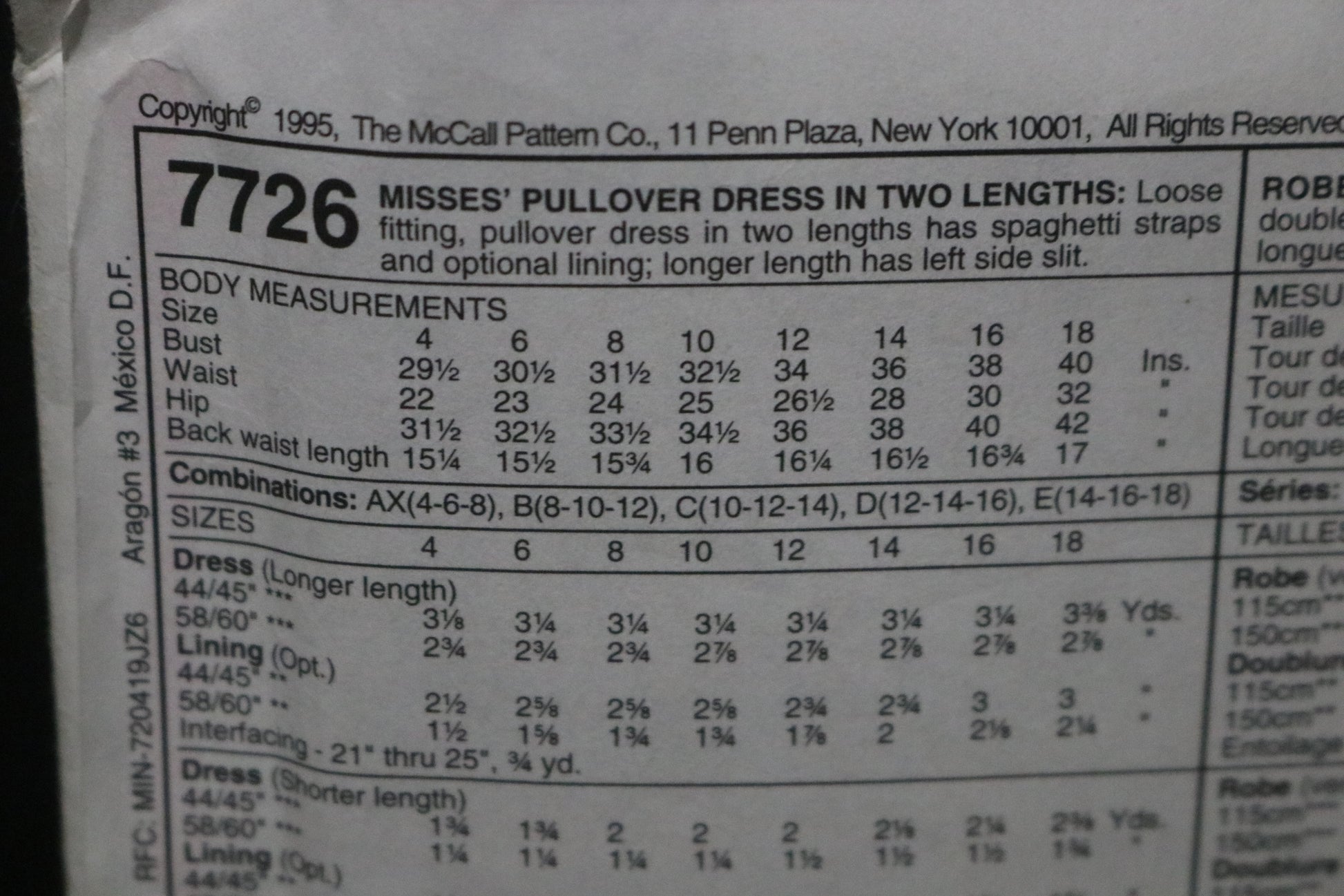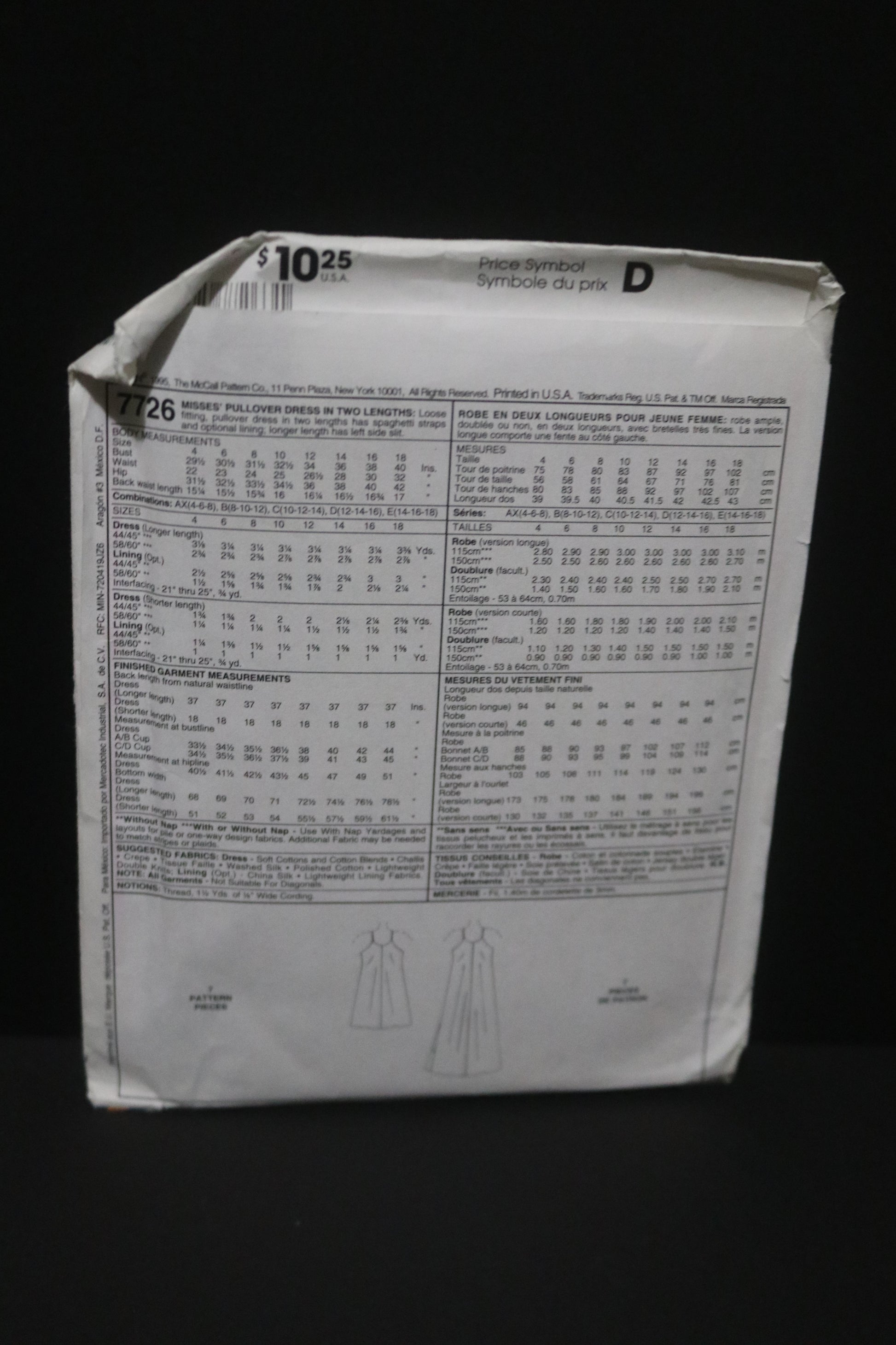 McCalls 7726 Misses Pullover Dress in Two Lengths Sewing Pattern