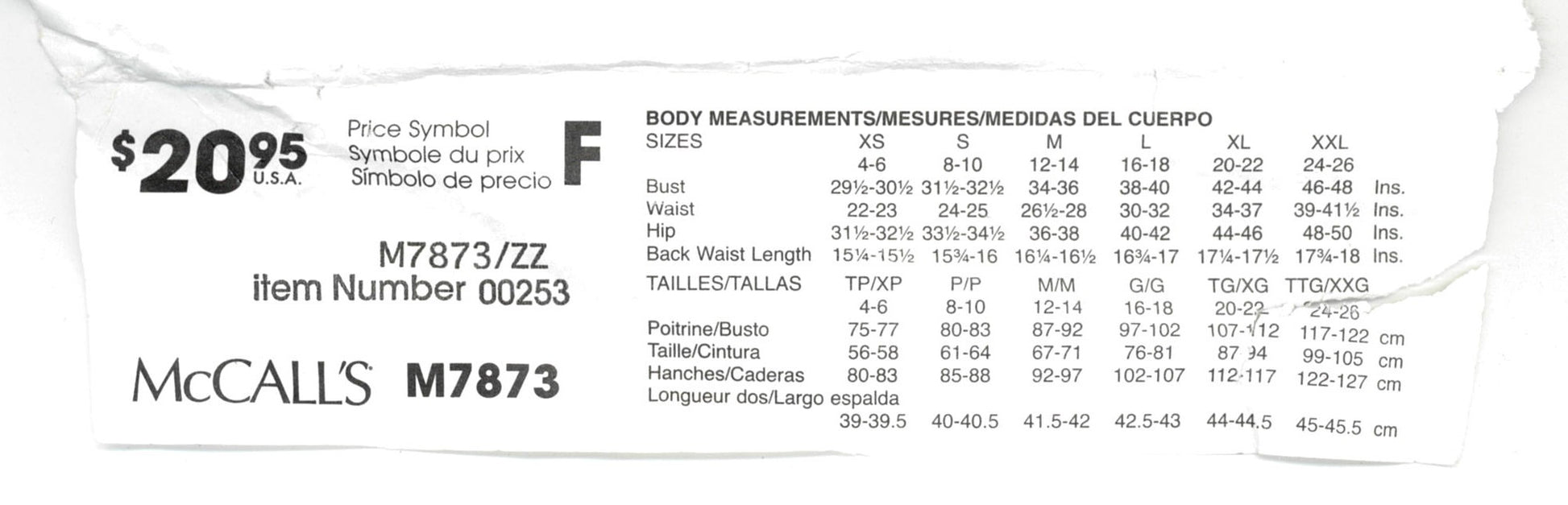 McCalls 7873 Misses Tops and Pants Sewing Pattern