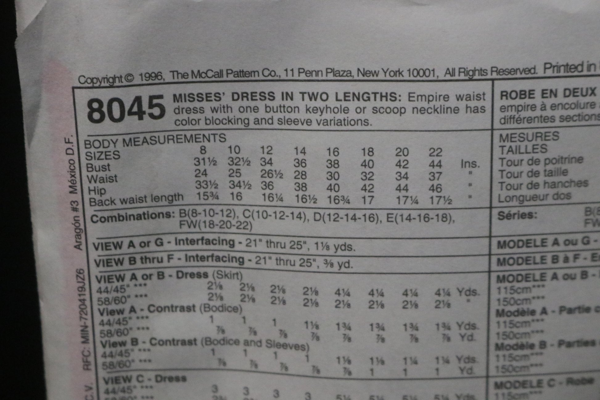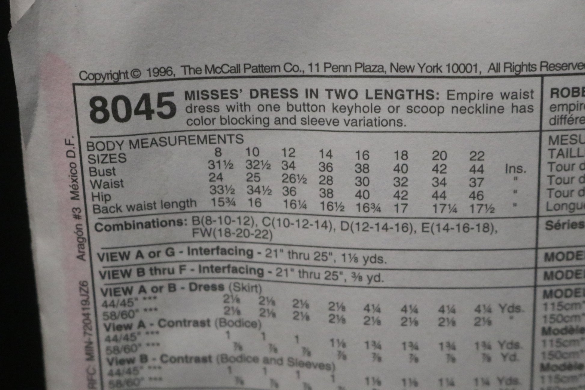 McCalls 8045 Misses Dress in Two Lengths Sewing Pattern