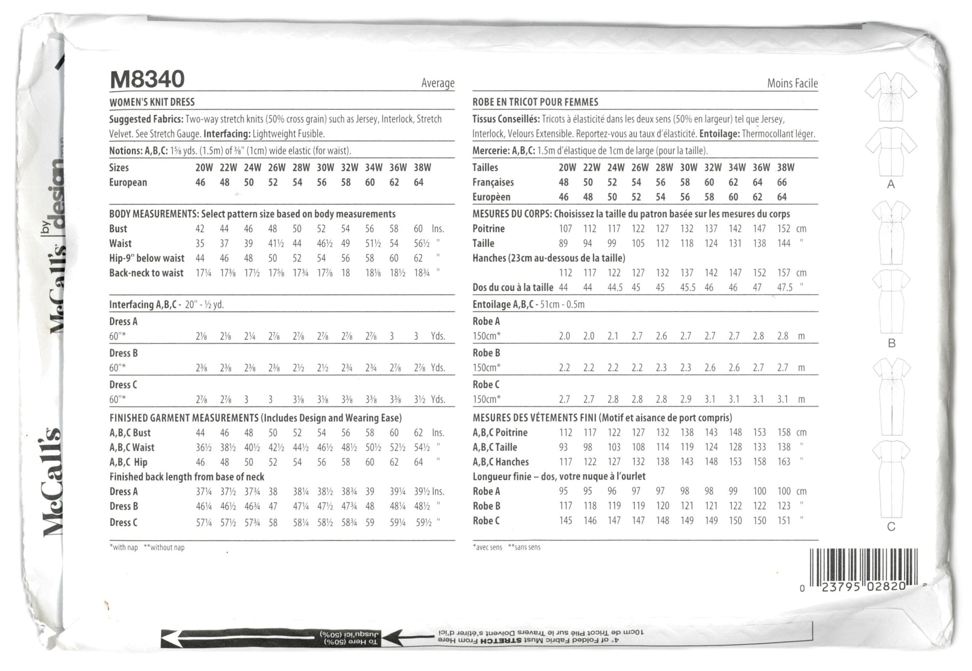 McCalls 8340 Womens Knit Dress Sewing Pattern