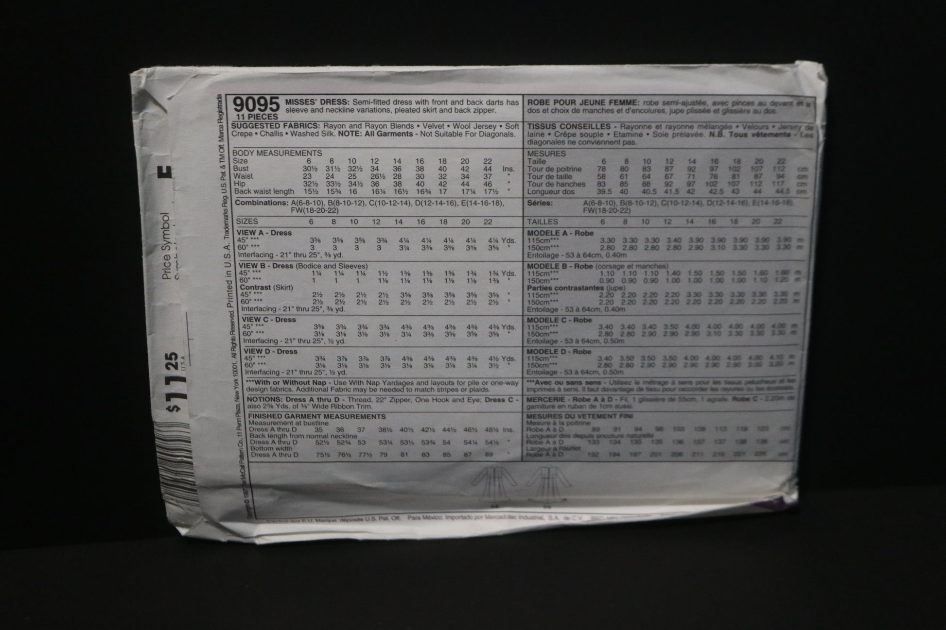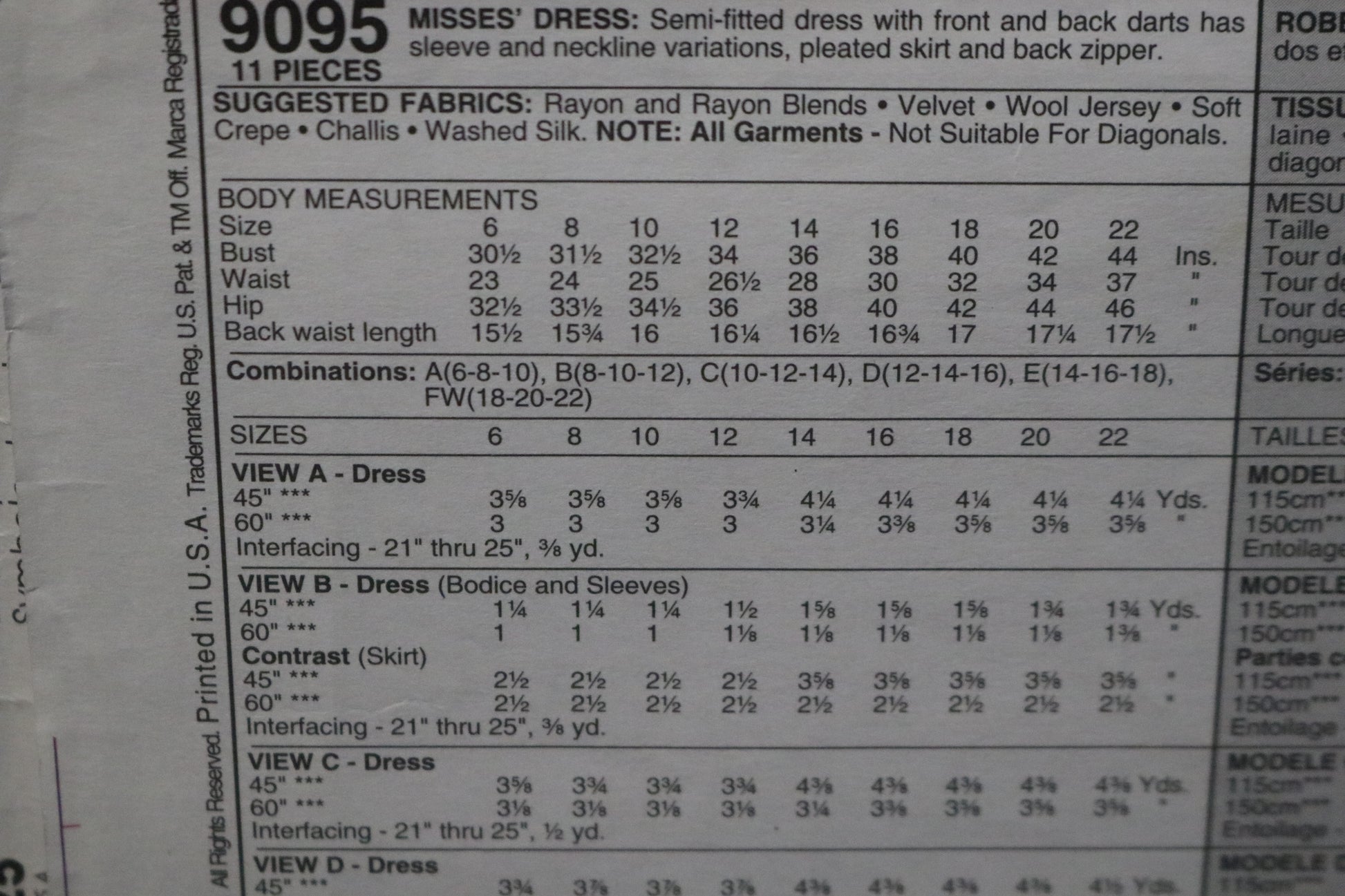 McCalls 9095 Misses Dresses Sewing Pattern