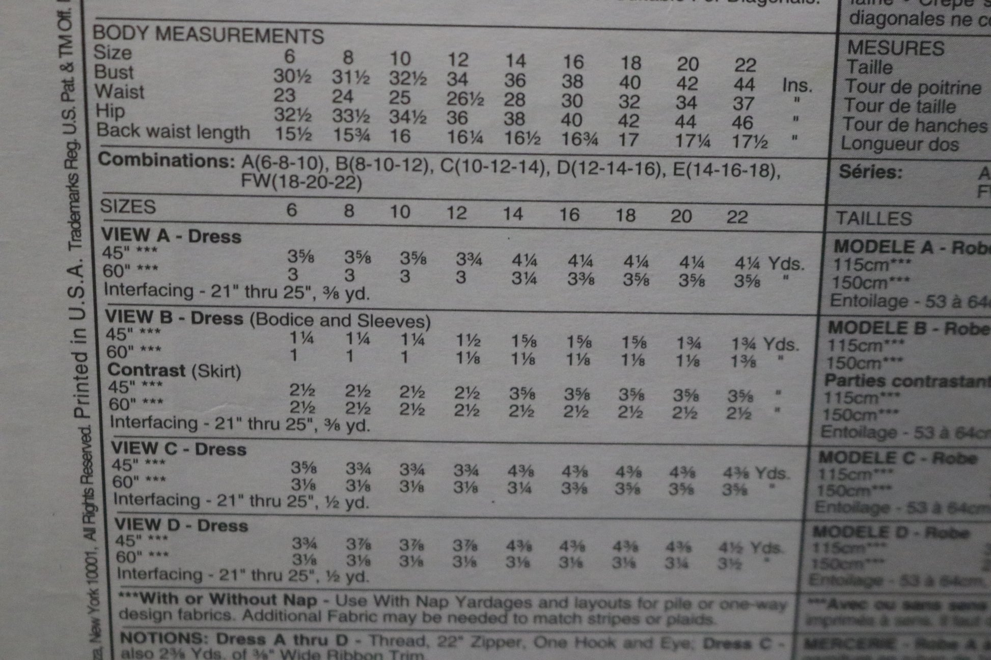 McCalls 9095 Misses Dresses Sewing Pattern - UNCUT - Size 18 20 22