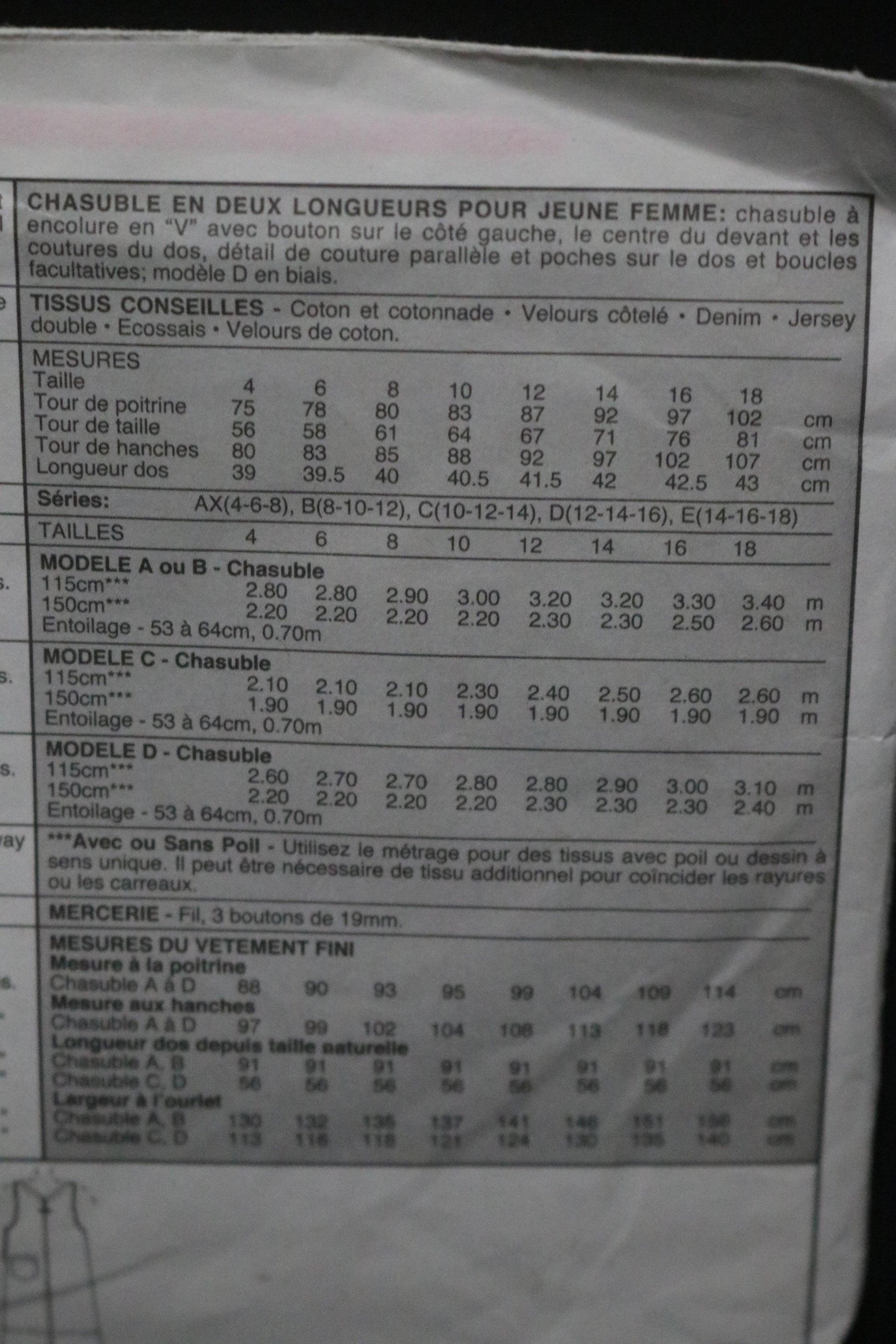 V neck jumper has left side button opening, center front and back seams, top stitch detail and optional back pockets and loop; view D is bias.