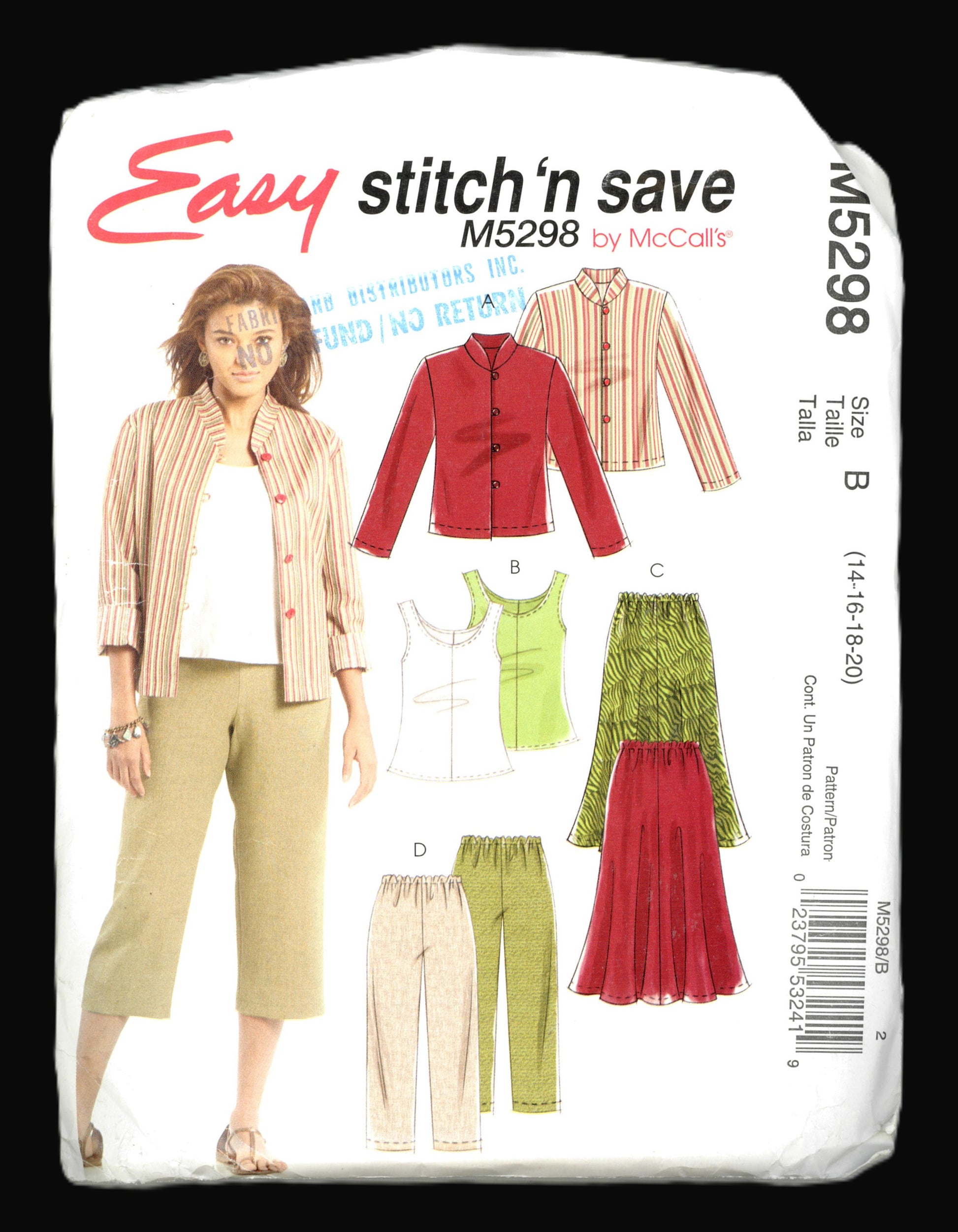 McCalls Stitch n Save 5298 Misses / Miss Petite Unlined Jacket, Top Skirt and Pants Sewing Pattern - UNCUT - Size 14 16 18 20