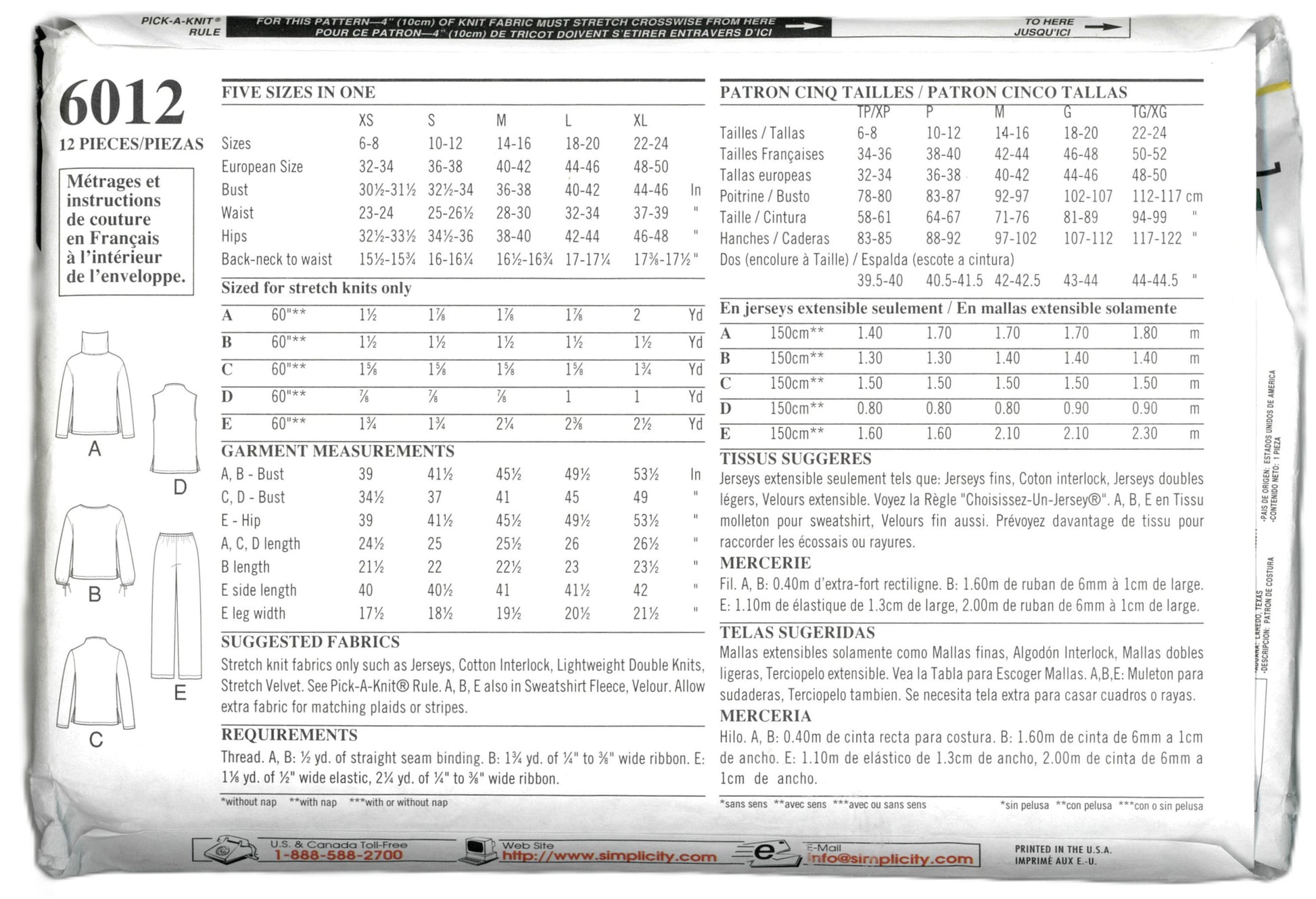 New Look 6012 Misses Top and Pants Sewing Pattern UNCUT Size XS - XL