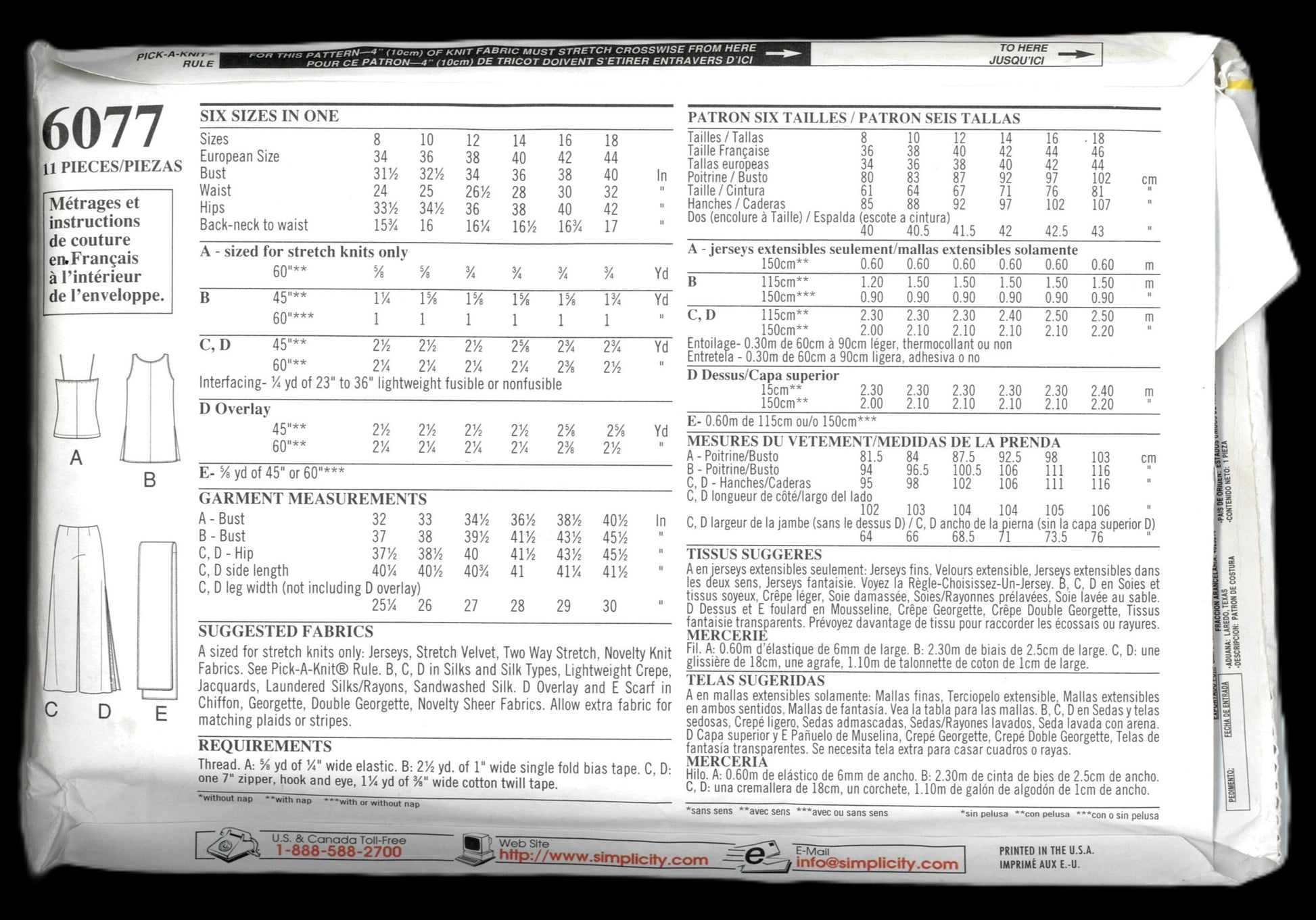 Size 8 - 18 Please reference the photos for measurements and pattern details