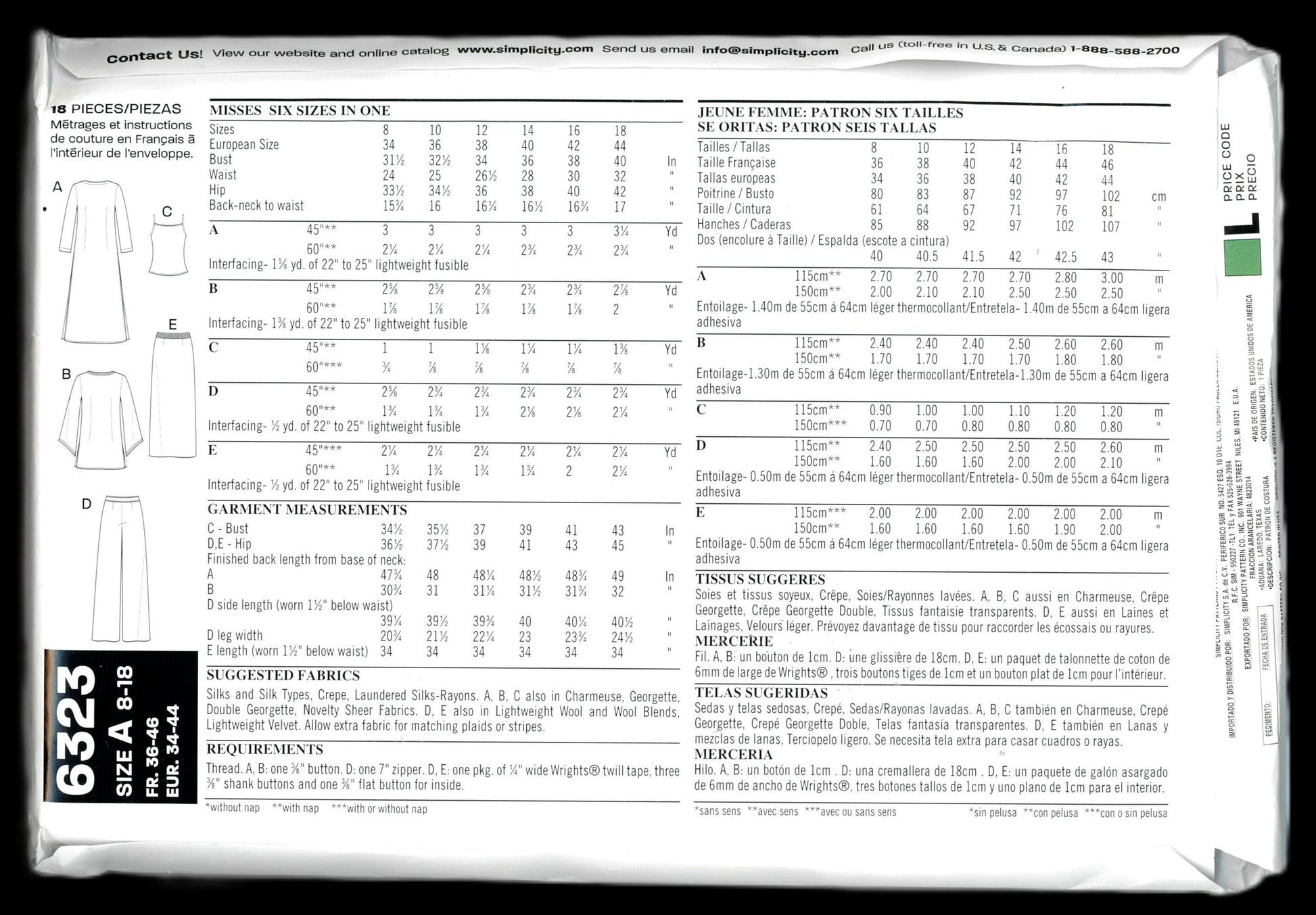 New Look 6323 Misses Jacket Top Pants and Skirt Sewing Pattern