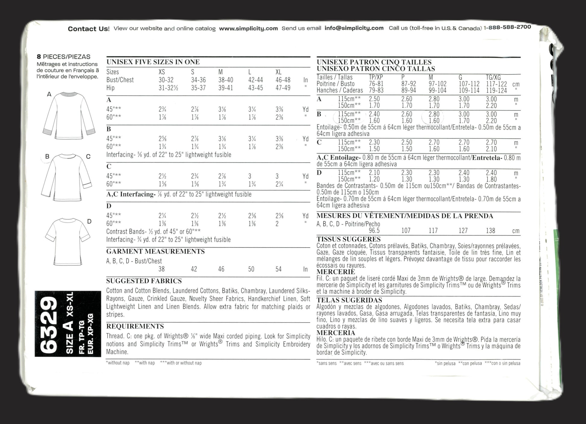 New Look 6329 Unisex Misses and Men's Tunic Top Sewing Pattern