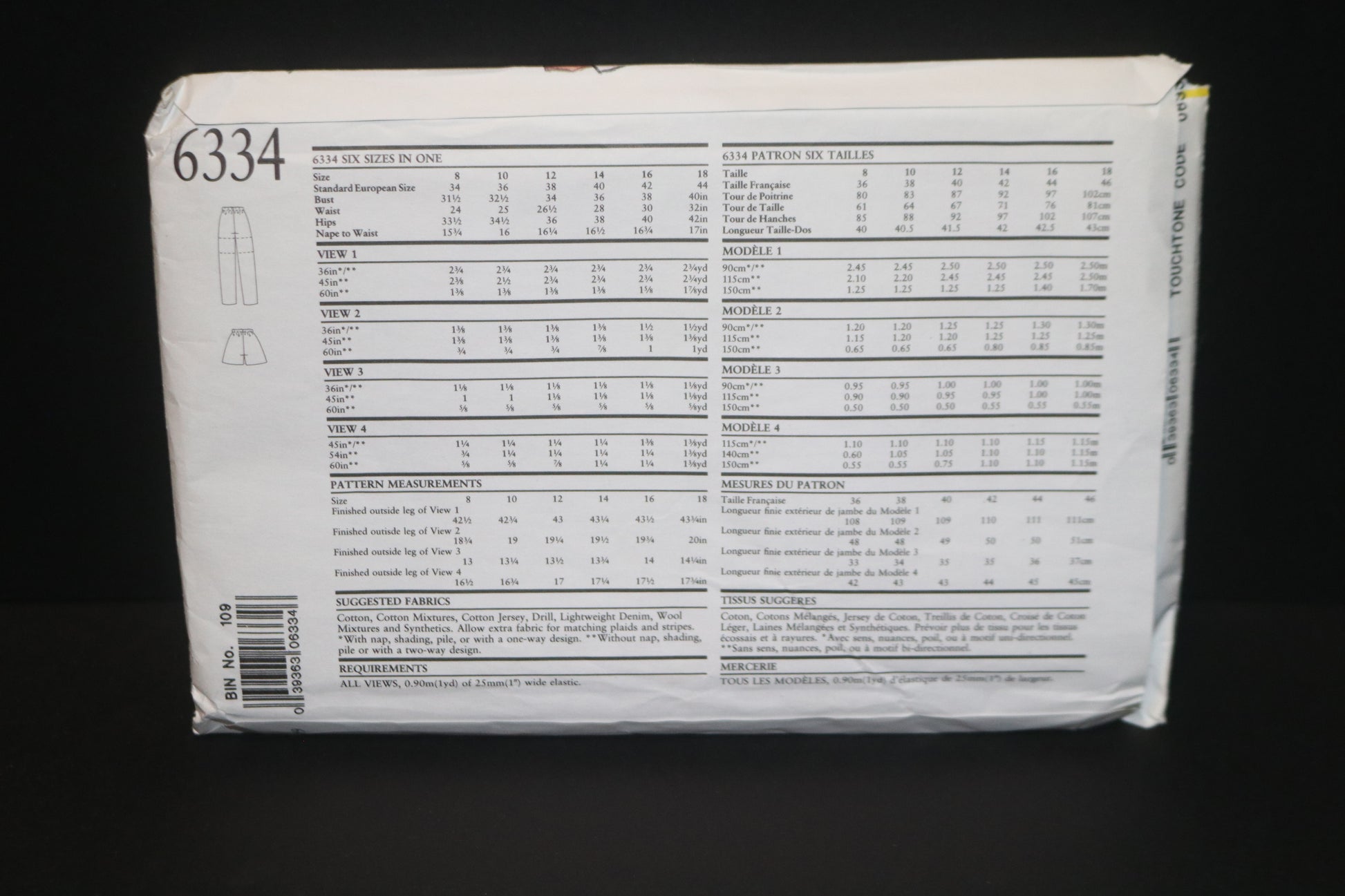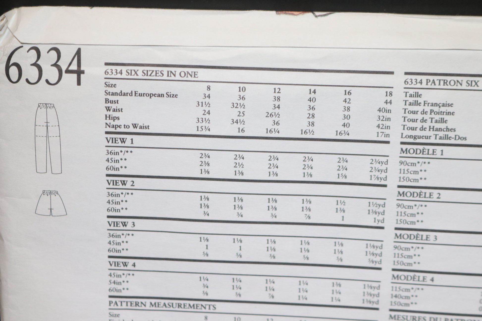 New Look 6334 Misses Pants and Shorts Sewing Pattern - UNCUT - Size 8 - 18