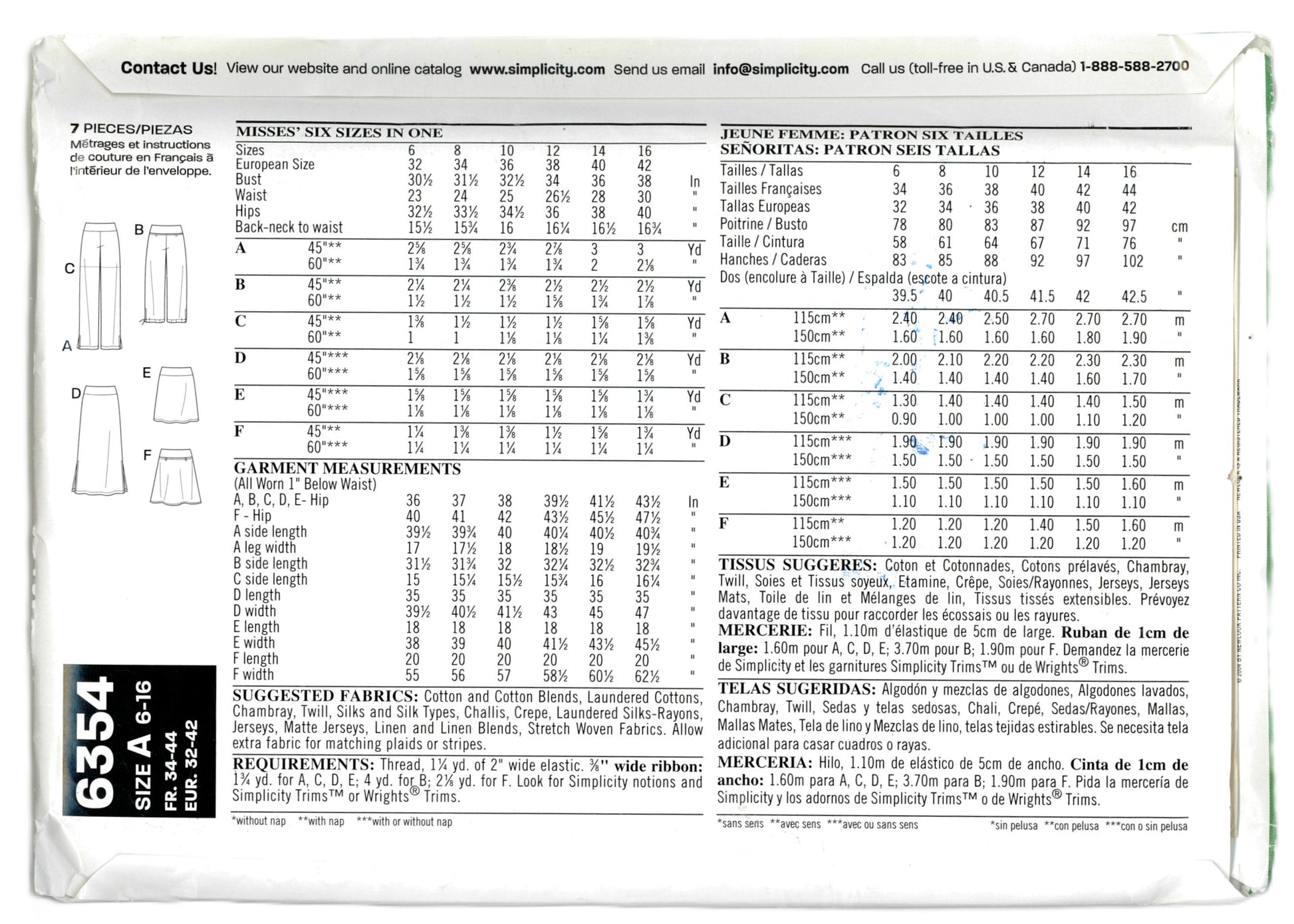 New Look 6354 Misses Skirt Pants and Capris Sewing Pattern