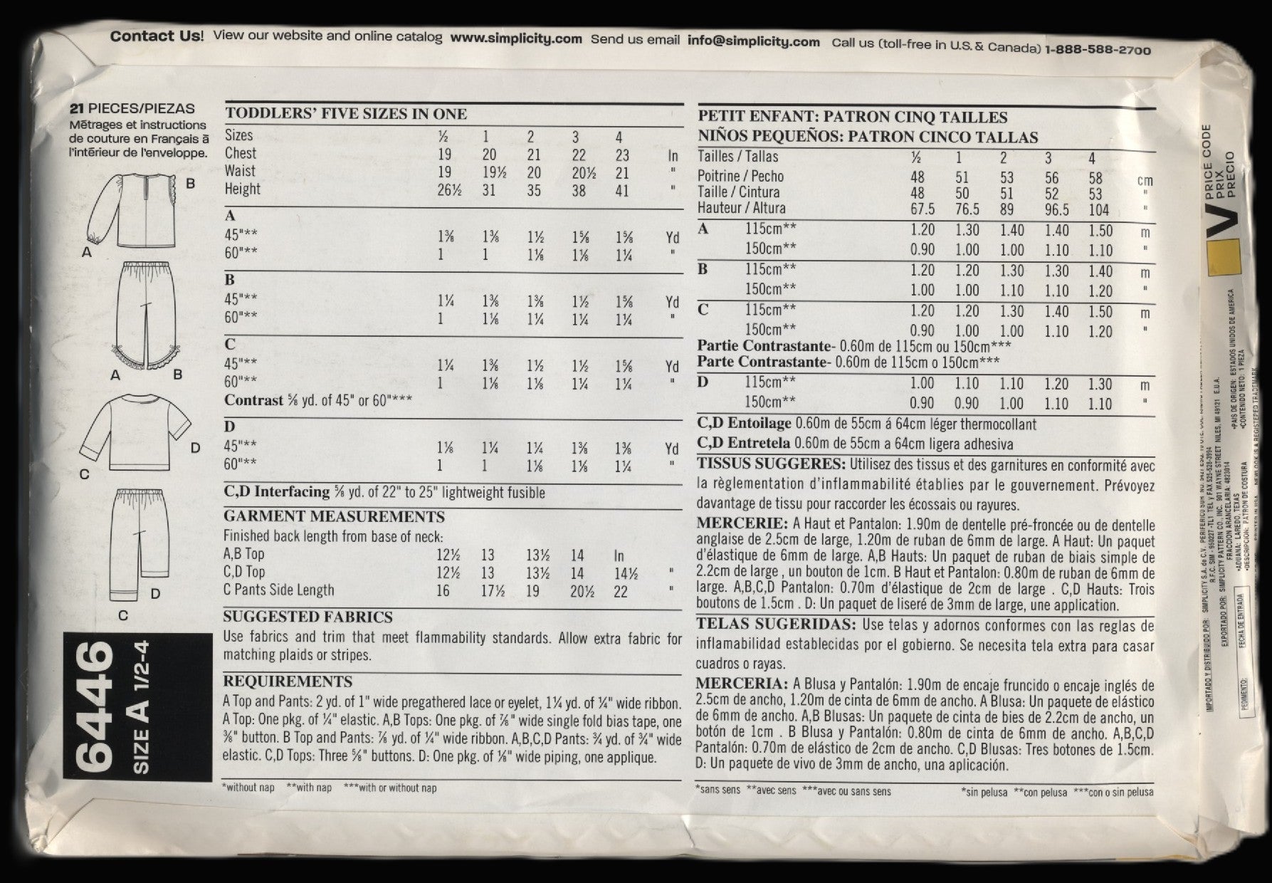 New look 6446 Infants and Toddlers Pajama Top and Pants Sewing Pattern